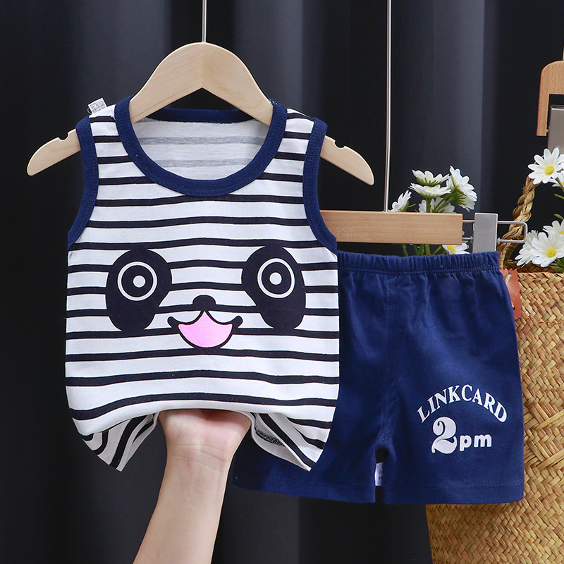 어린이 조끼 세트 면화 민소매 소녀 여름 한국 아동복 새로운 여름 소년 투피스 도매