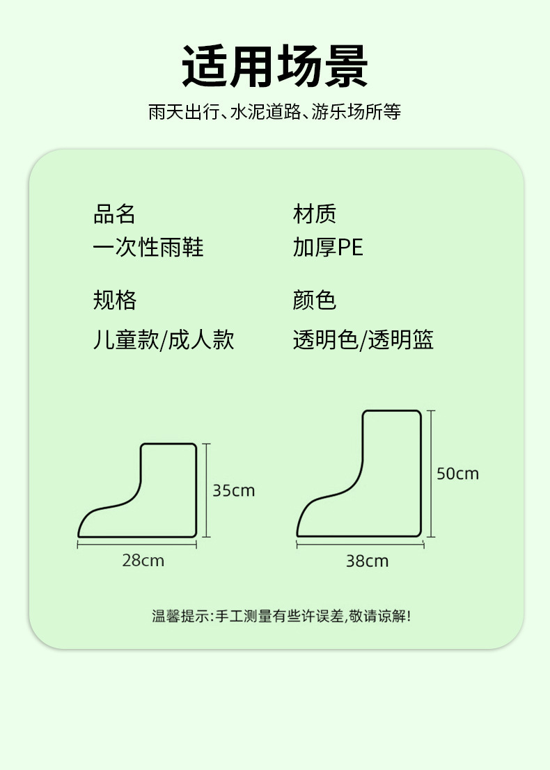 별도의 포장 일회용 비 신발 커버 방수 미끄럼 방지 야외 비오는 날 어린이 발 커버 높은 튜브 방비 신발 커버