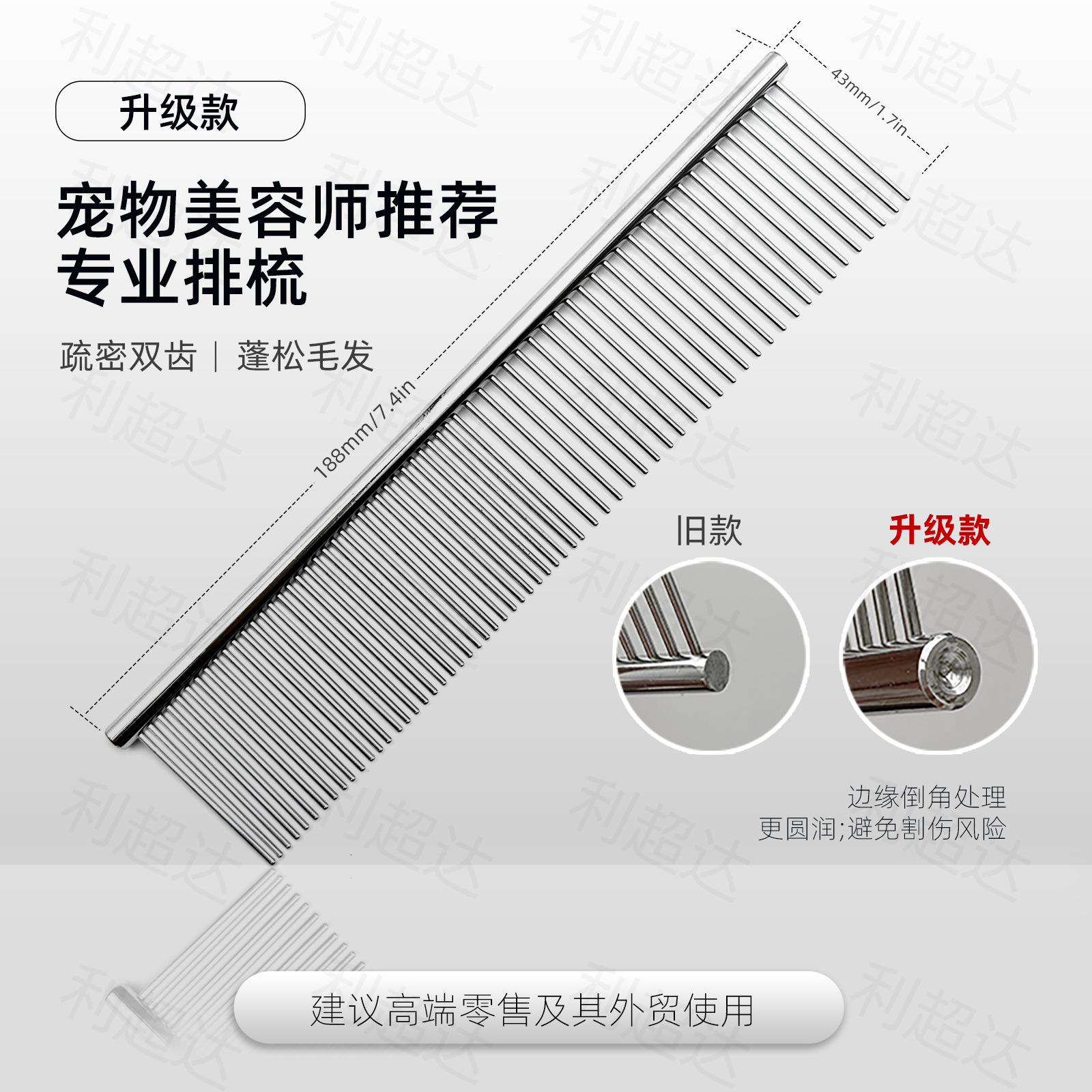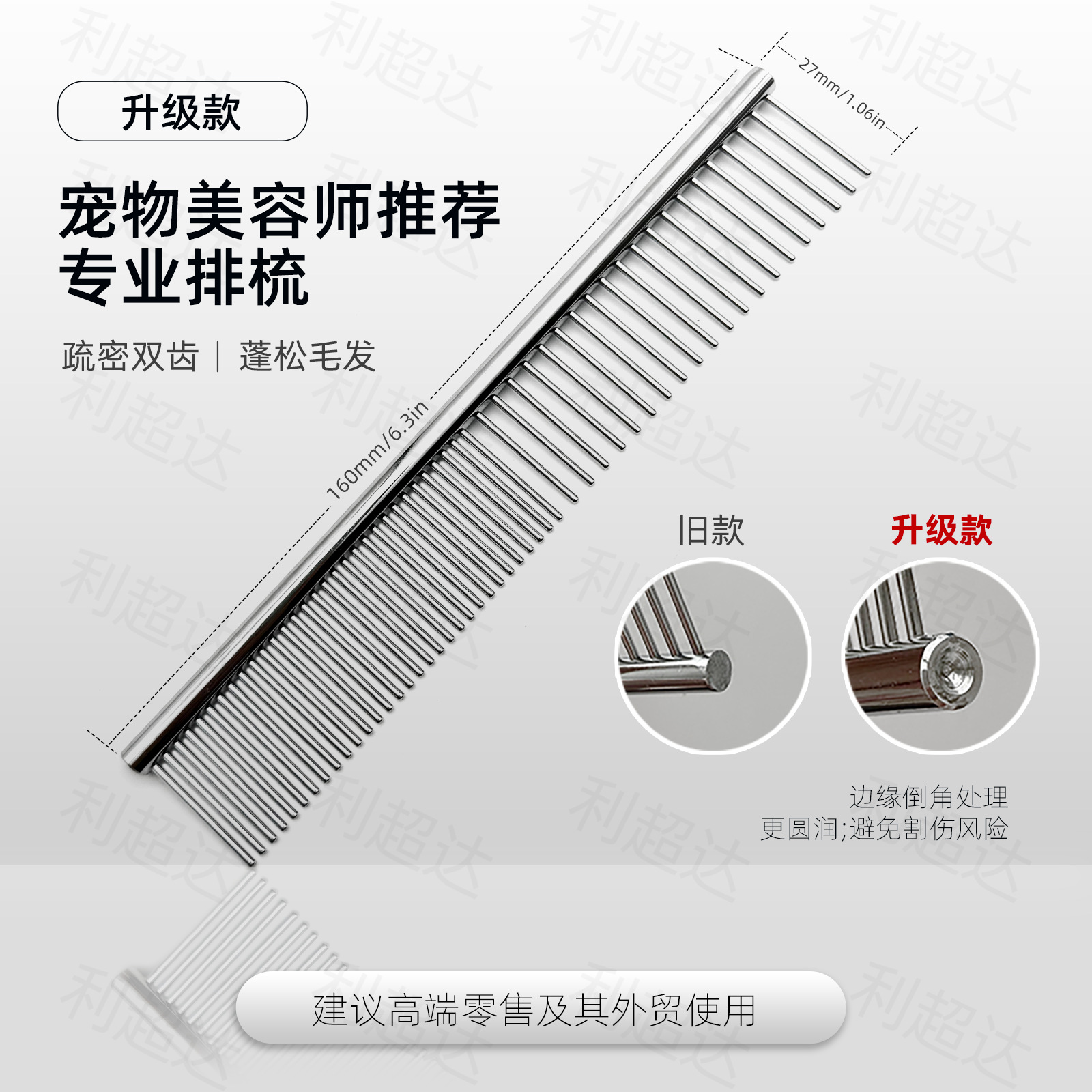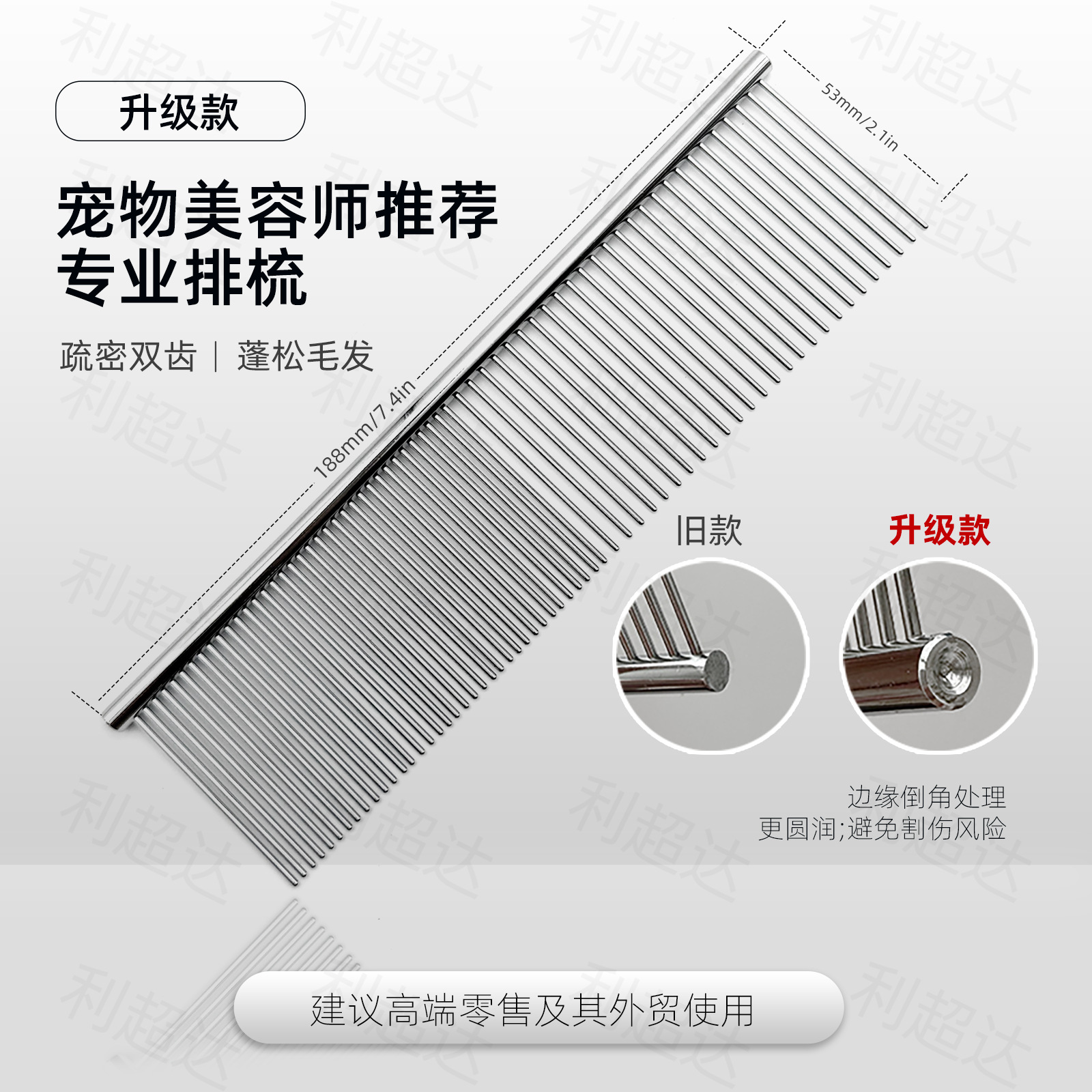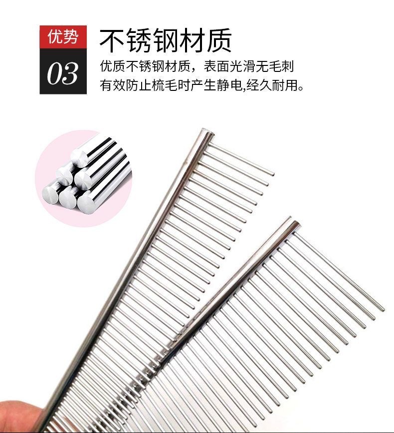 리 차오다 특수 애완 동물 빗 전기 도금 스테인레스 스틸 로우 빗 치밀한 치아 오픈 매듭 고양이 개 뷰티 빗