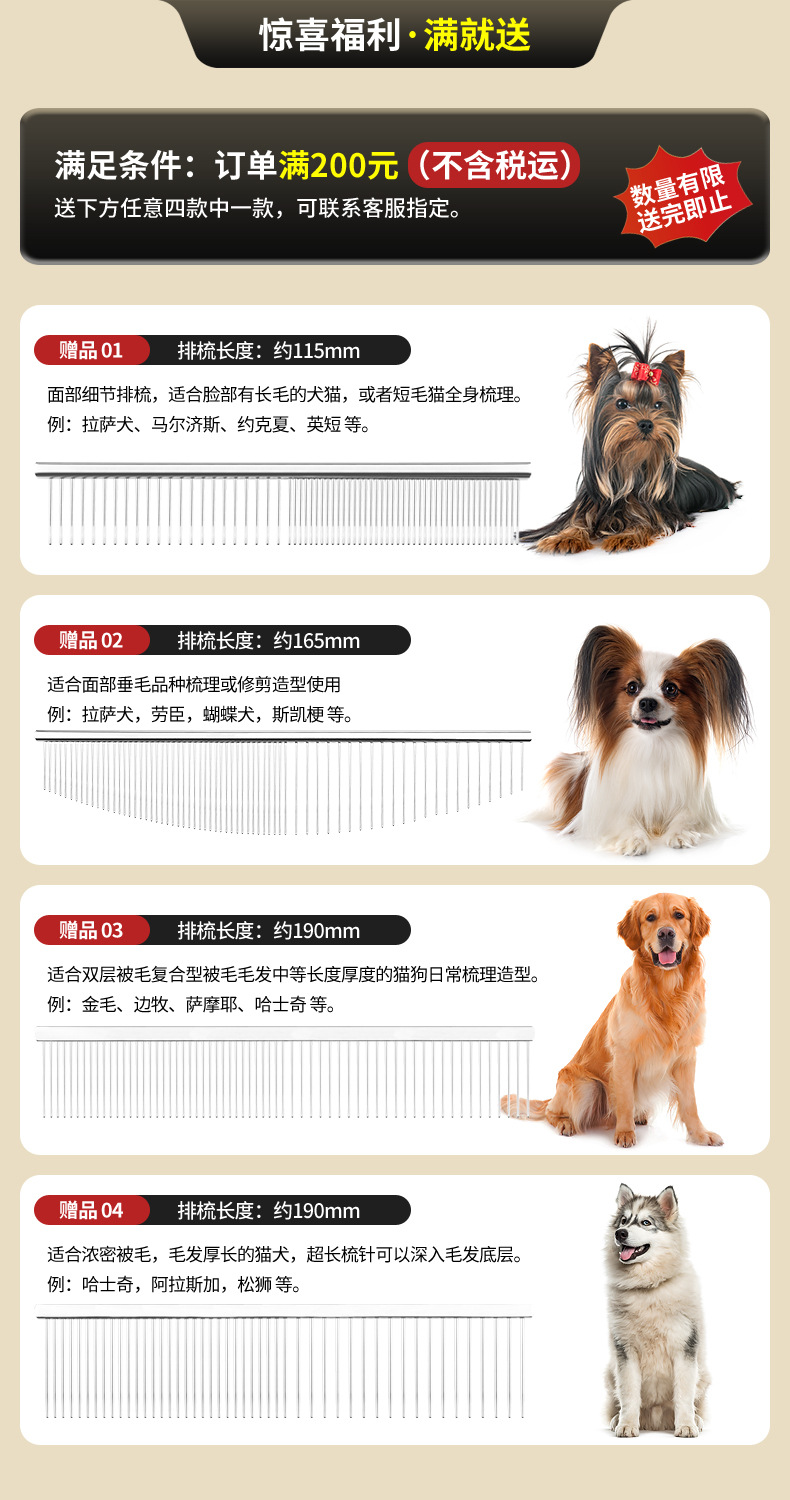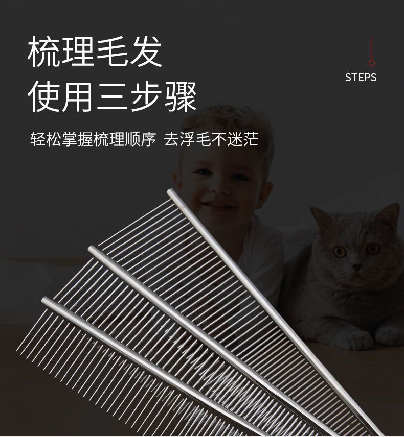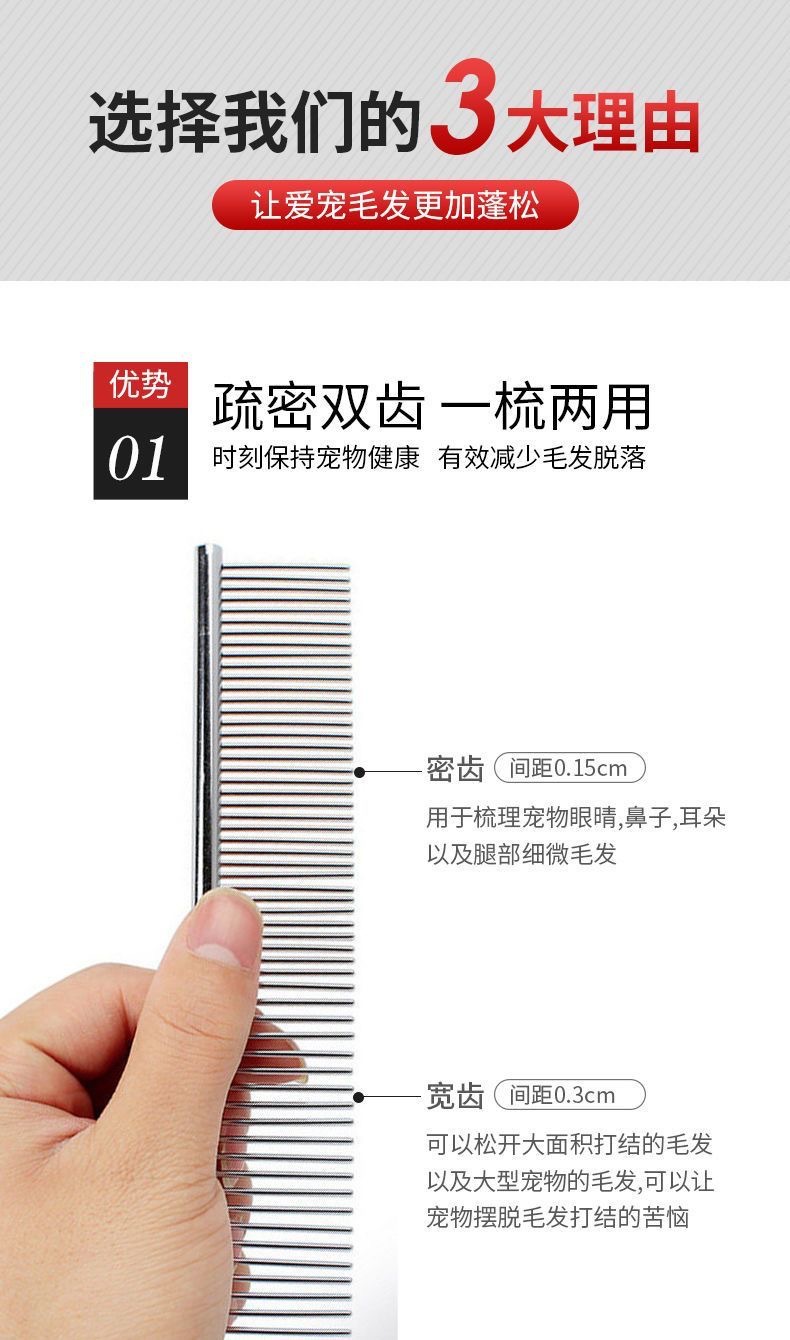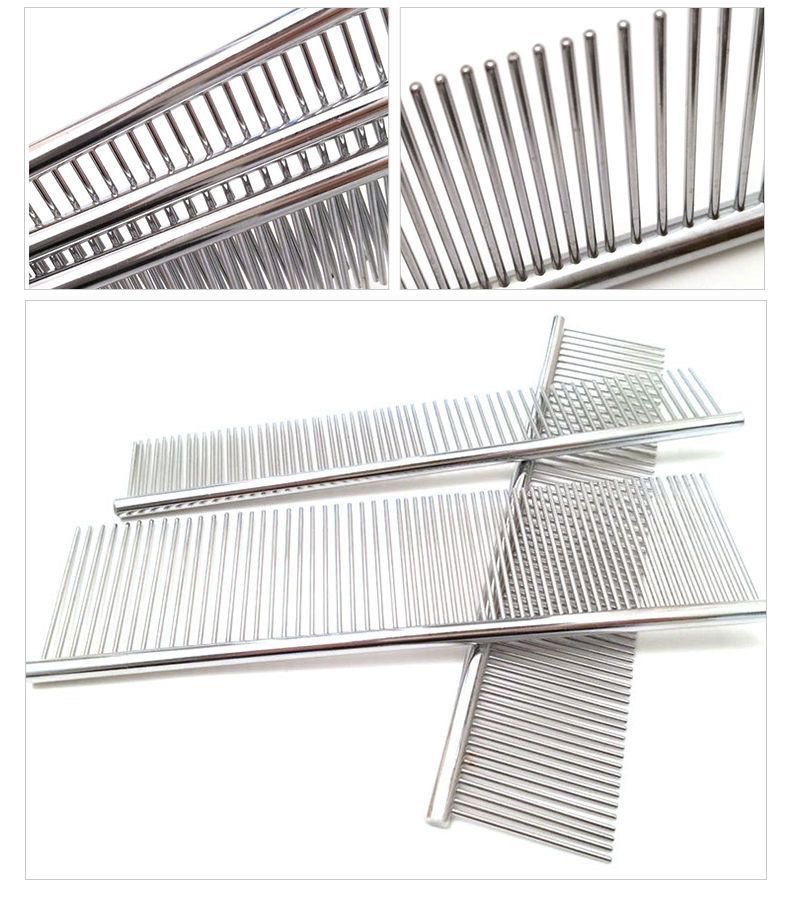 리 차오다 특수 애완 동물 빗 전기 도금 스테인레스 스틸 로우 빗 치밀한 치아 오픈 매듭 고양이 개 뷰티 빗