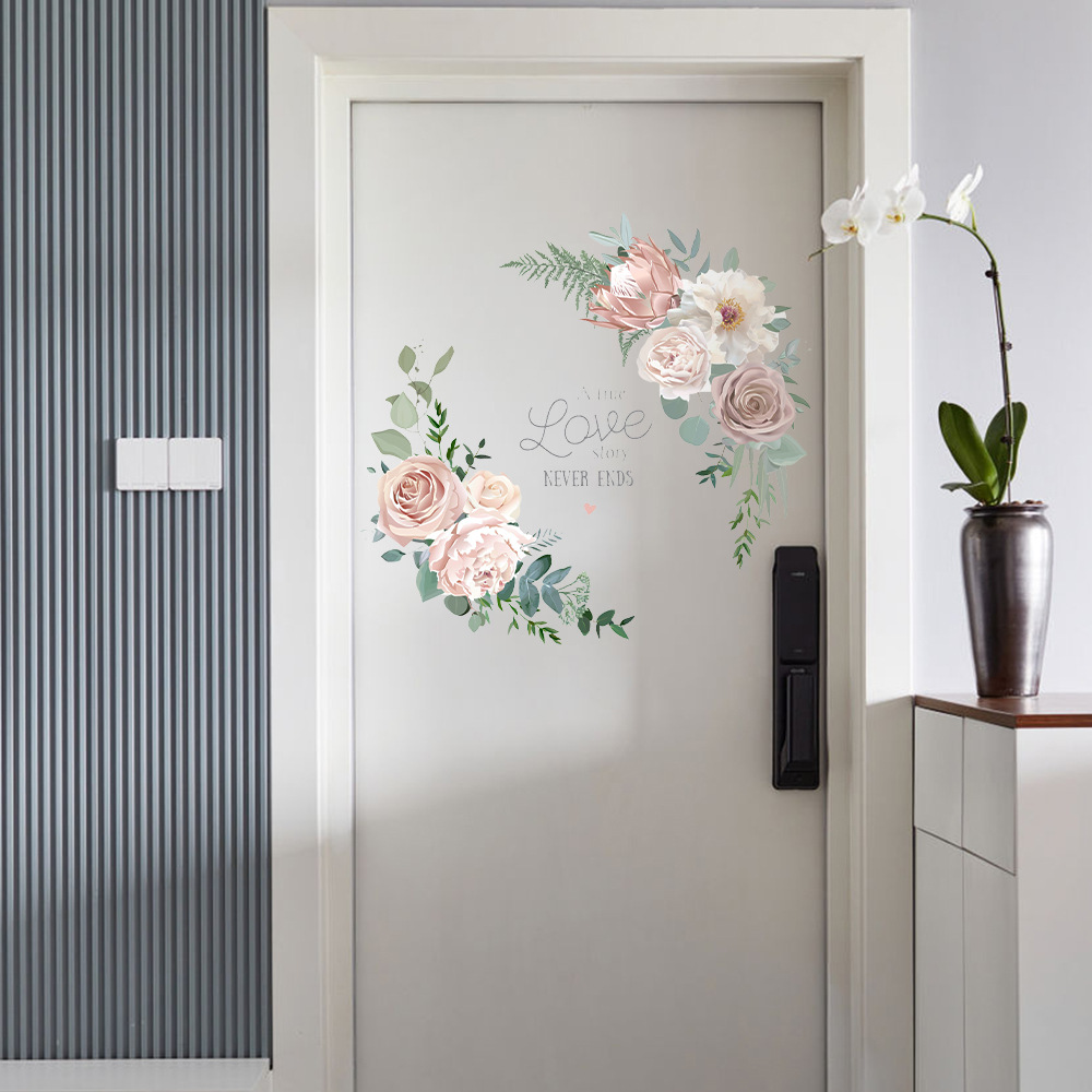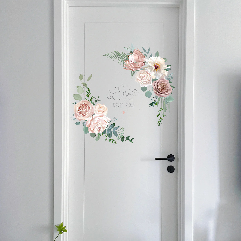 Yiyao DD2406 꽃 정원 공장 영어 편지 벽 스티커 거실 침실 문 다시 벽 홈 장식 자체 접착 스티커