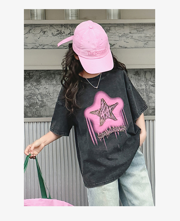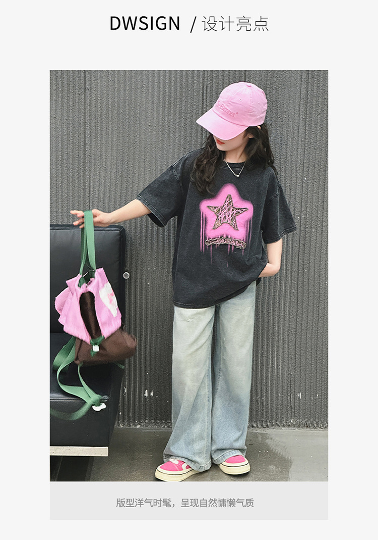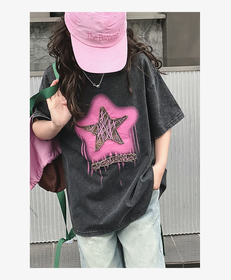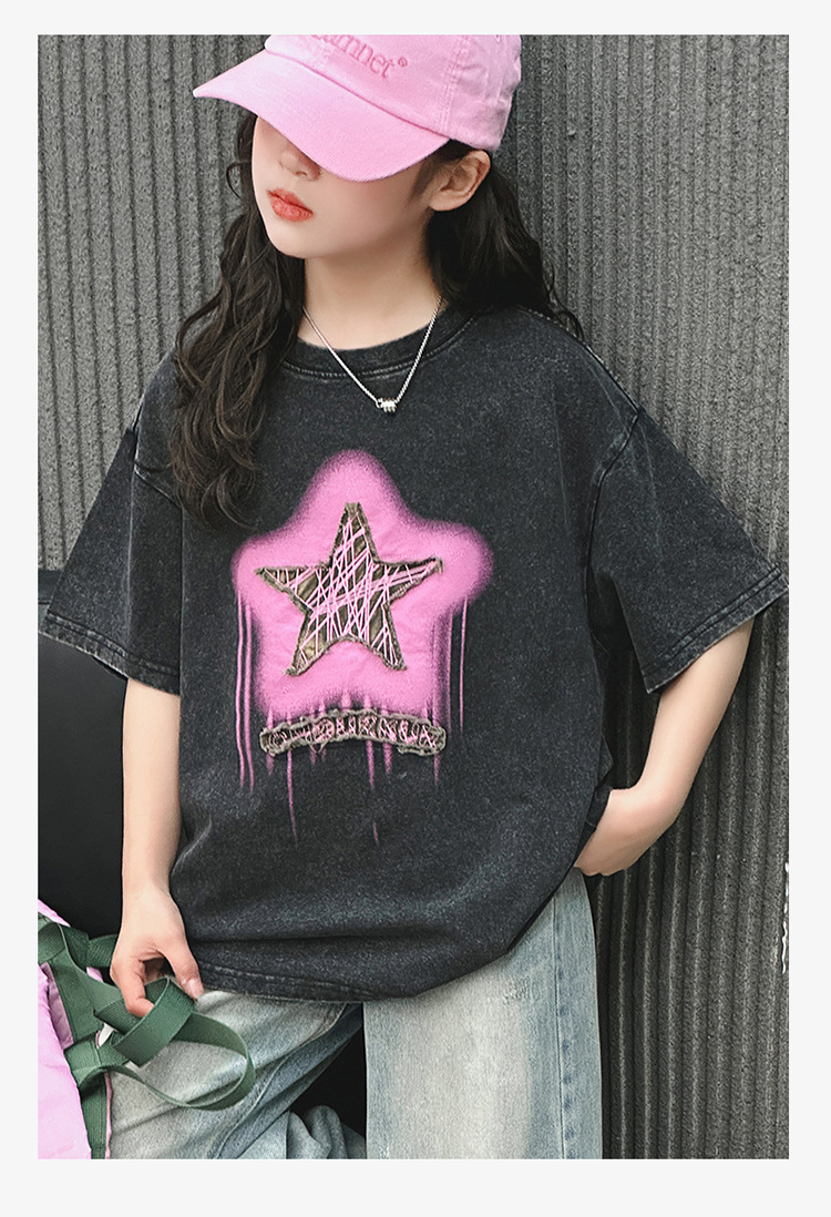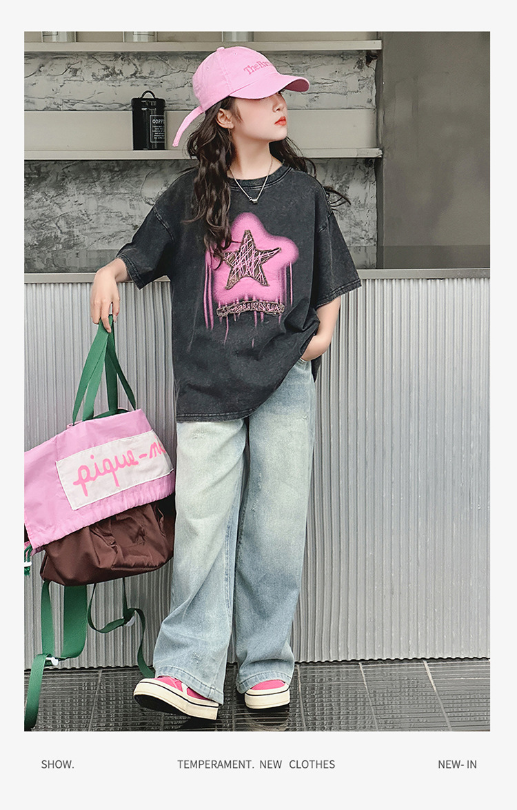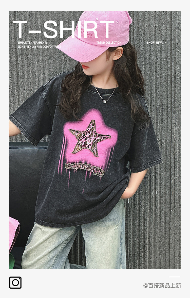 여아 반팔 티셔츠 2025 여름 새로운 스타일 외국 스타일 중년 이상 어린이 구식 스트리트 탑 반팔 바닥 T스토어 가기