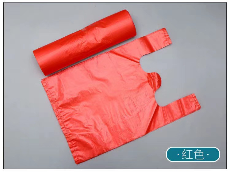 빨간색과 흰색 검은 색 휴대용 비닐 봉지 일회용 야채 시장 슈퍼마켓 투명 빨간색과 검은 색 조끼 쇼핑백 도매스토어 가기