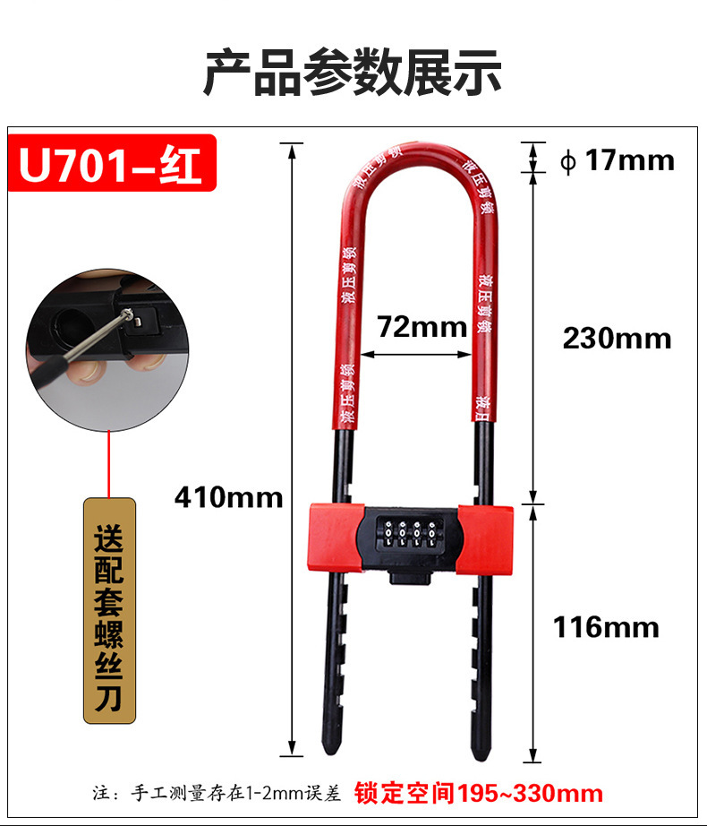 • 빨간색 700 암호 잠금 길이 470mm 연장