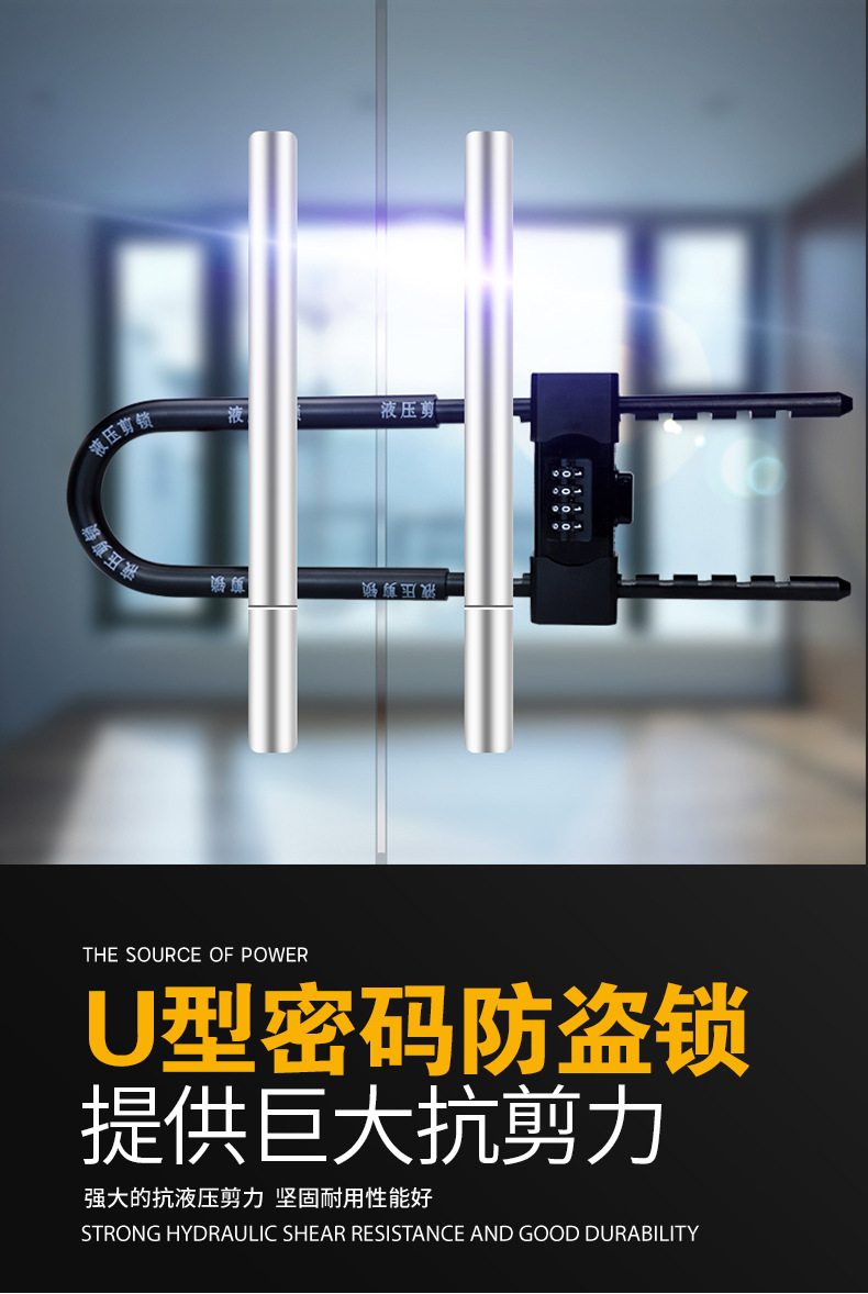비밀번호 U 자형 잠금 유리 도어 잠금 장치 조합 잠금 상점 문 이중 개방 반 전단 도난 잠금 상점 확장 잠금 장치 U 자형 잠금 장치