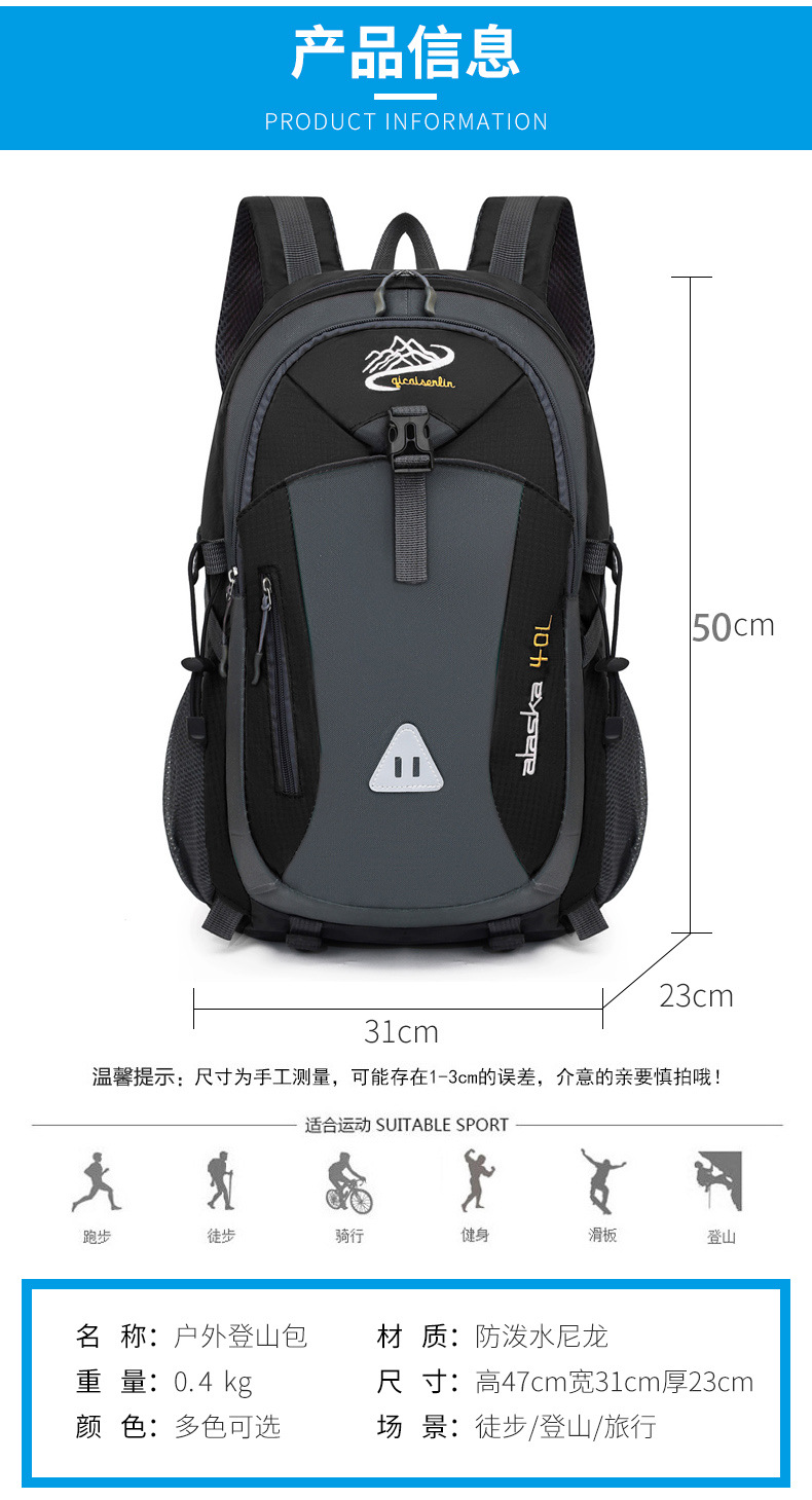 새로운 다기능 등산 가방 야외 하이킹 가방 40 리터 대용량 발수 여행 가방 학생 가방 배낭