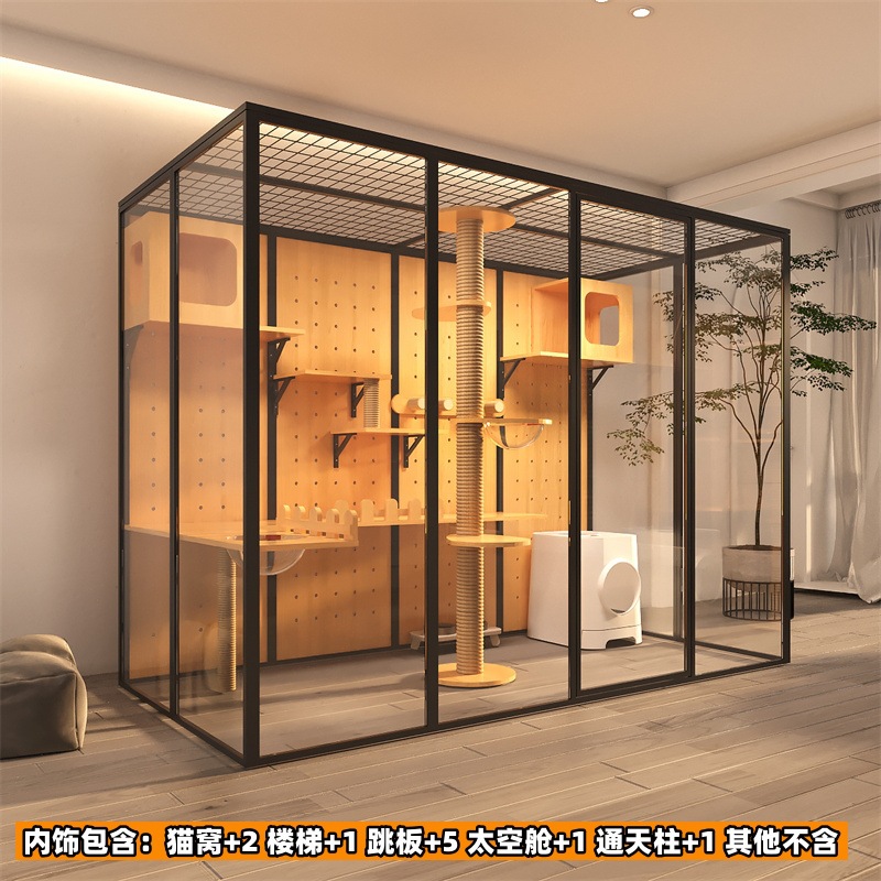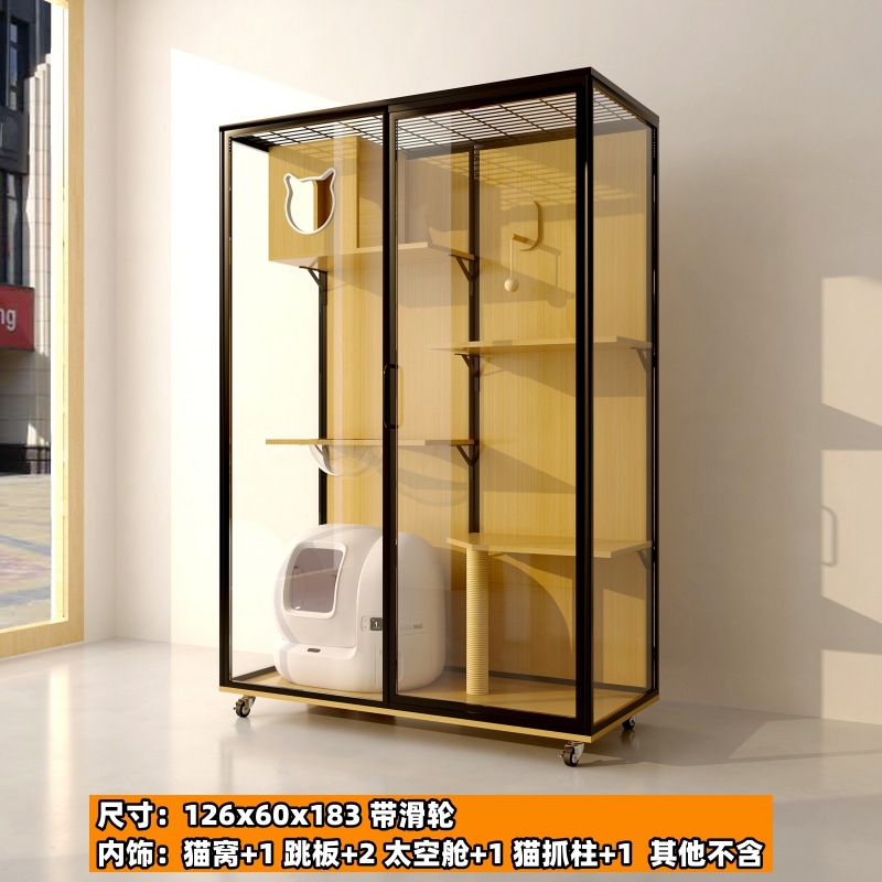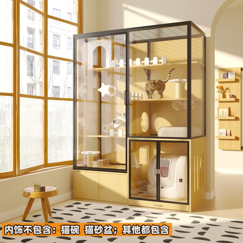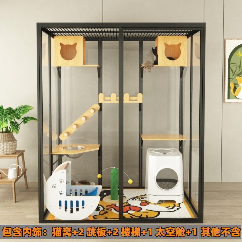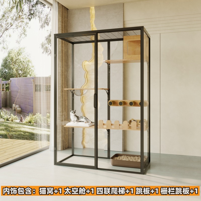 대형 고양이 케이지 빌라 홈 대형 공간 유리 발코니 고양이 하우스 디럭스 룸 고양이 둥지 애완 동물 실내 방 고양이 집 캐비닛스토어 가기