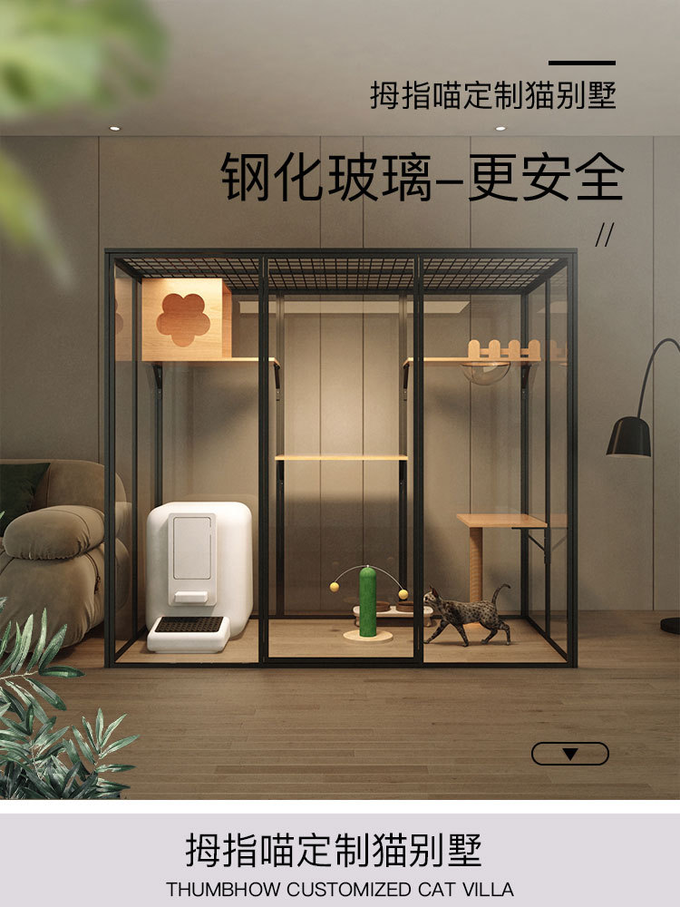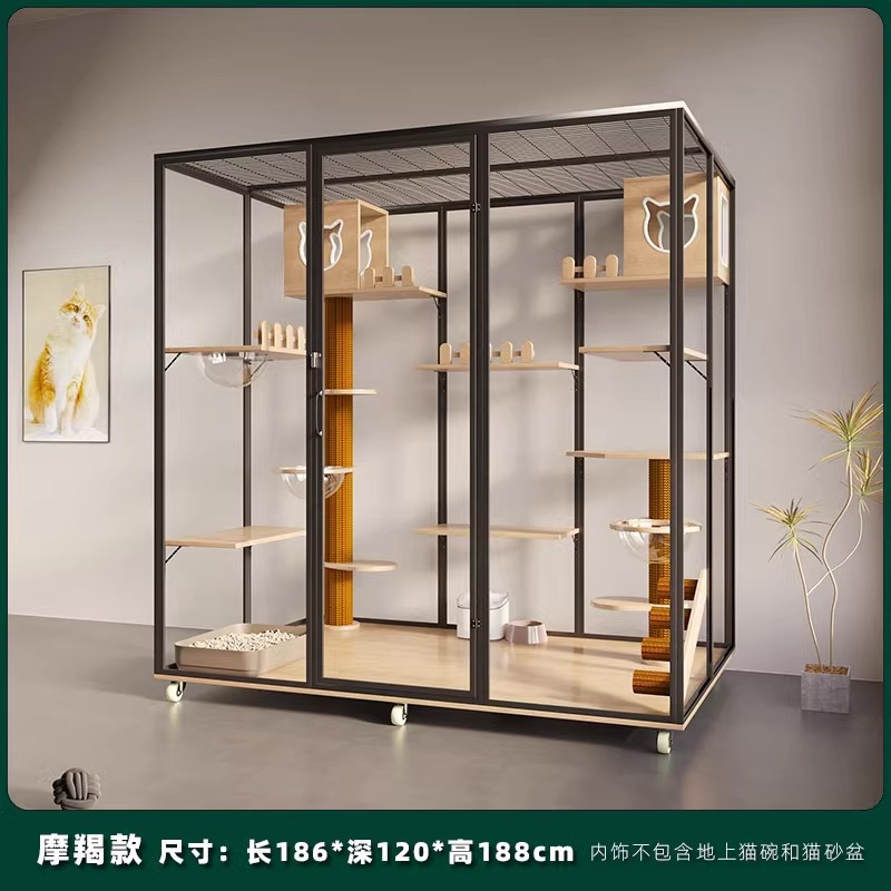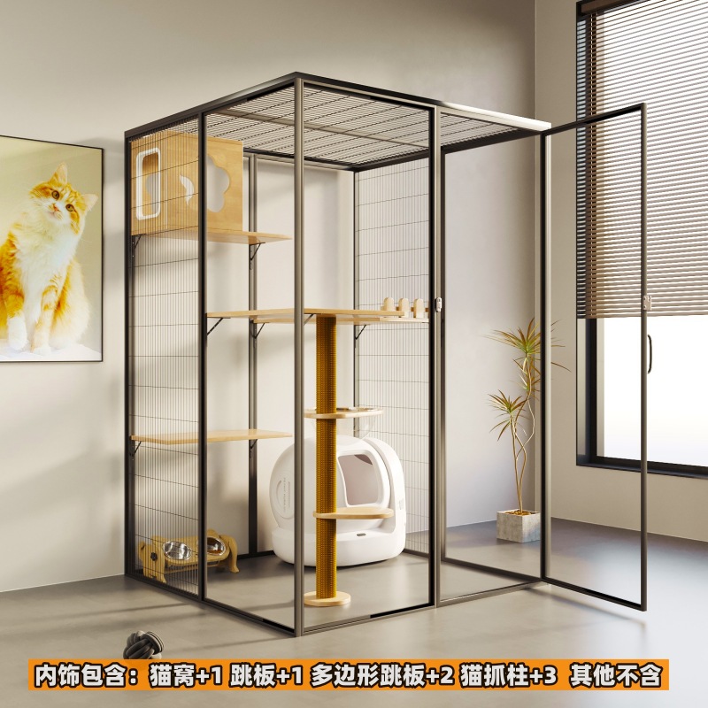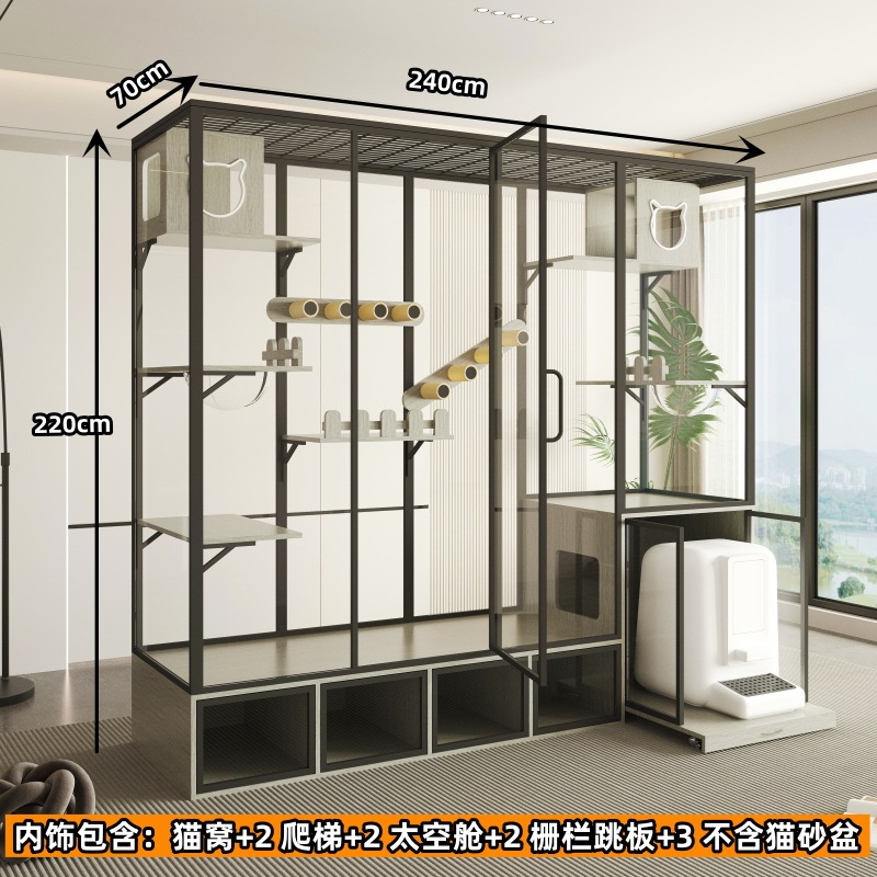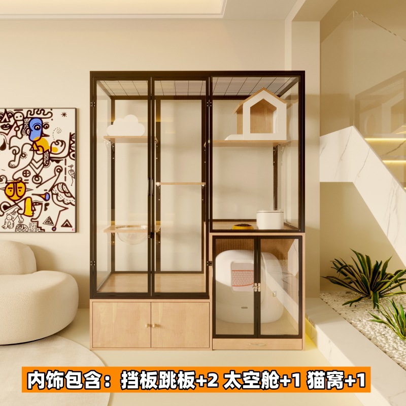 대형 고양이 케이지 빌라 홈 대형 공간 유리 발코니 고양이 하우스 디럭스 룸 고양이 둥지 애완 동물 실내 방 고양이 집 캐비닛스토어 가기