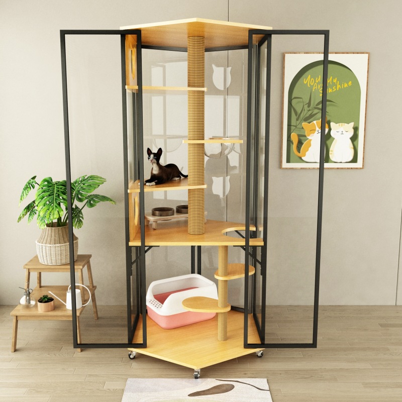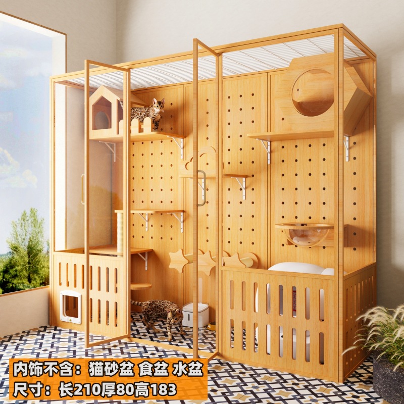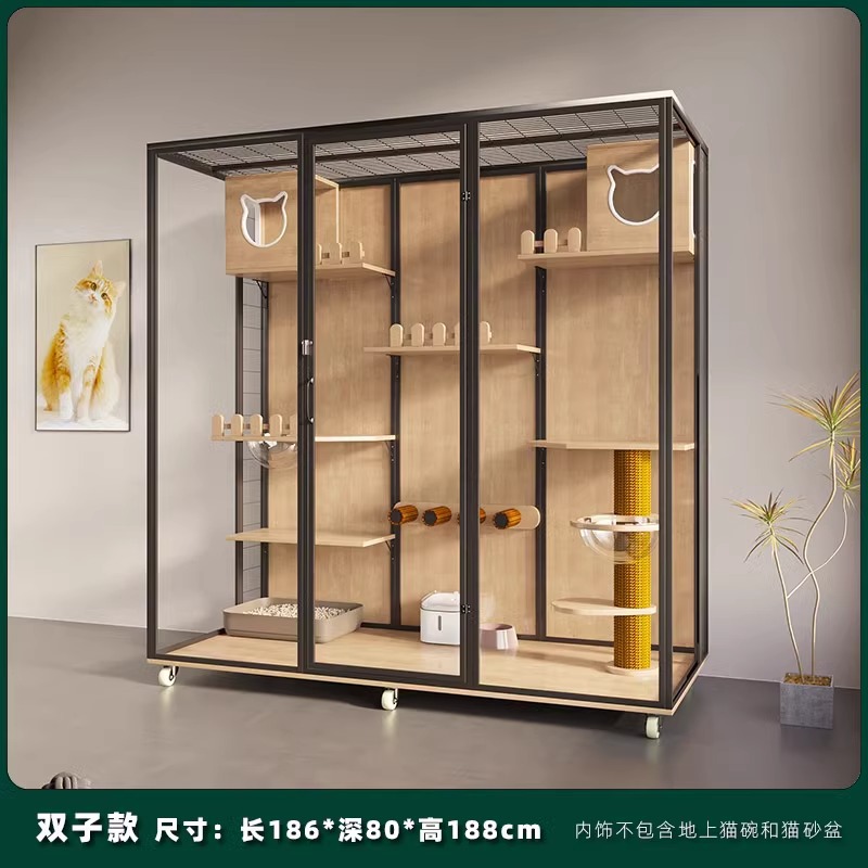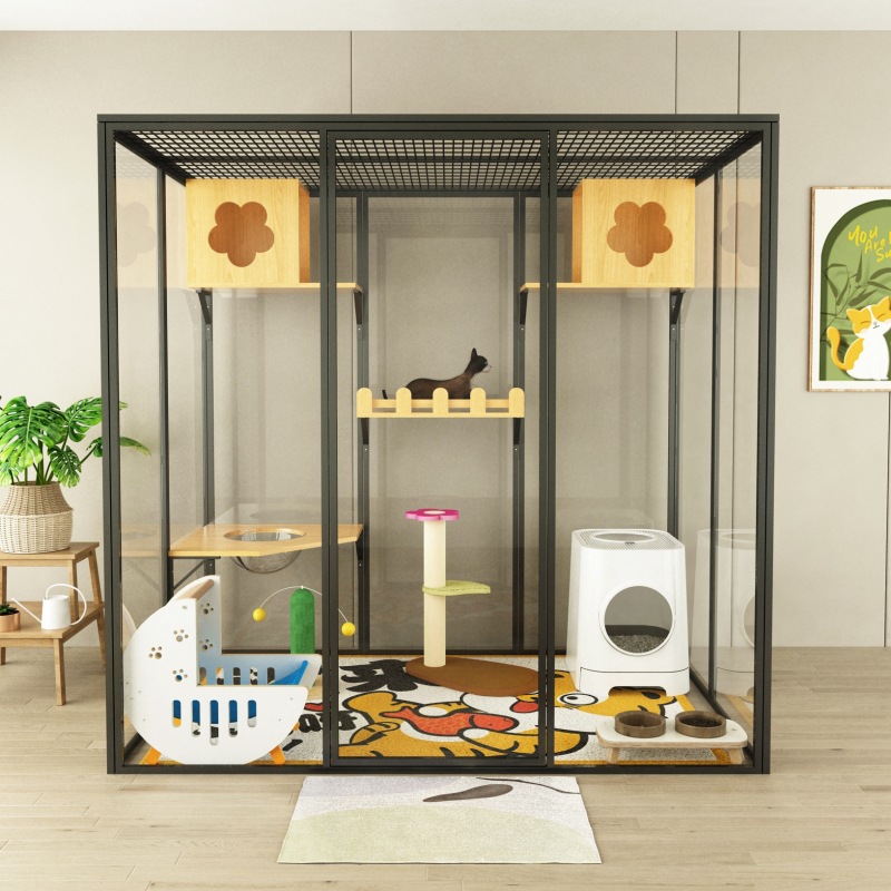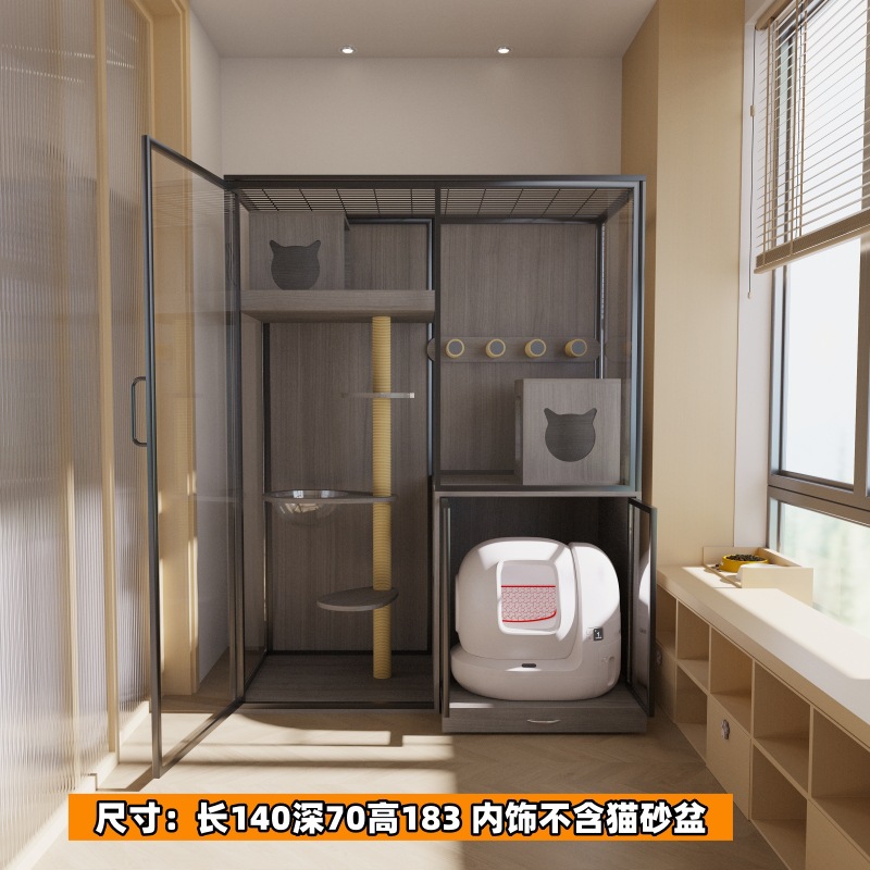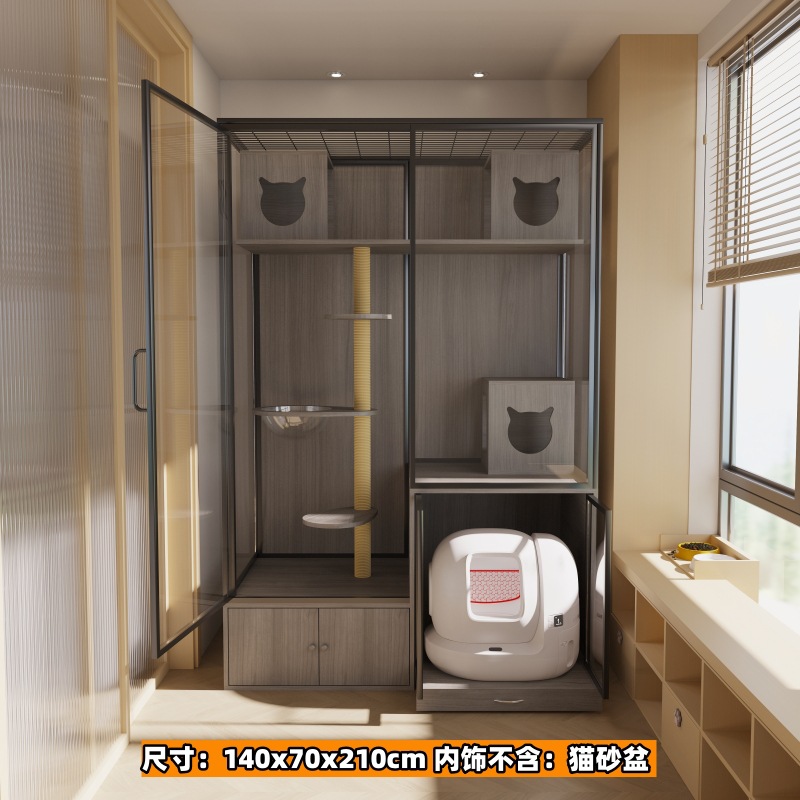대형 고양이 케이지 빌라 홈 대형 공간 유리 발코니 고양이 하우스 디럭스 룸 고양이 둥지 애완 동물 실내 방 고양이 집 캐비닛