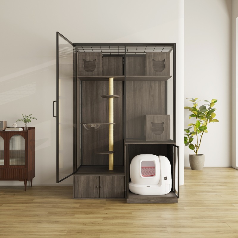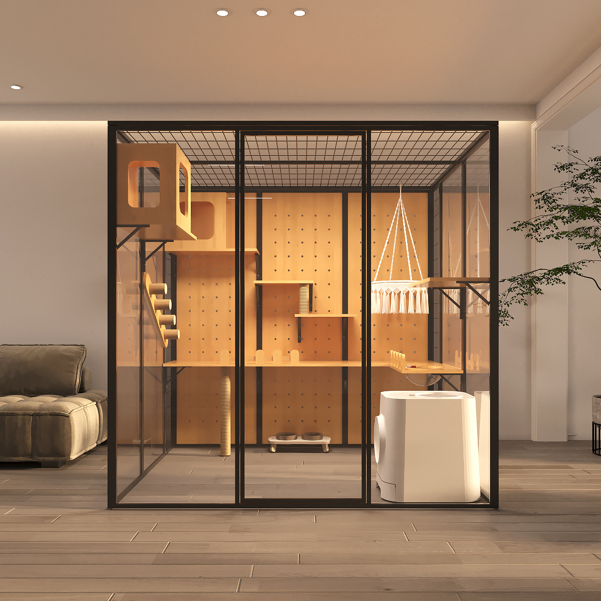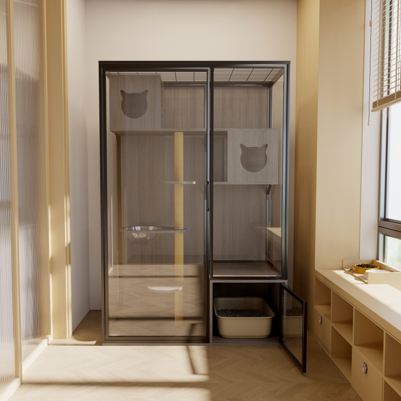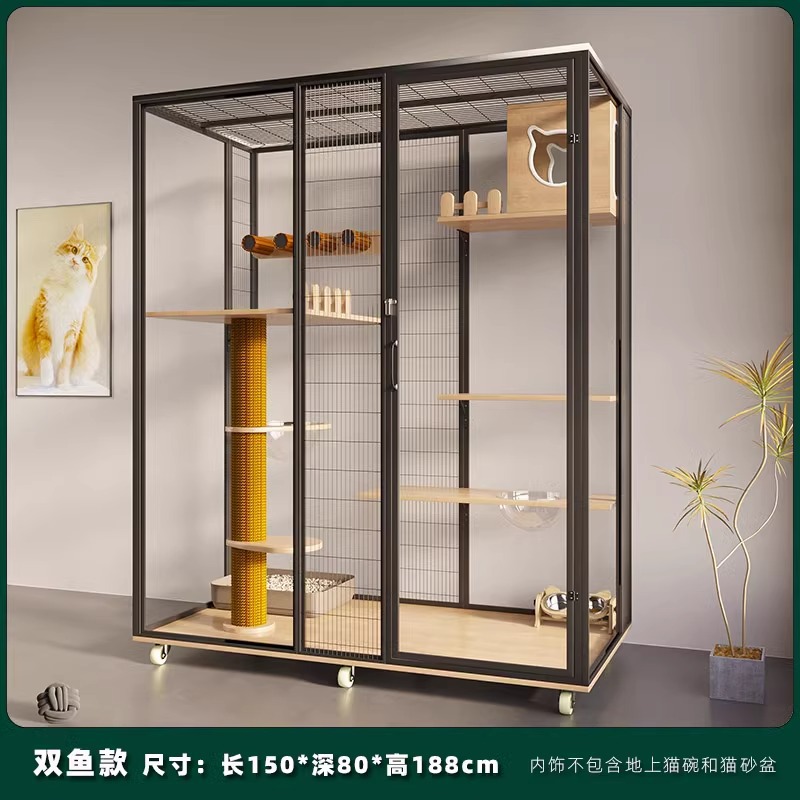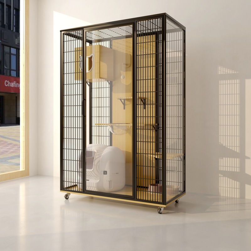 대형 고양이 케이지 빌라 홈 대형 공간 유리 발코니 고양이 하우스 디럭스 룸 고양이 둥지 애완 동물 실내 방 고양이 집 캐비닛