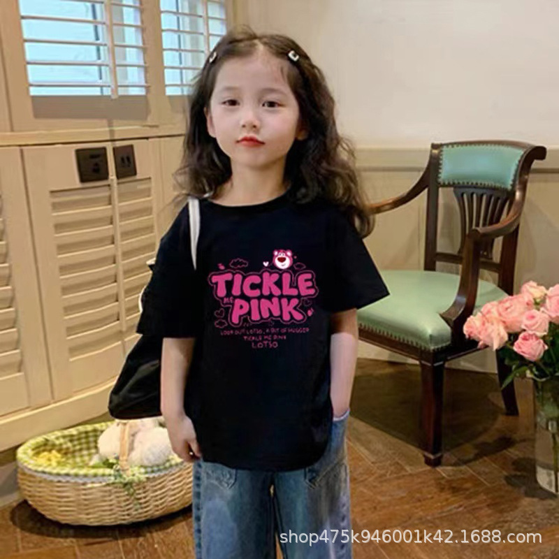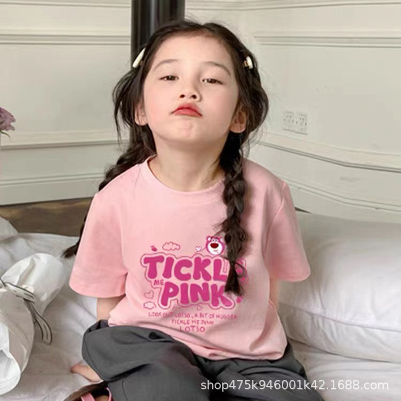 여아용 곰돌이 티셔츠 여름옷 2025 신상 유행 아동 반팔 상의 여자아이 순면 티셔츠 인스스토어 가기