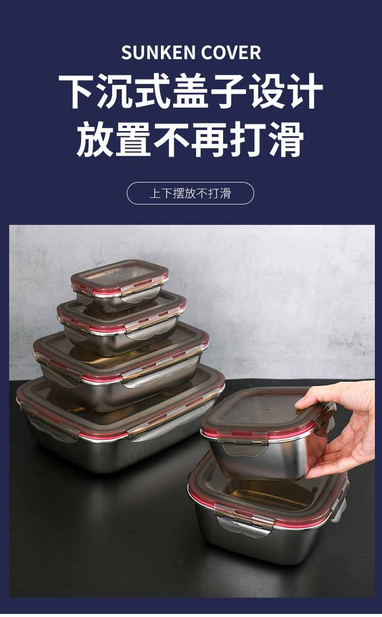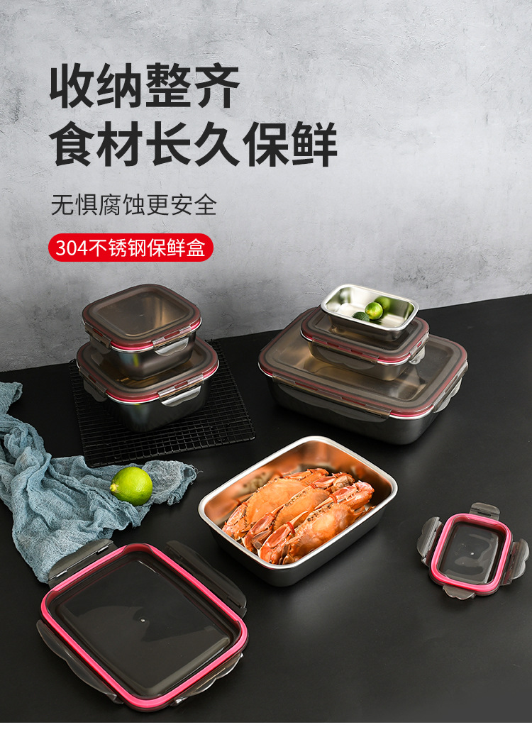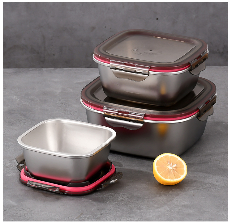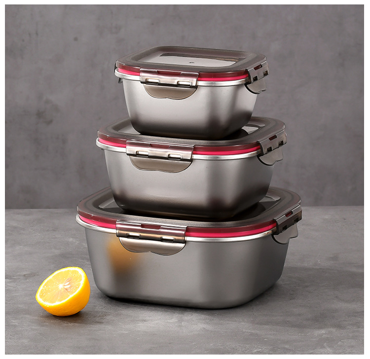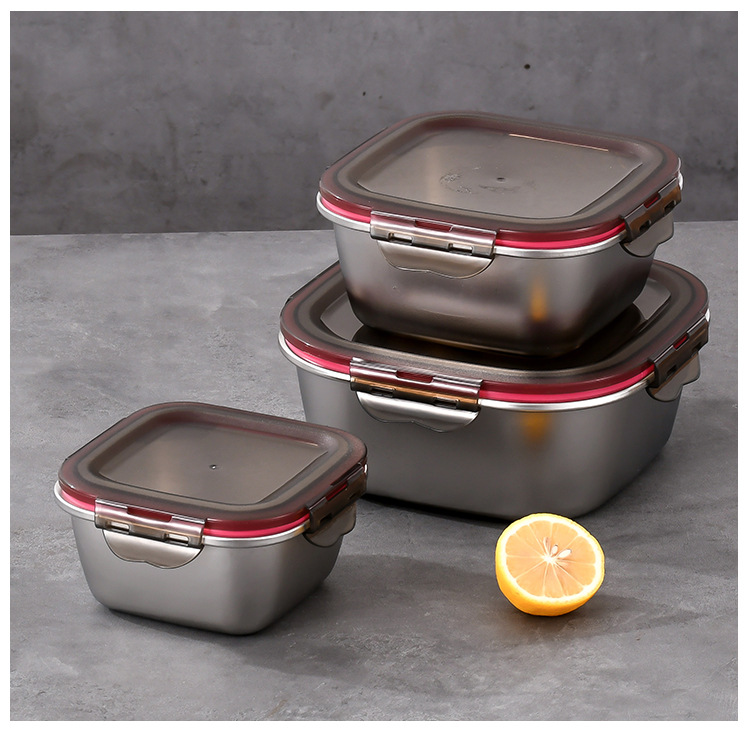 304 스테인레스 스틸 신선한 보관 상자 사각형 누출 방지 밀봉 상자 휴대용 냉장고 밀봉 신선한 보관 도시락 세트 3 개 직접 공급스토어 가기