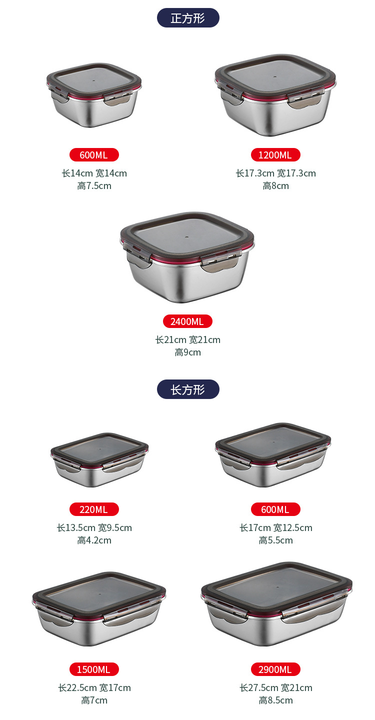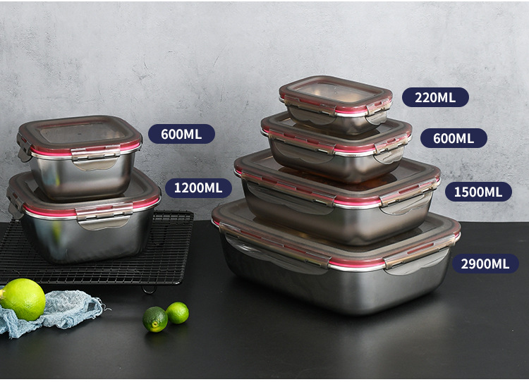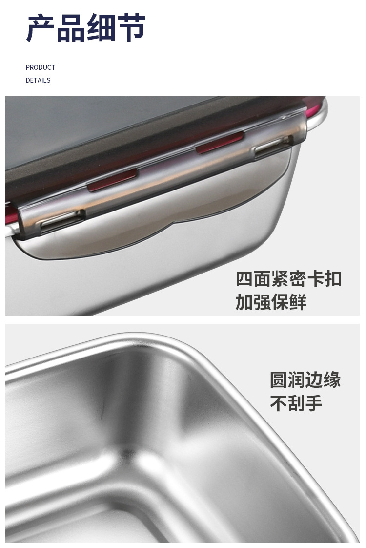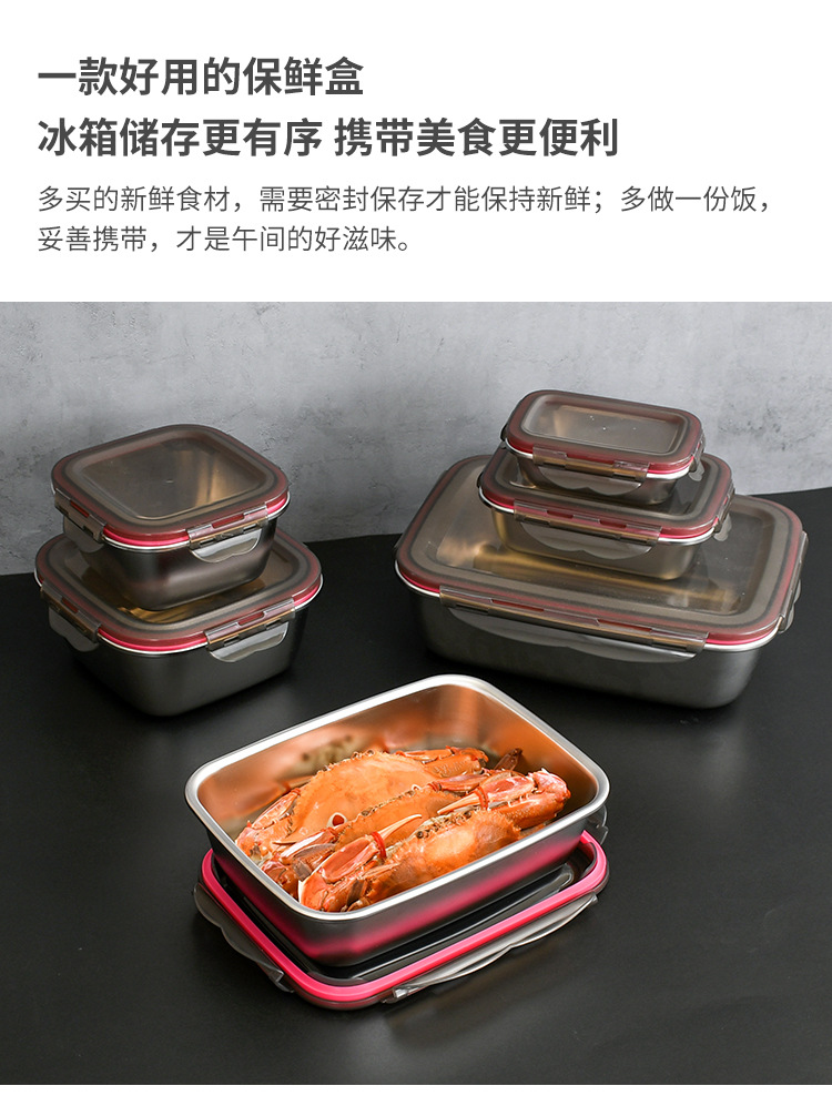 304 스테인레스 스틸 신선한 보관 상자 사각형 누출 방지 밀봉 상자 휴대용 냉장고 밀봉 신선한 보관 도시락 세트 3 개 직접 공급스토어 가기
