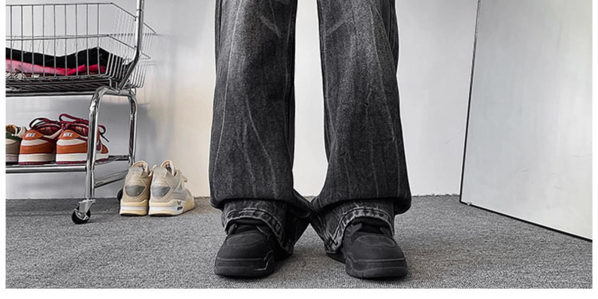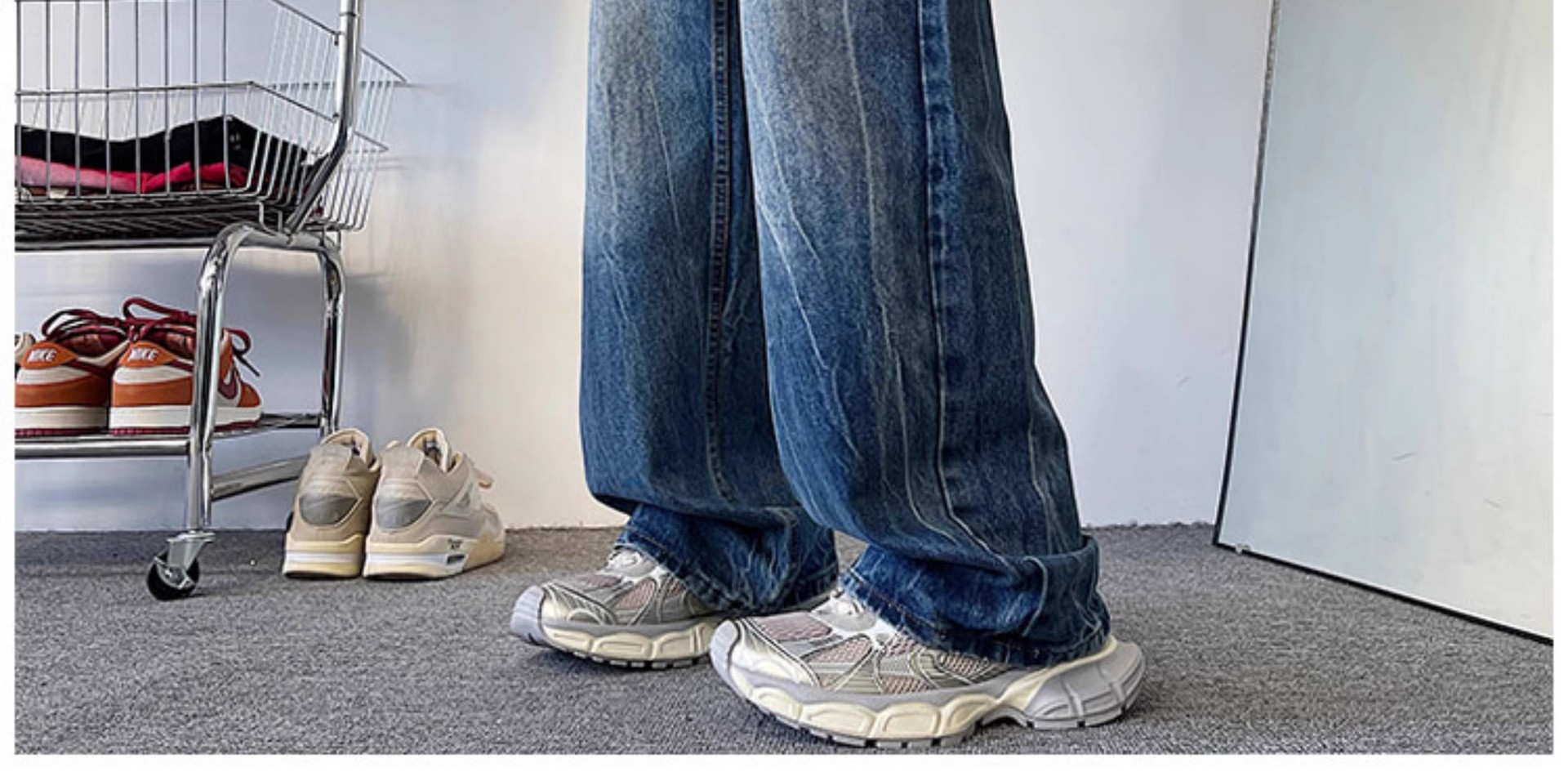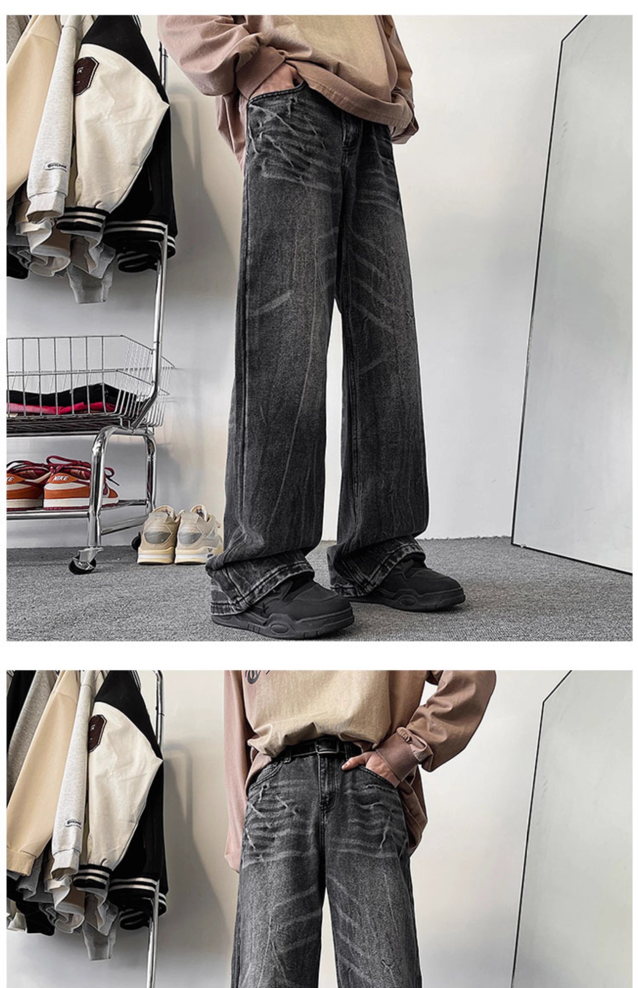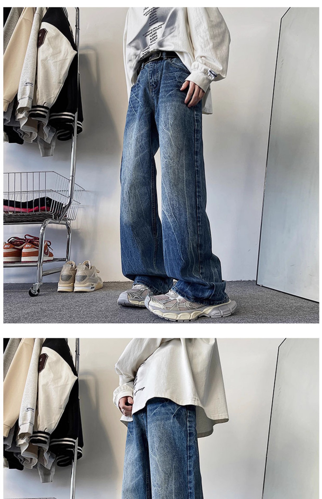 아메리칸 워시 블루 청바지 남성용 트렌디 브랜드 레트로 올드 루즈 와이드 레그 스트레이트 하이 스트리트 바이브 롱 팬츠스토어 가기