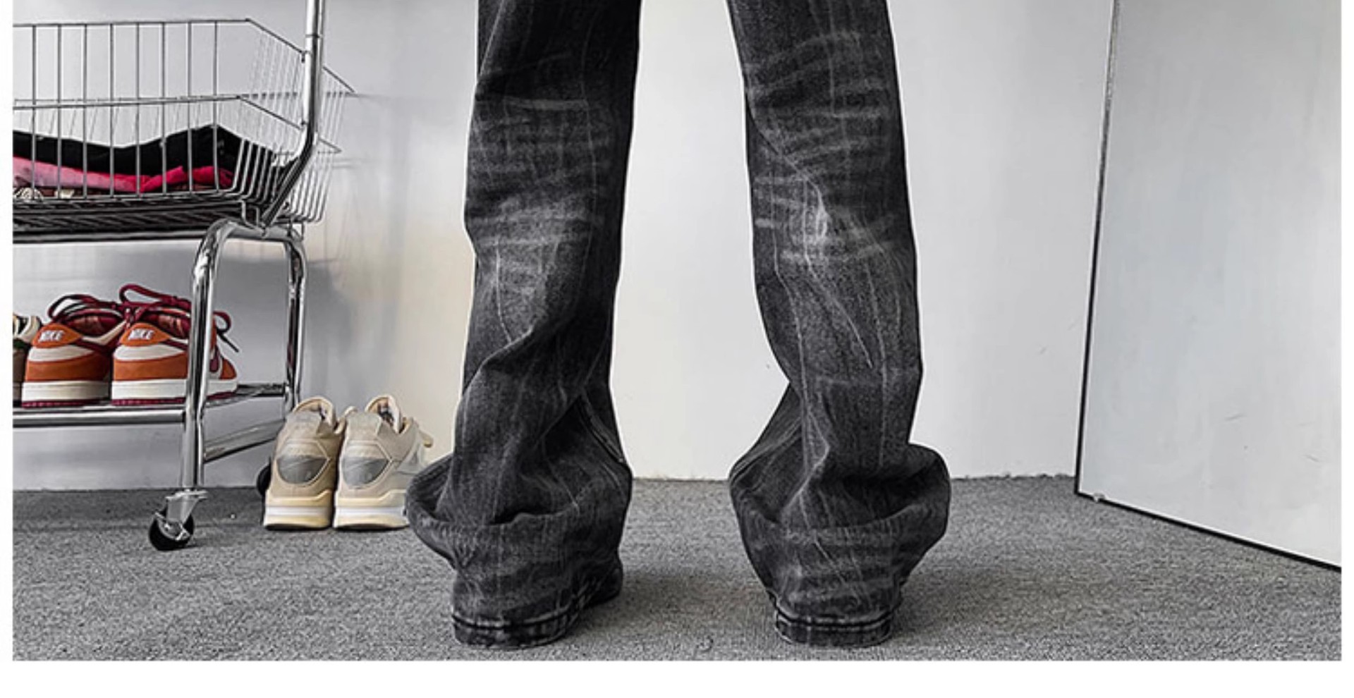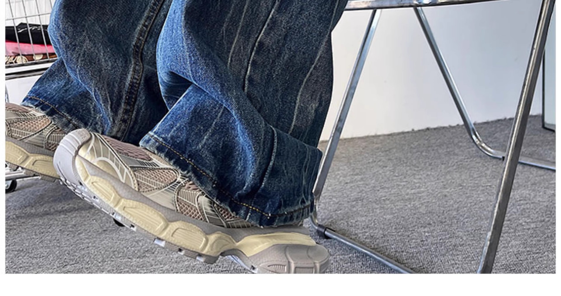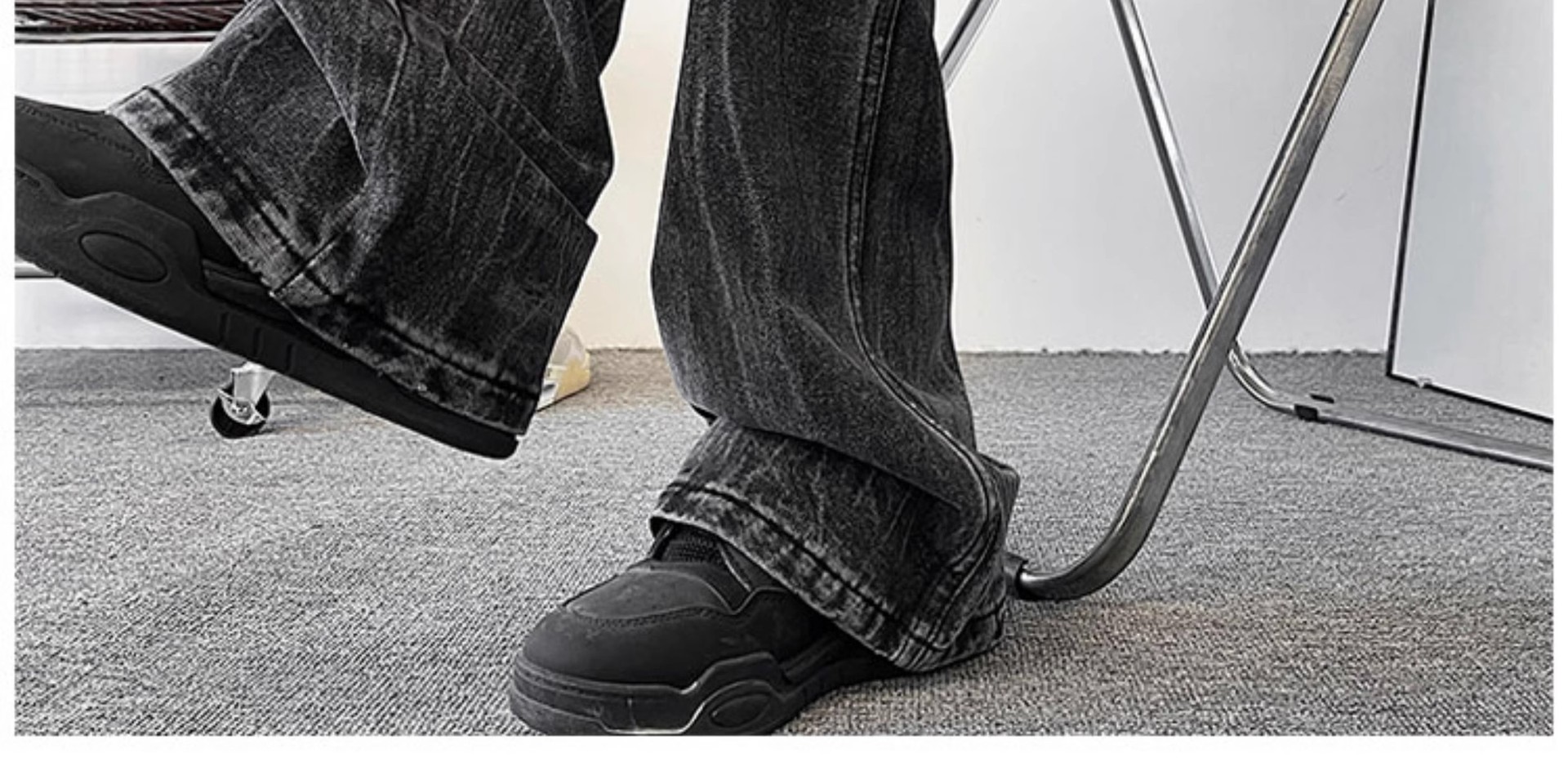 아메리칸 워시 블루 청바지 남성용 트렌디 브랜드 레트로 올드 루즈 와이드 레그 스트레이트 하이 스트리트 바이브 롱 팬츠