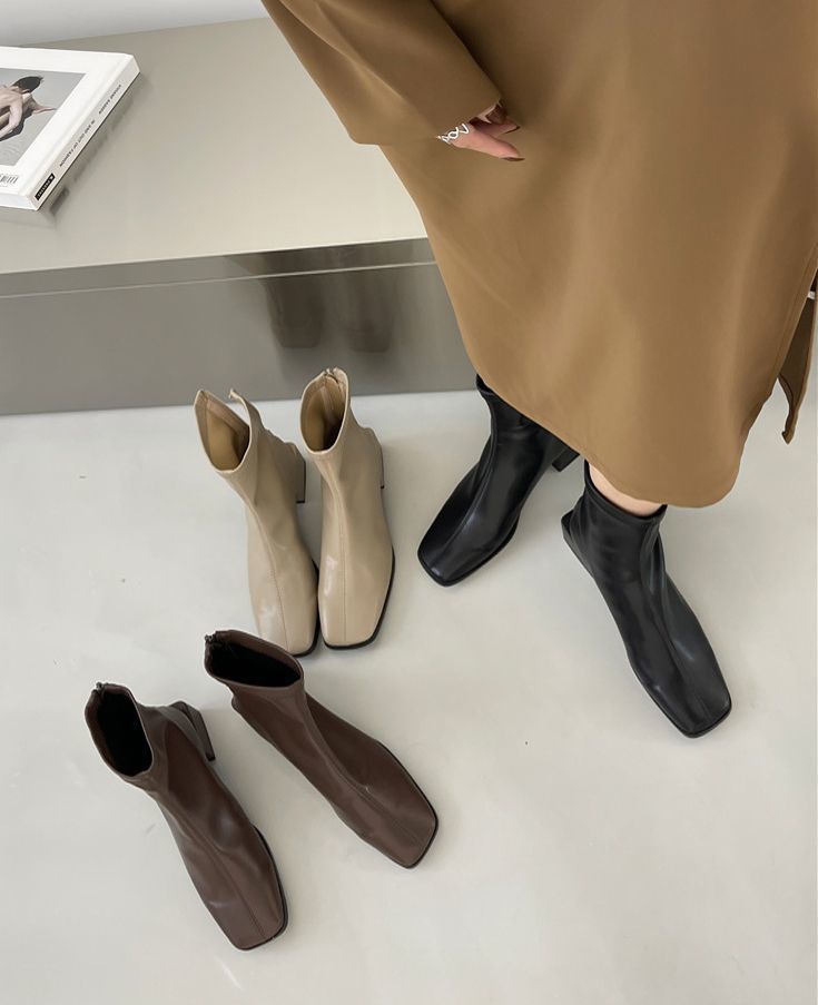 • 카키 609 골드 9 스퀘어 토 부츠 4 힐 하이 플러스 벨벳