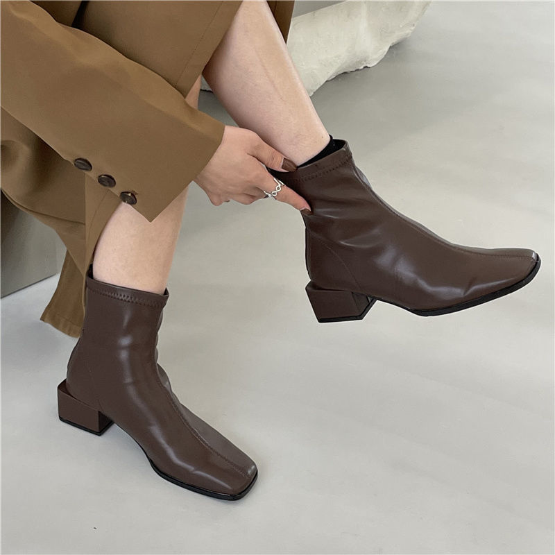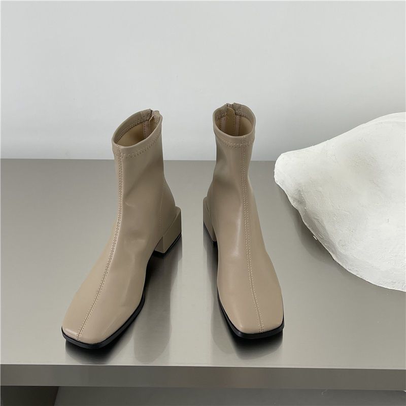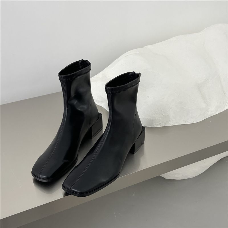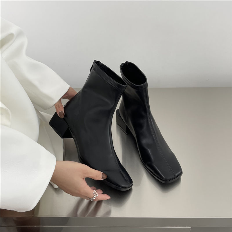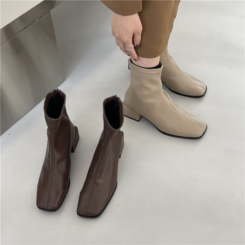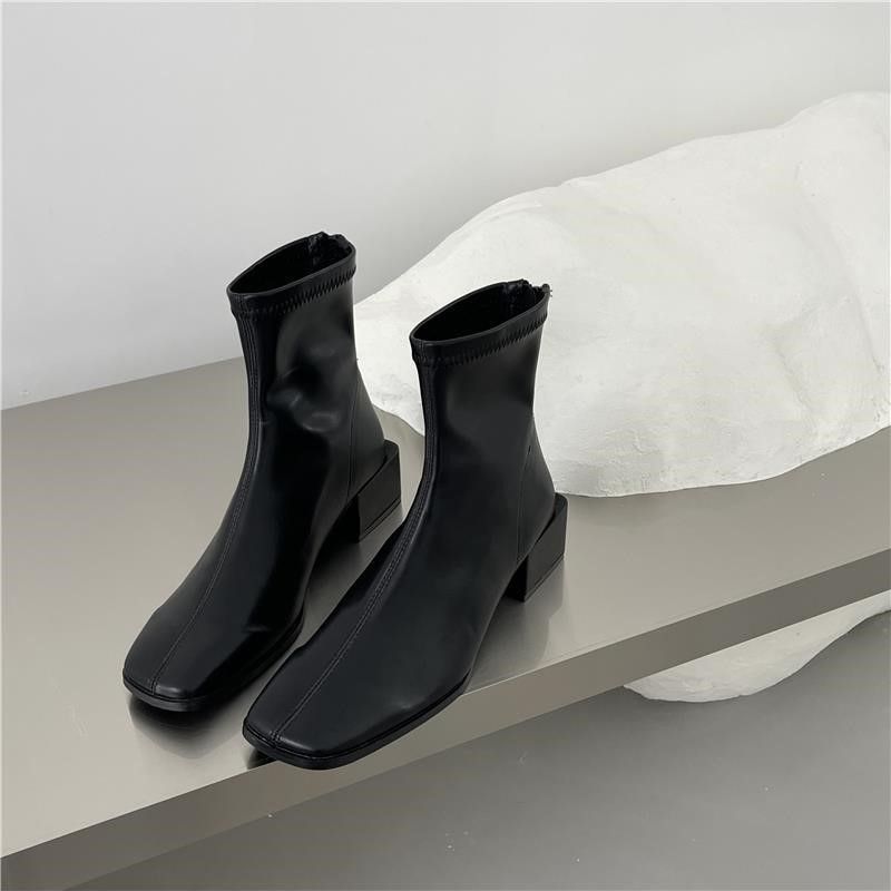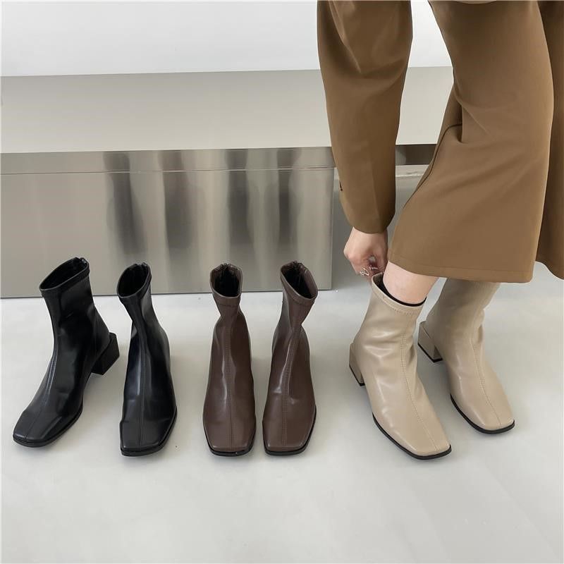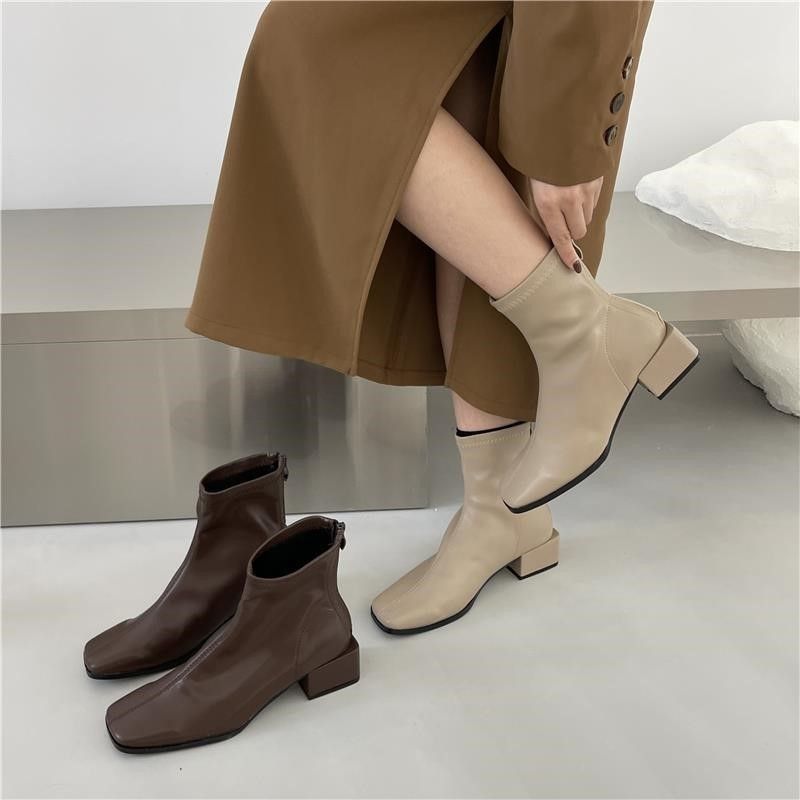 2025년 신상 사각코 두꺼운 밑창 뒷지퍼 천연가죽 마틴부츠 영국풍 숏부츠 대형 사이즈 플러스 벨벳 여성부츠 41-43