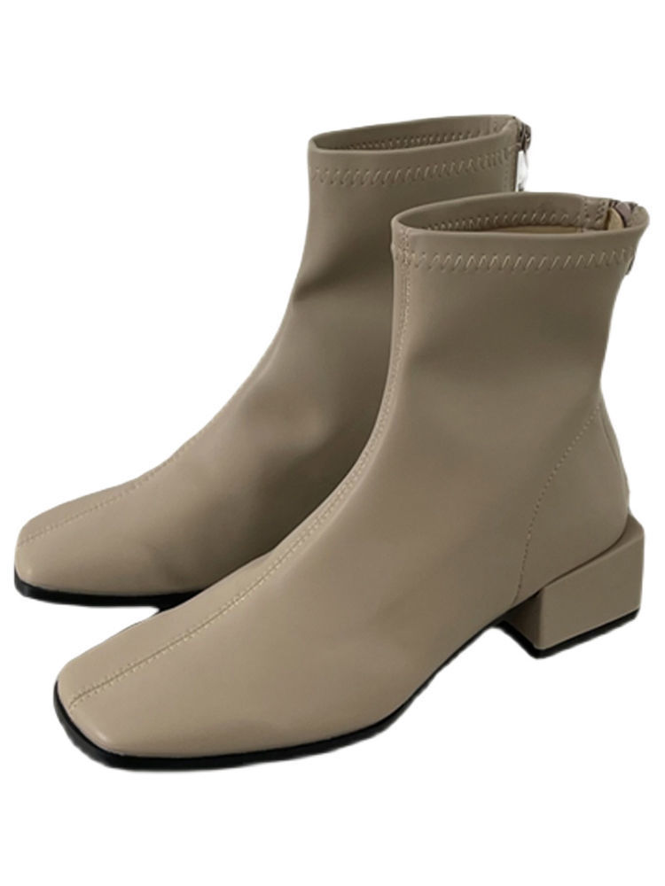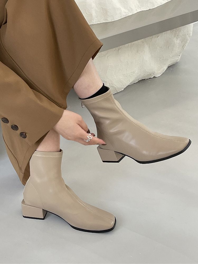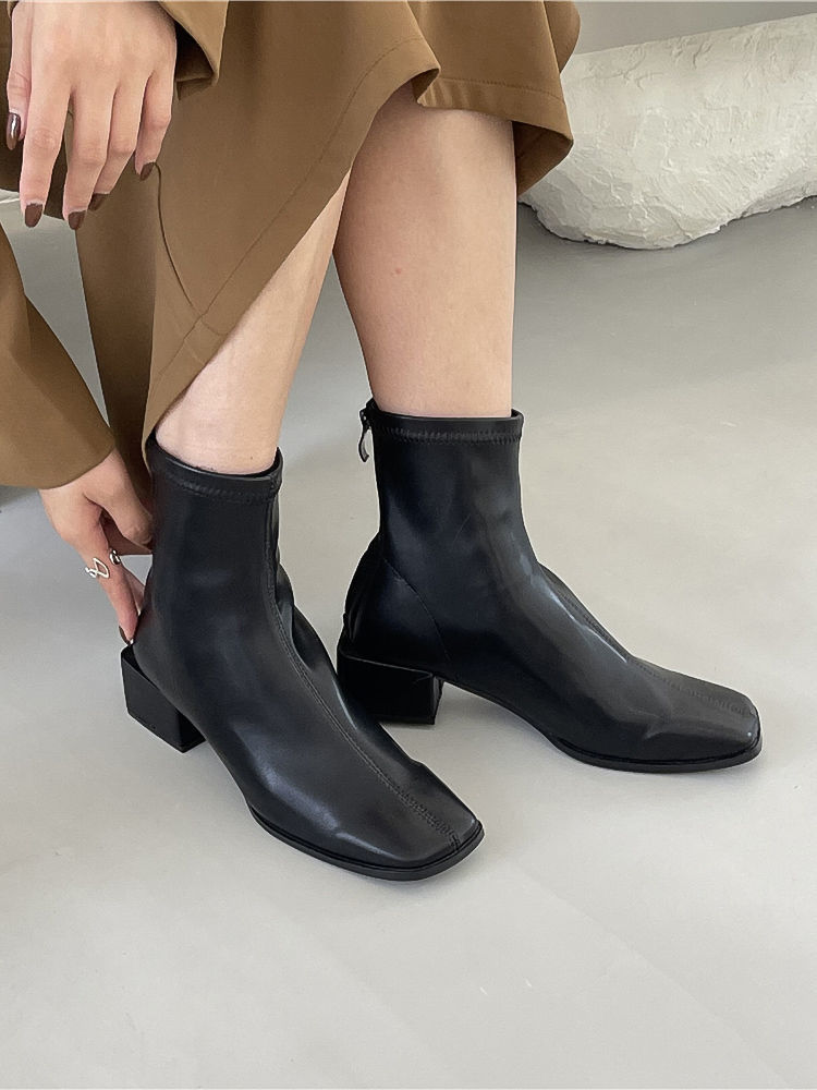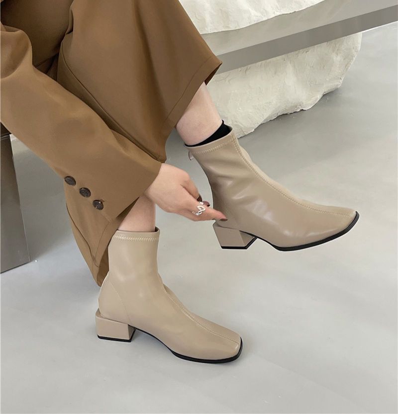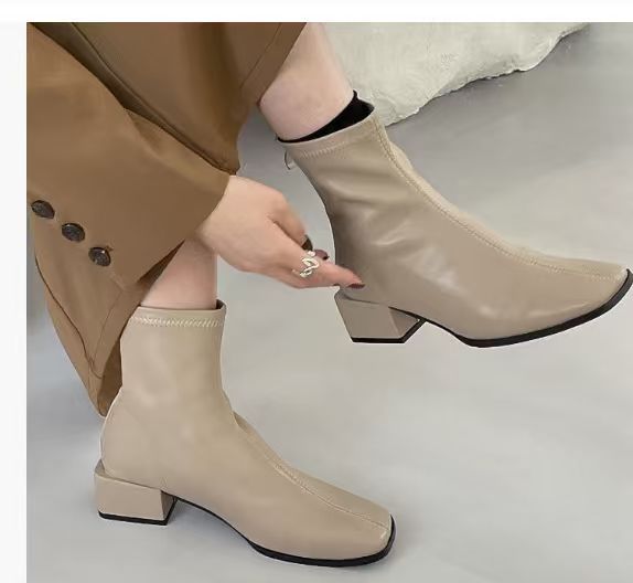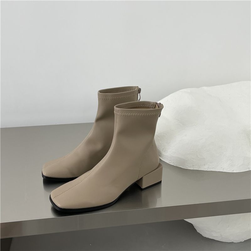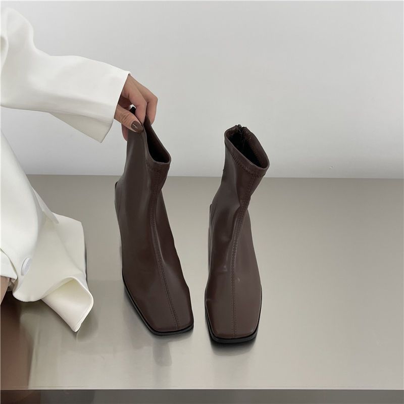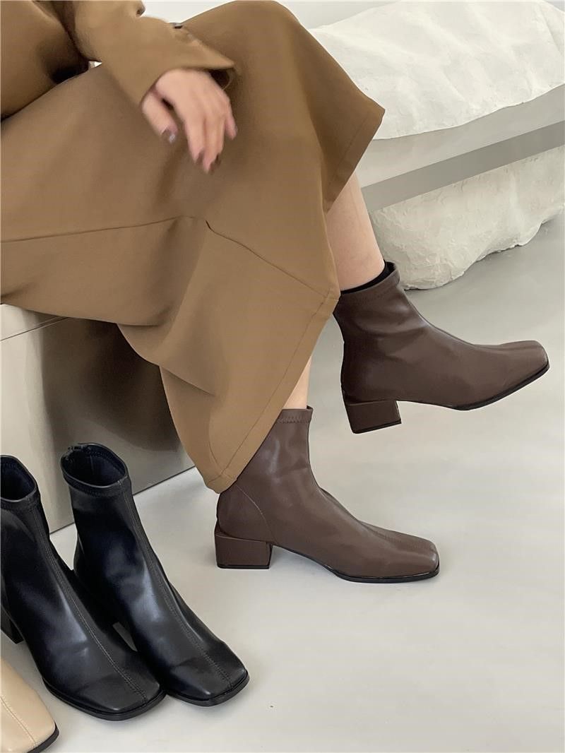2025년 신상 사각코 두꺼운 밑창 뒷지퍼 천연가죽 마틴부츠 영국풍 숏부츠 대형 사이즈 플러스 벨벳 여성부츠 41-43