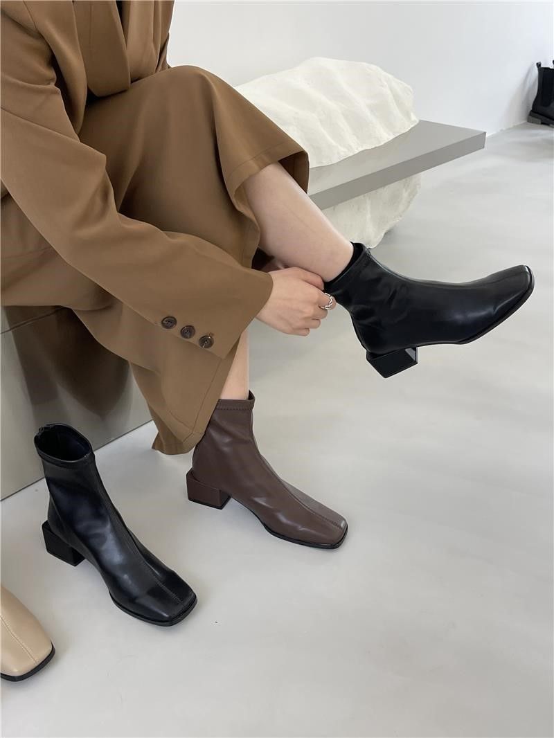 2025년 신상 사각코 두꺼운 밑창 뒷지퍼 천연가죽 마틴부츠 영국풍 숏부츠 대형 사이즈 플러스 벨벳 여성부츠 41-43스토어 가기