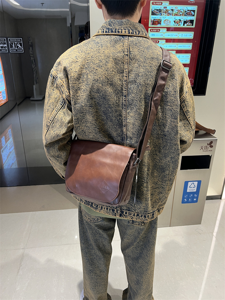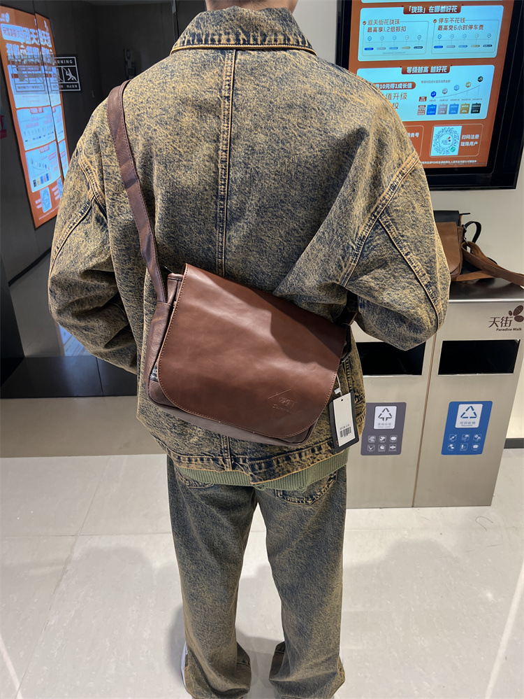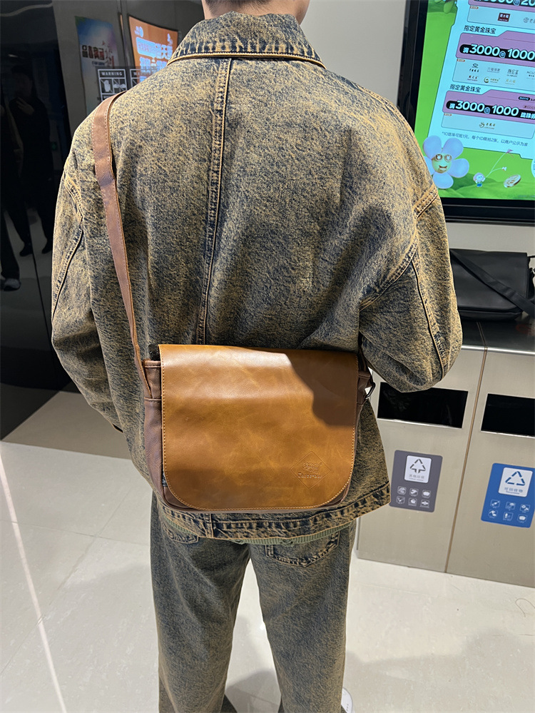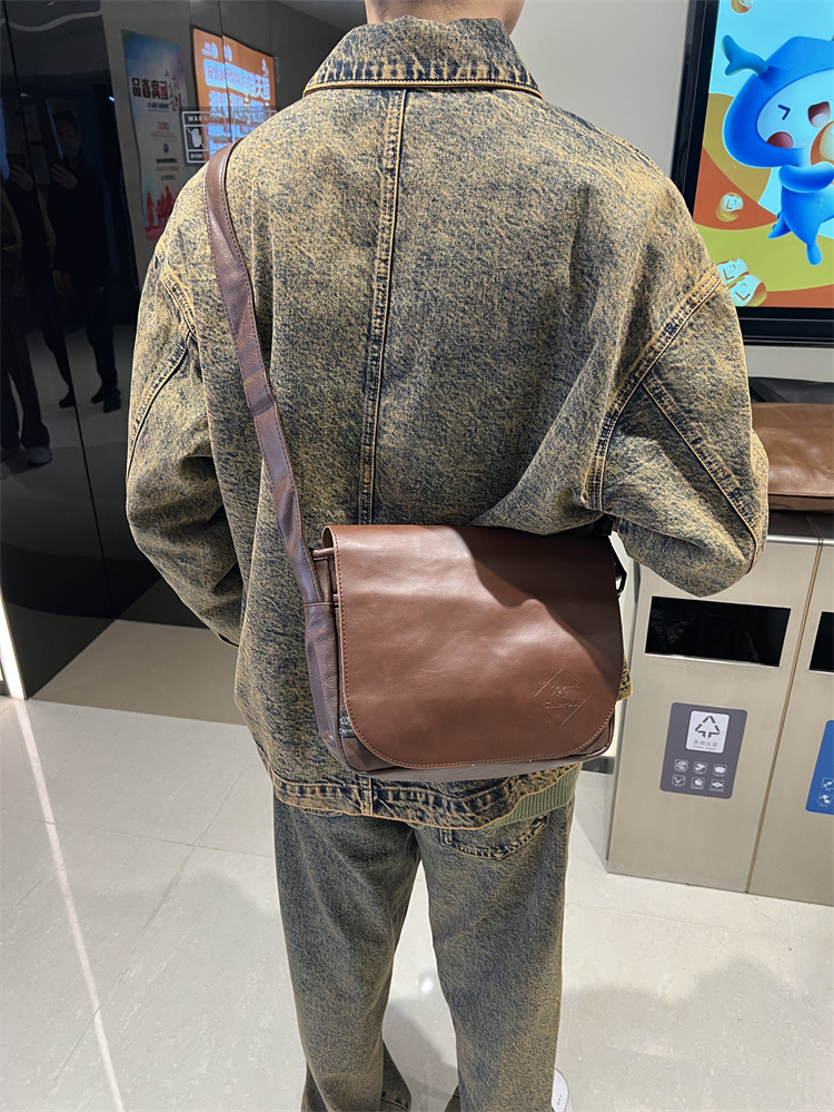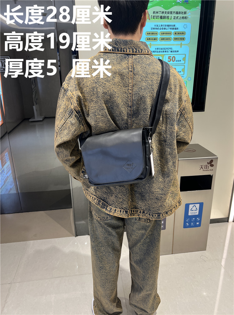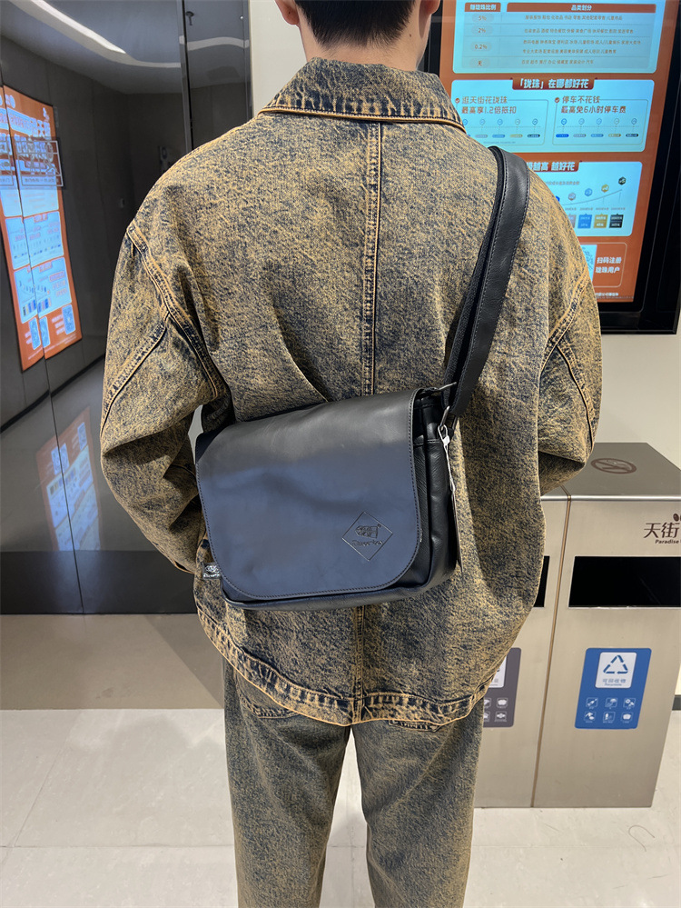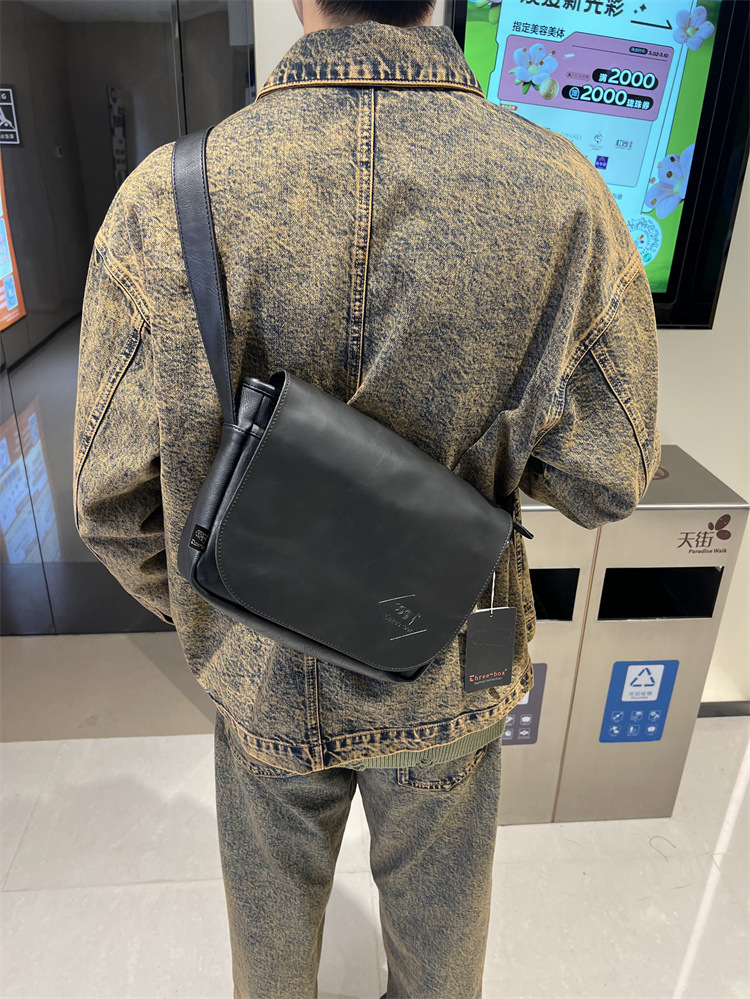 三盒子时尚国潮男士斜挎包日系休闲男女单肩翻盖邮差复古机车背包