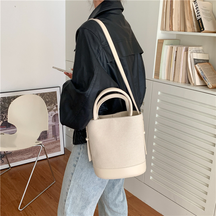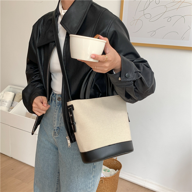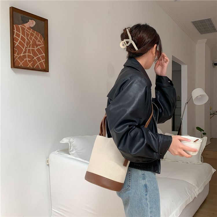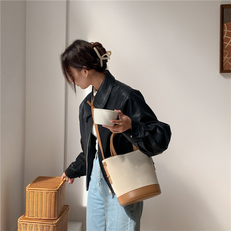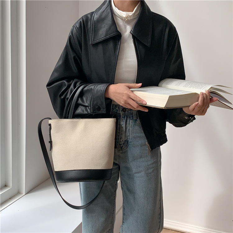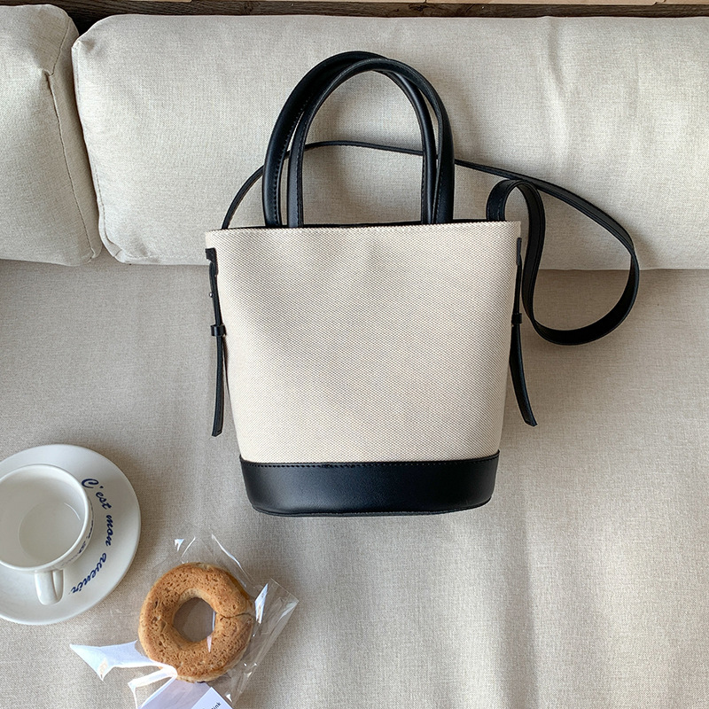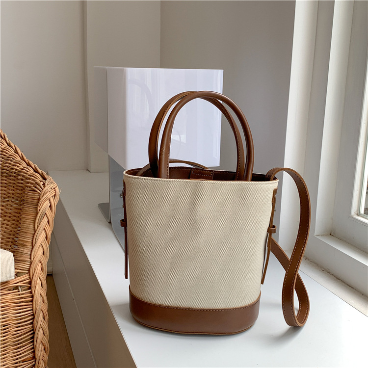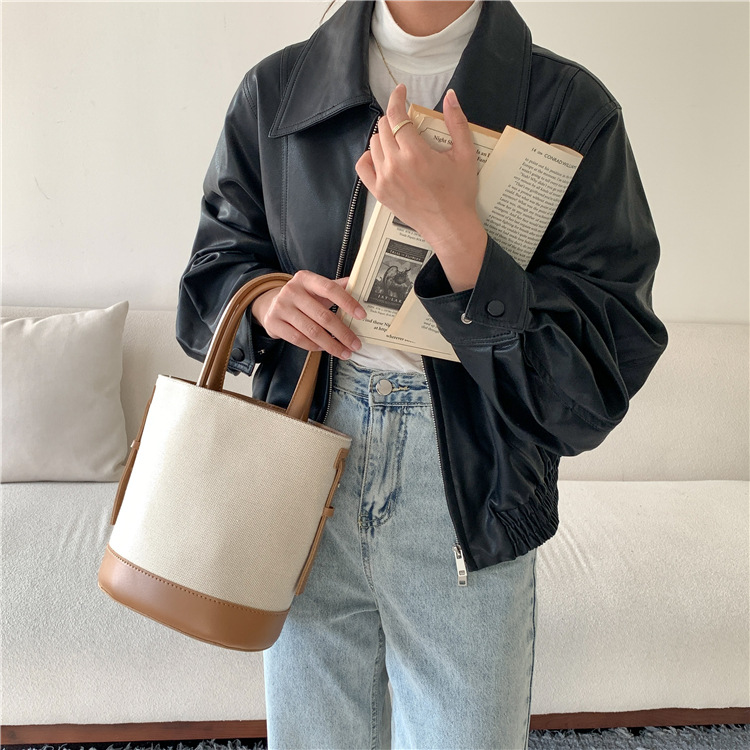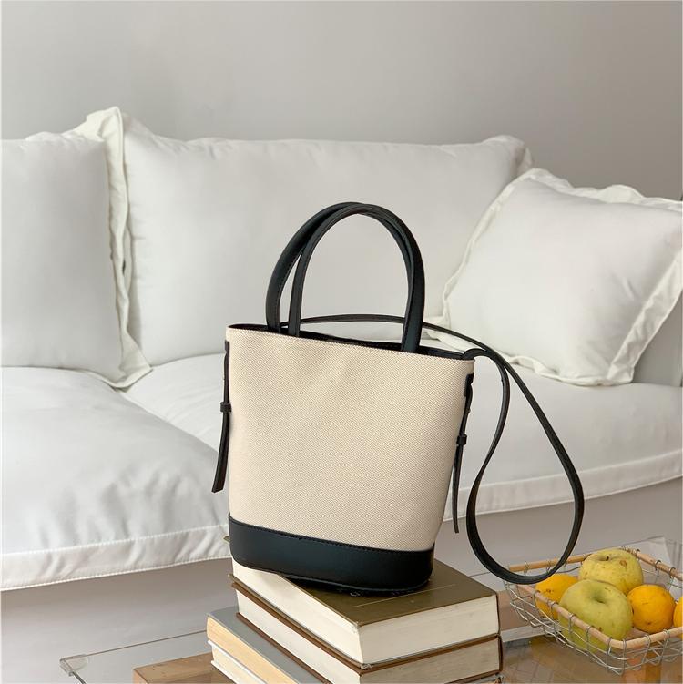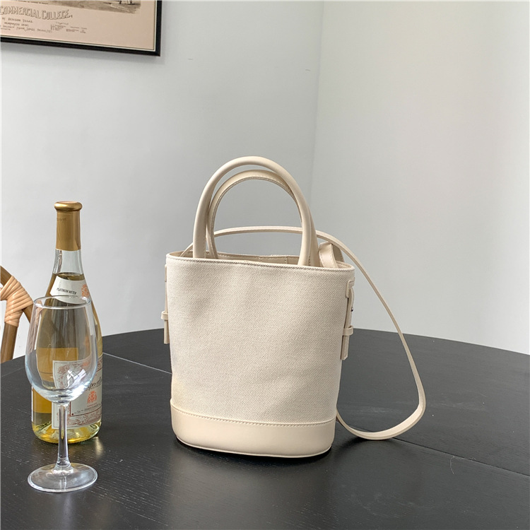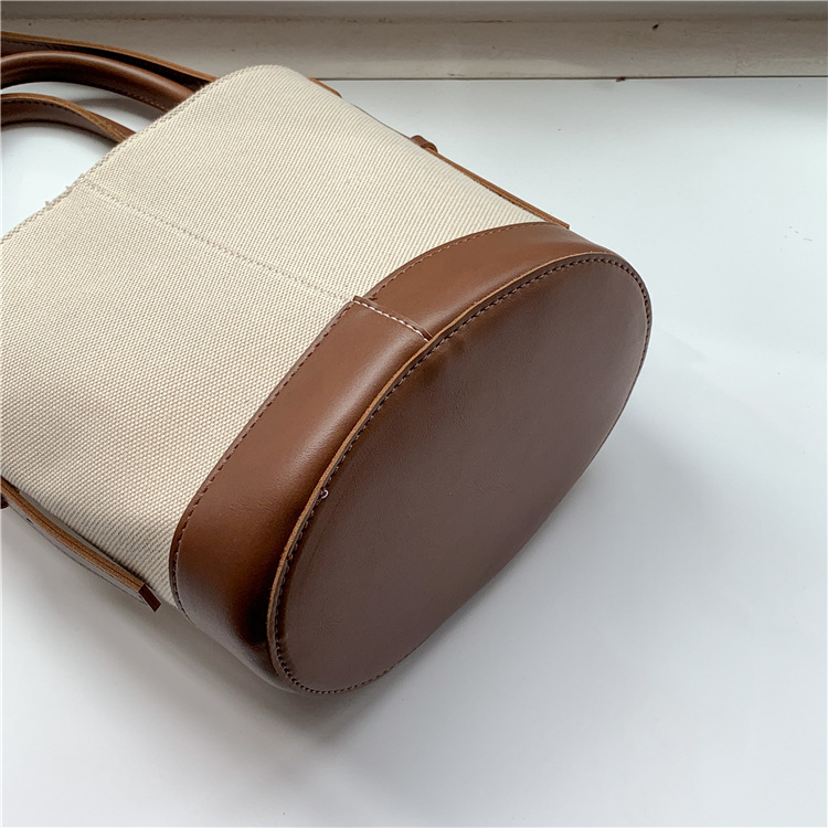 휴대용 버킷 백 맞춤형 로고 봄 여름 접합 통근 캔버스 가방 ins 스타일 대용량 여성용 다용도 숄더백
