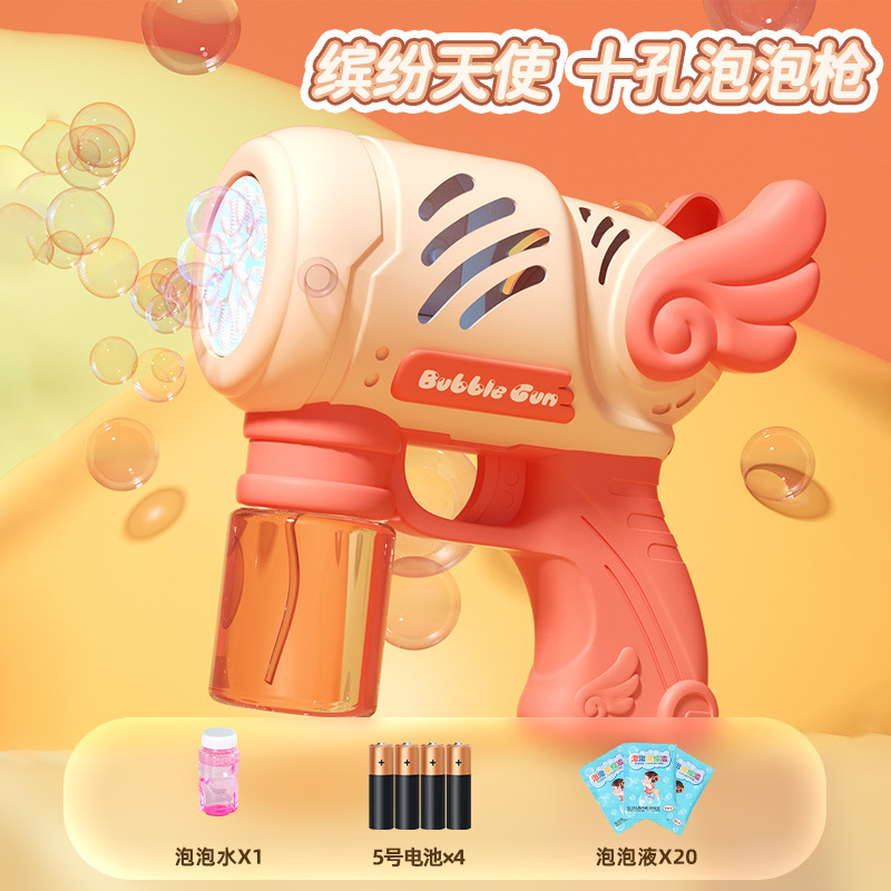 다채로운 천사 거품 기계 휴대용 전체 자동 게이트 링 거품 총 전기 어린이 장난감의 세대