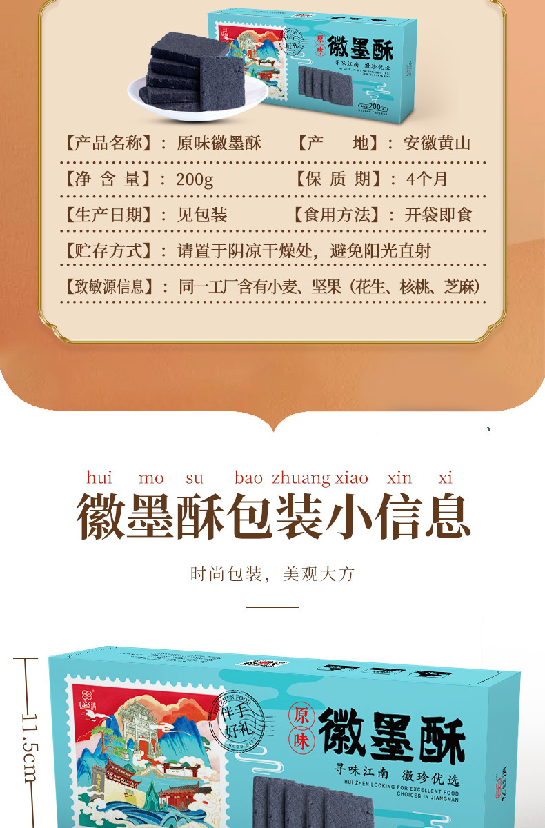 황산 전문 Huizhou 잉크 선명한 검은 참깨 선명한 전통 과자 관광 제품 손 선물 전문 식품