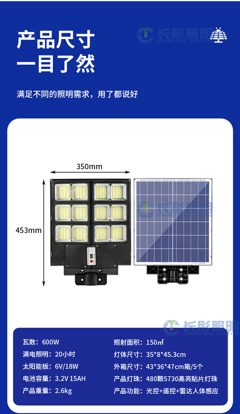 국경 간 새로운 LED 실외 조명 가정용 통합 방수 정원 조명 지능형 유도 태양 광 가로등
