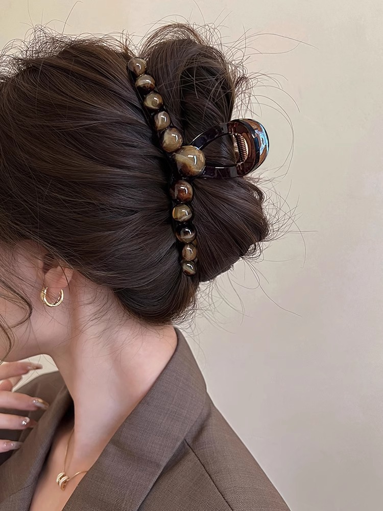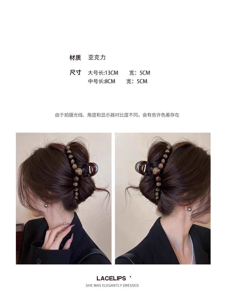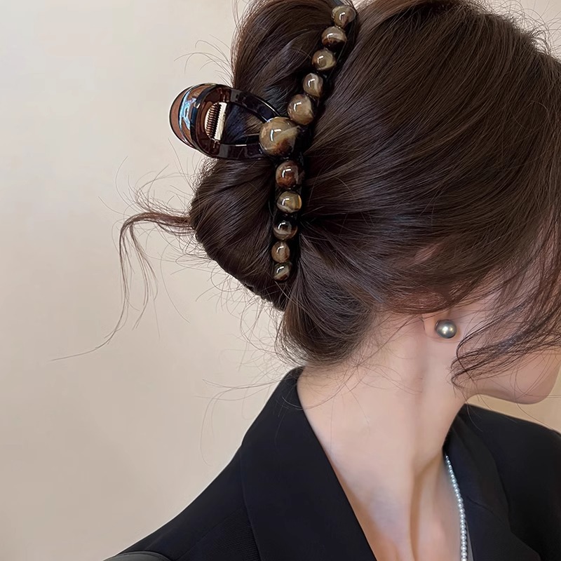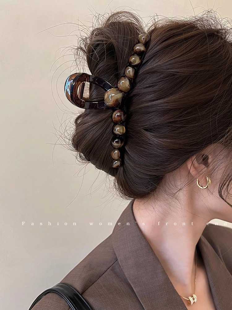 美拉德气质轻奢珍珠抓夹女高级感发量大后脑勺盘发鲨鱼夹大号发夹