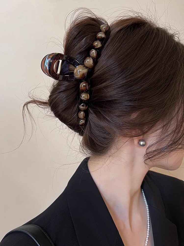 高级感黑色珍珠大号抓夹女后脑勺头饰发夹发量多鲨鱼夹2024新款