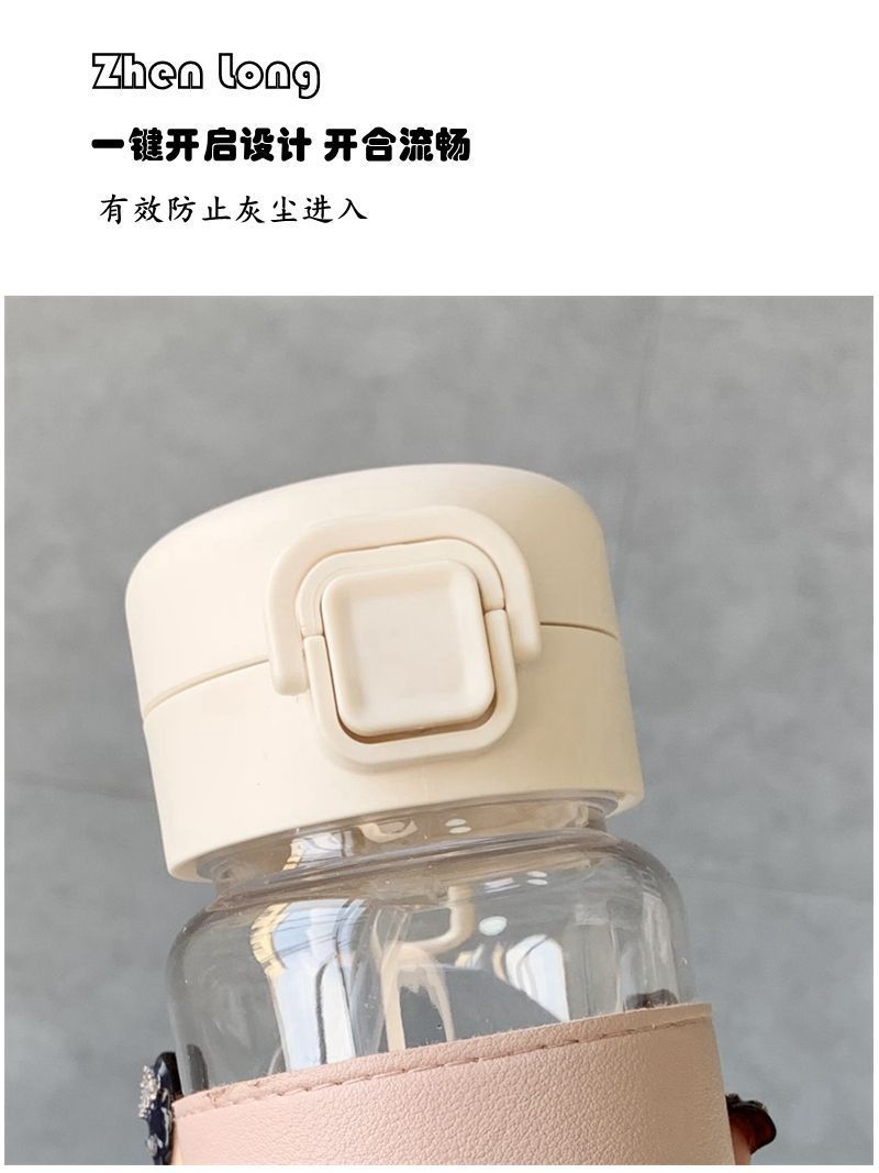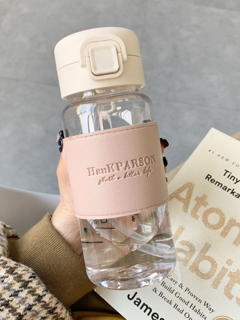 플라스틱 높은 색상 가치 사이버 인기있는 바운스 뚜껑 흡입 튜브 컵 남성과 여성 학생 커플 컵을위한 가죽 커버 안티 스케일 워터 컵