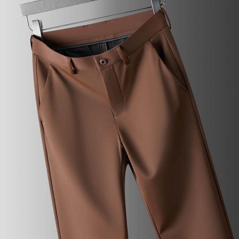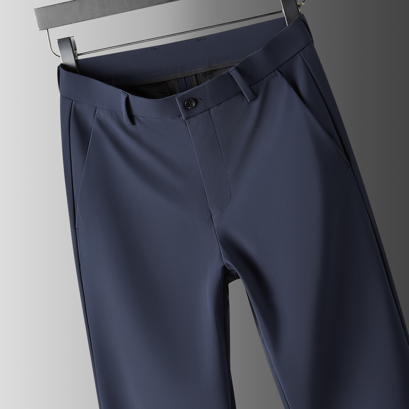 2024 캐주얼 바지 남자의 봄과 가을 중년 높은 스트레치 바지 중고 허리 직선 다리미 바지
