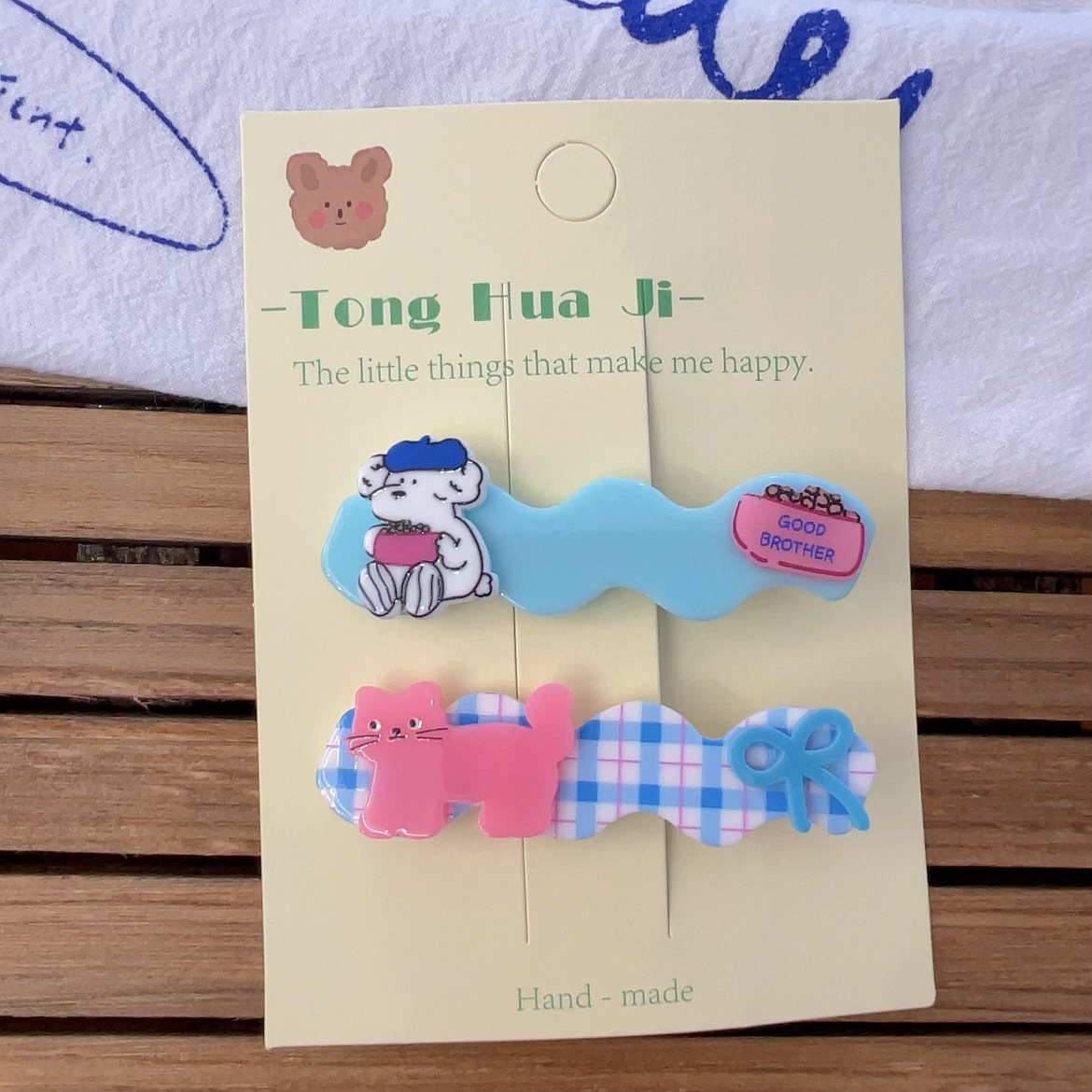 한식 귀여운 만화 크리 에이 티브 작은 동물 웨이브 헤어핀 세트 달콤한 소녀 심장 아이 같은 방귀 클립 사이드 클립