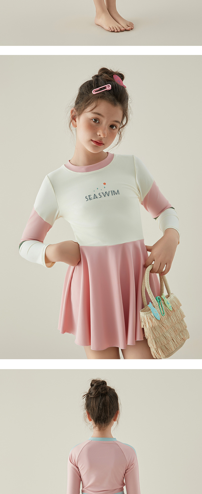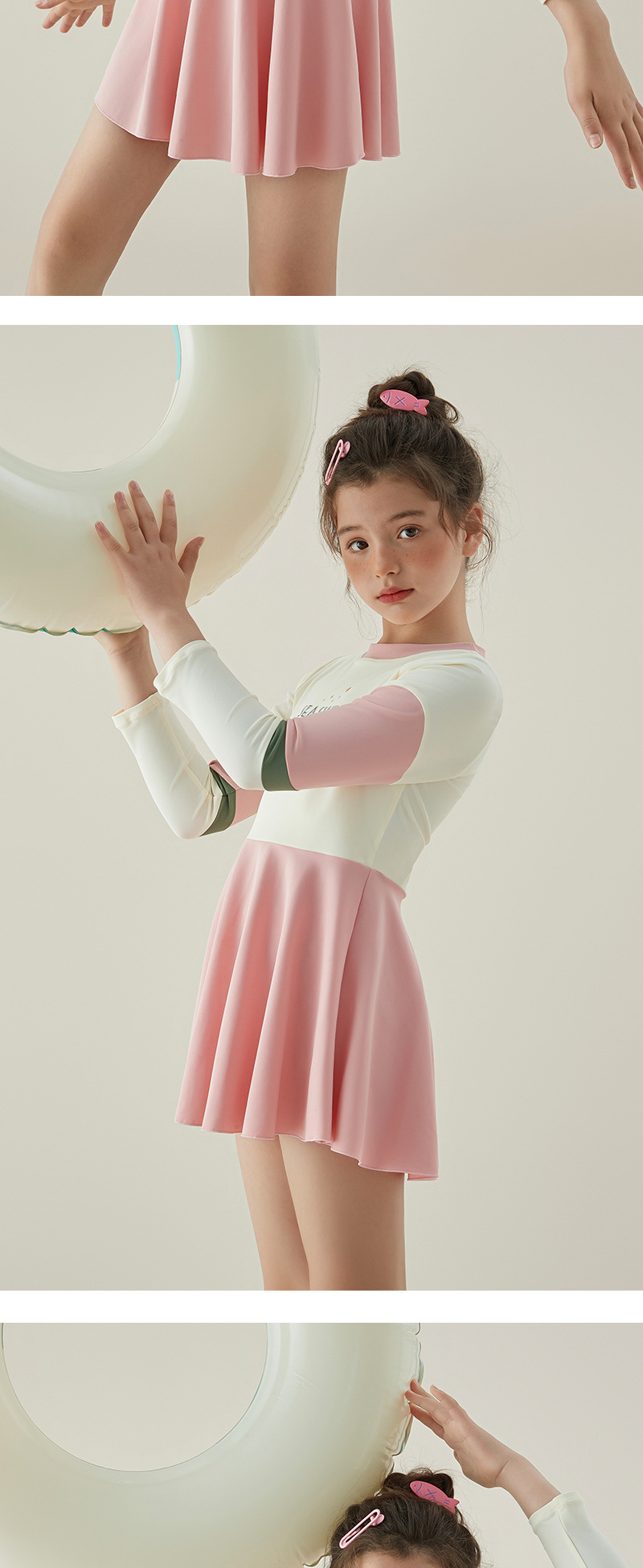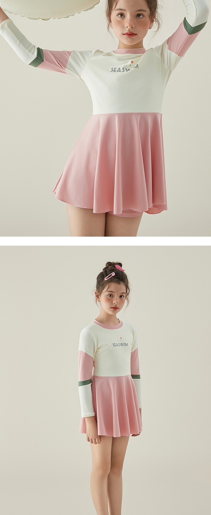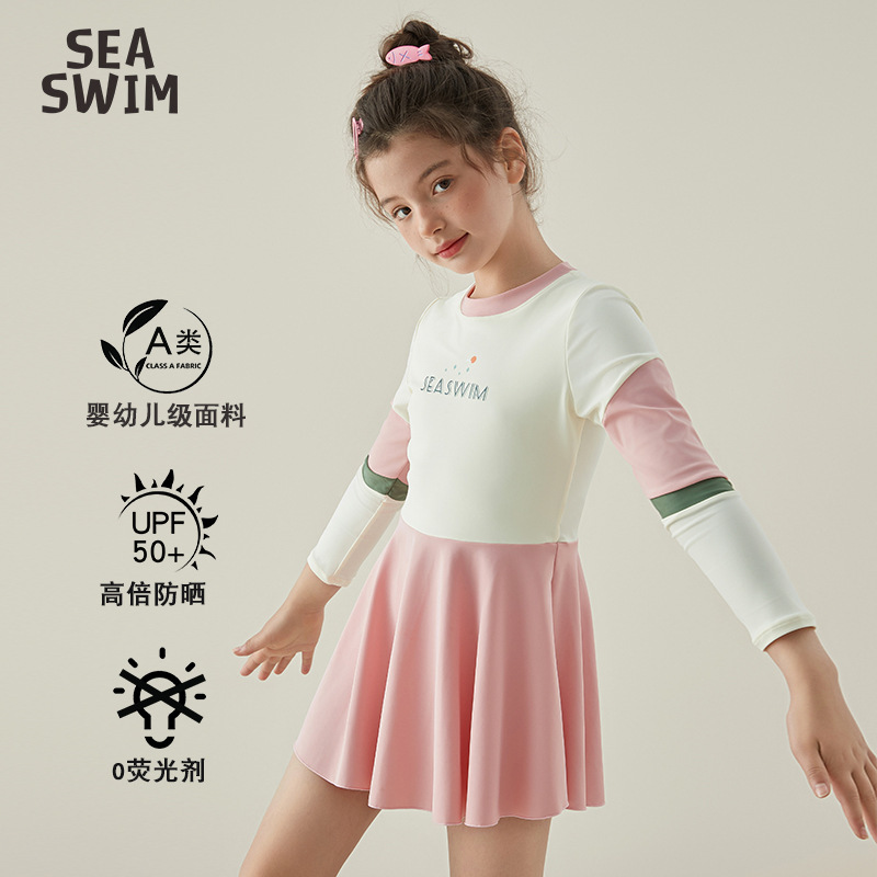 2024 여름 새로운 소녀 원피스 수영복 어린이 캐주얼 스포츠 짧은 소매 스커트 대형 어린이 수영복 도매