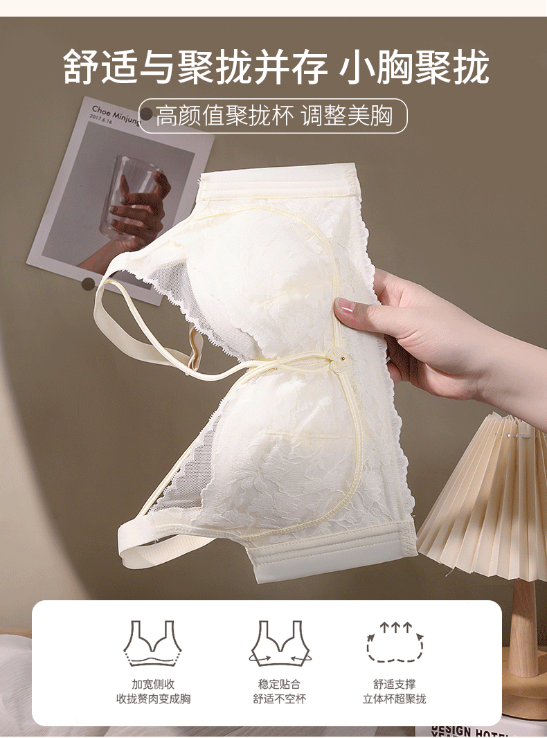 여성용 모달 슬립컵 레이스 조절형 브라, 작은 가슴을 모아주는 섹시한 브라