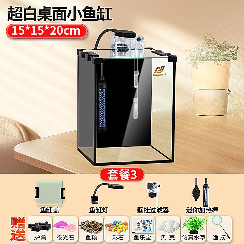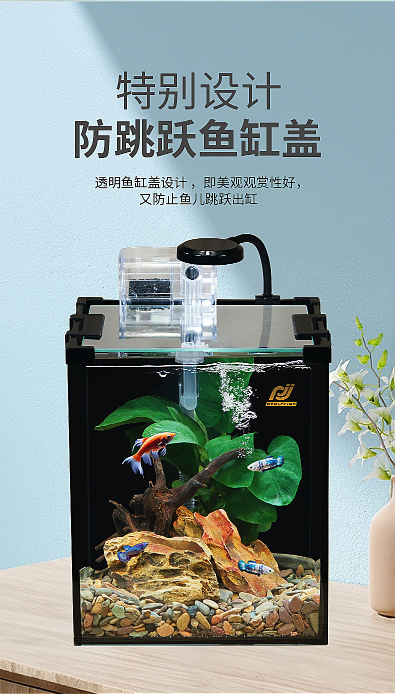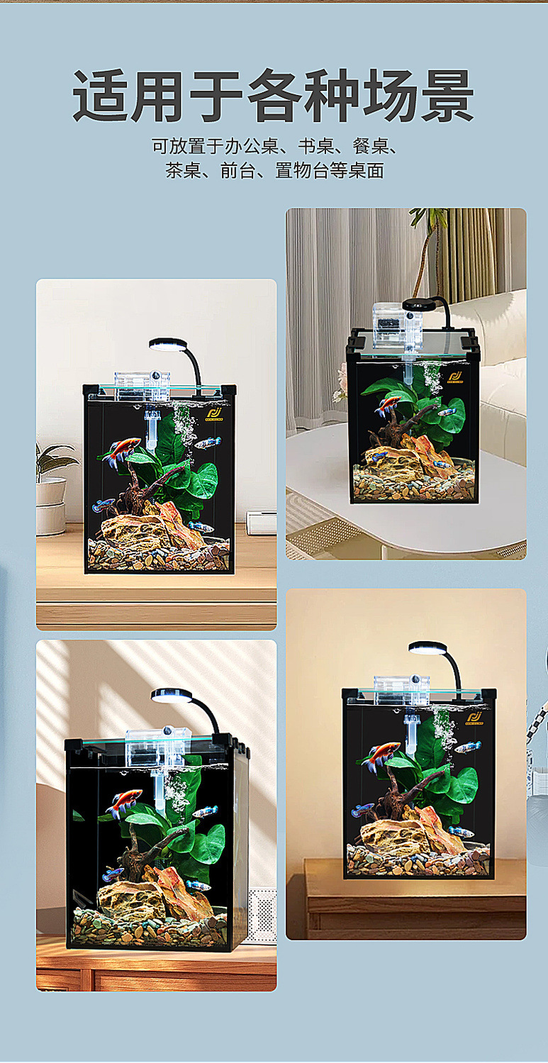 데스크탑 버킷 어항 물없는 슈퍼 화이트 어항 거실 작은 홈 오피스 생태 게으른 미니 물 공장 탱크