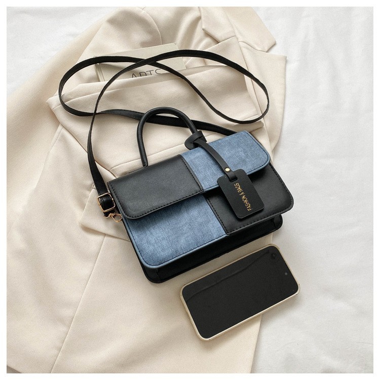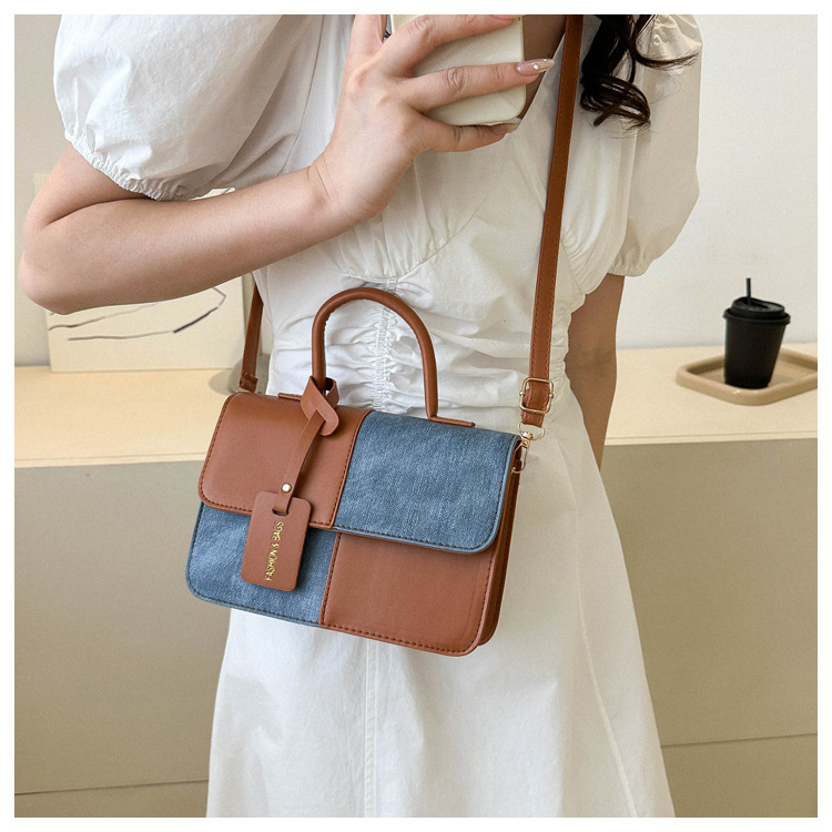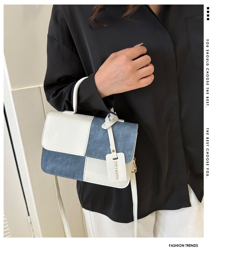 틈새 디자인 대비 컬러 스티칭 휴대용 작은 사각형 가방 2023 새로운 질감 메신저 가방 패션 숄더백