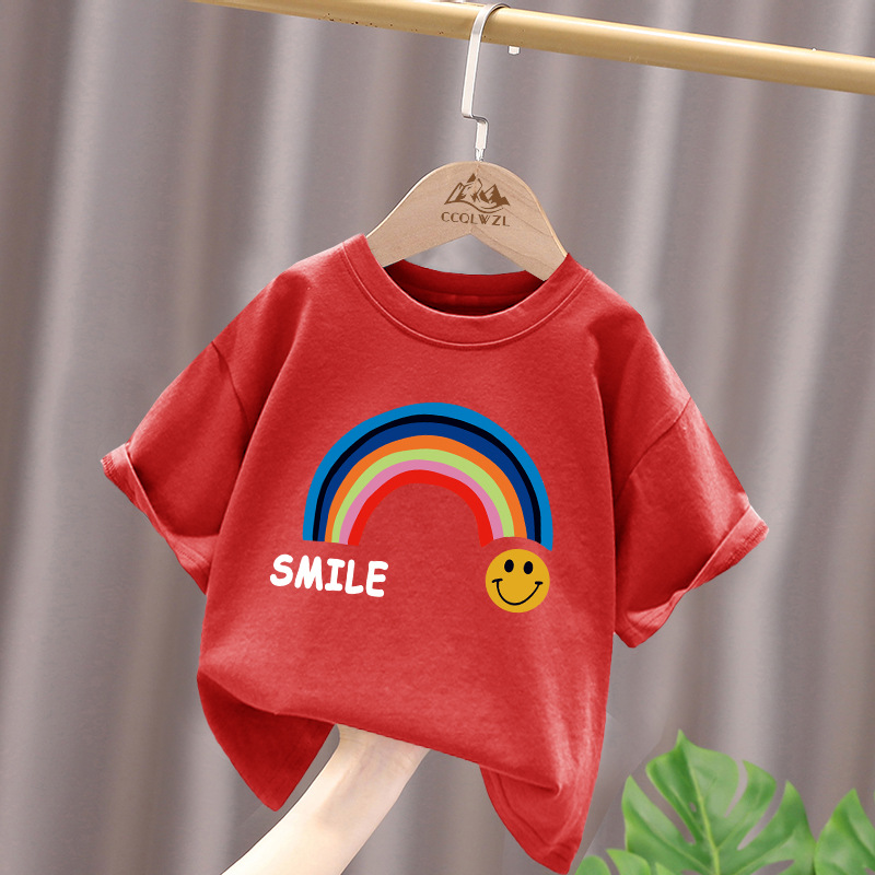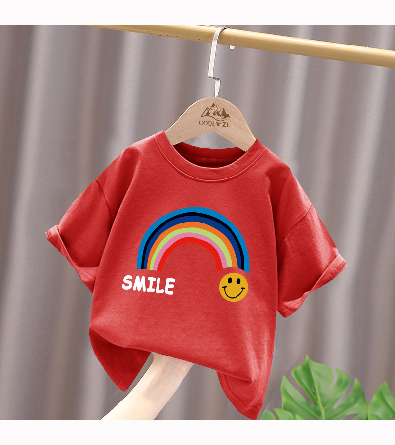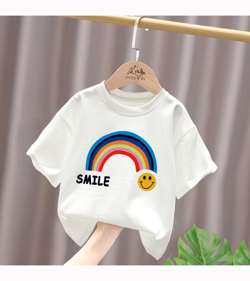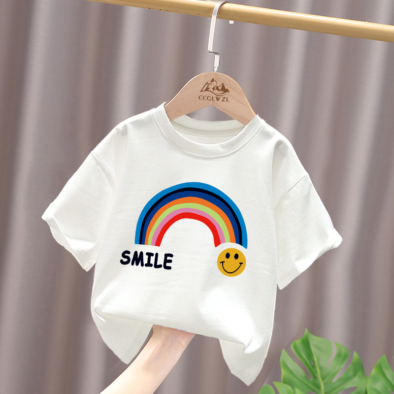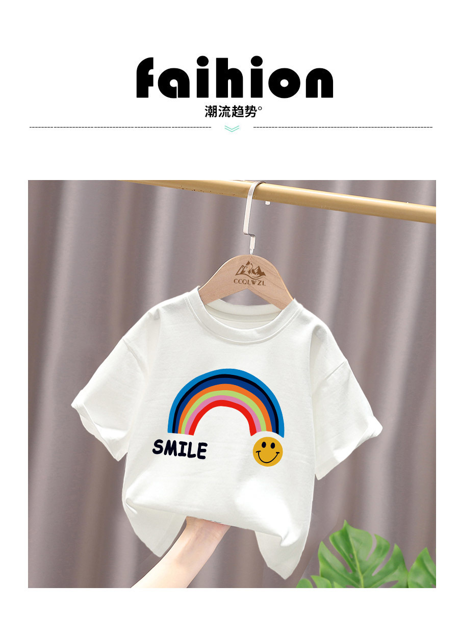 아동복 소년 여름 면화 반팔 2024 새로운 중대형 어린이 여름 얇은 무지개 티셔츠 소녀 반소매 티셔츠스토어 가기