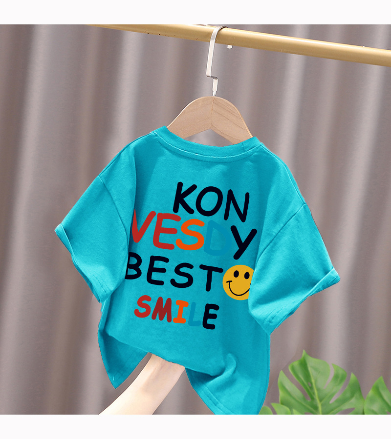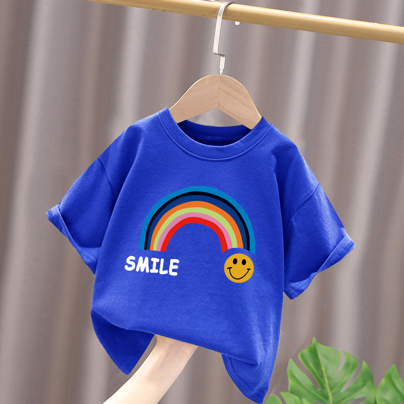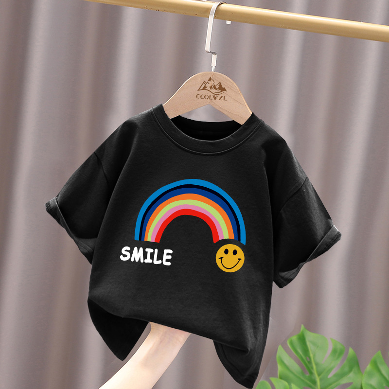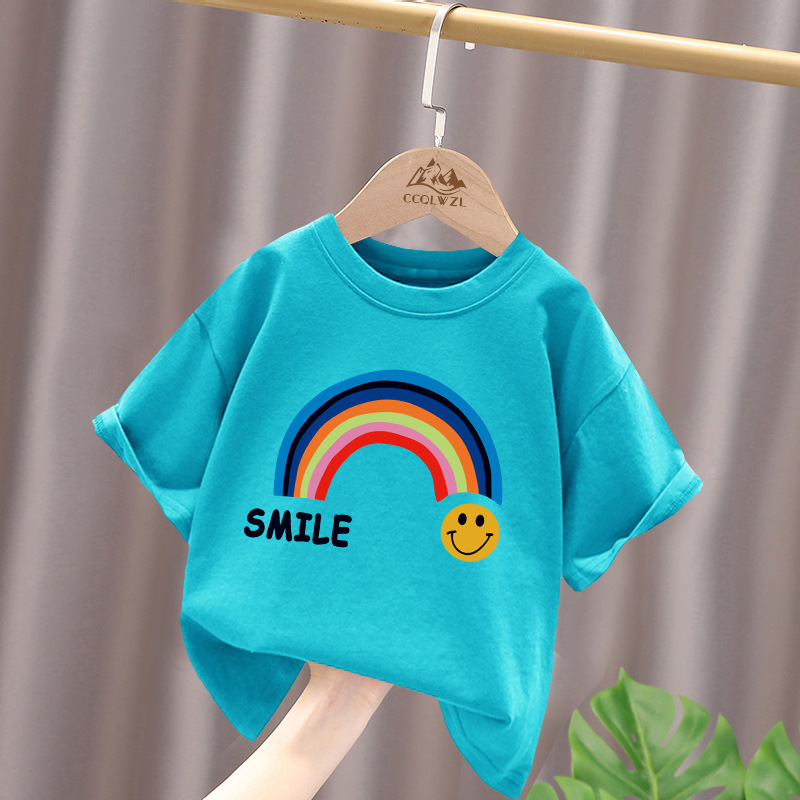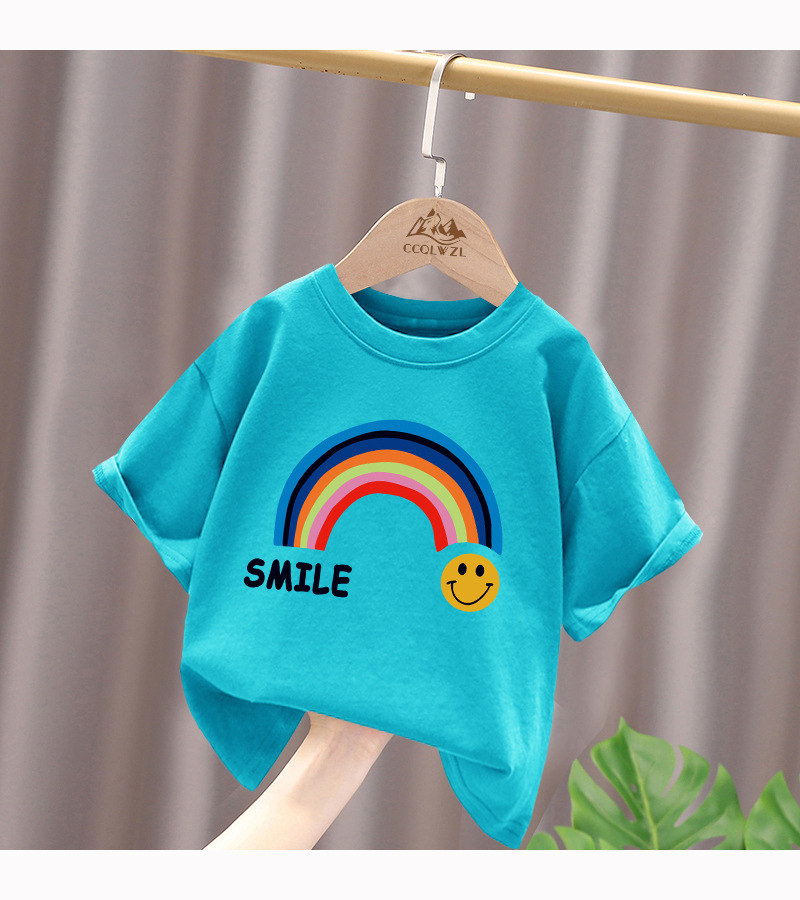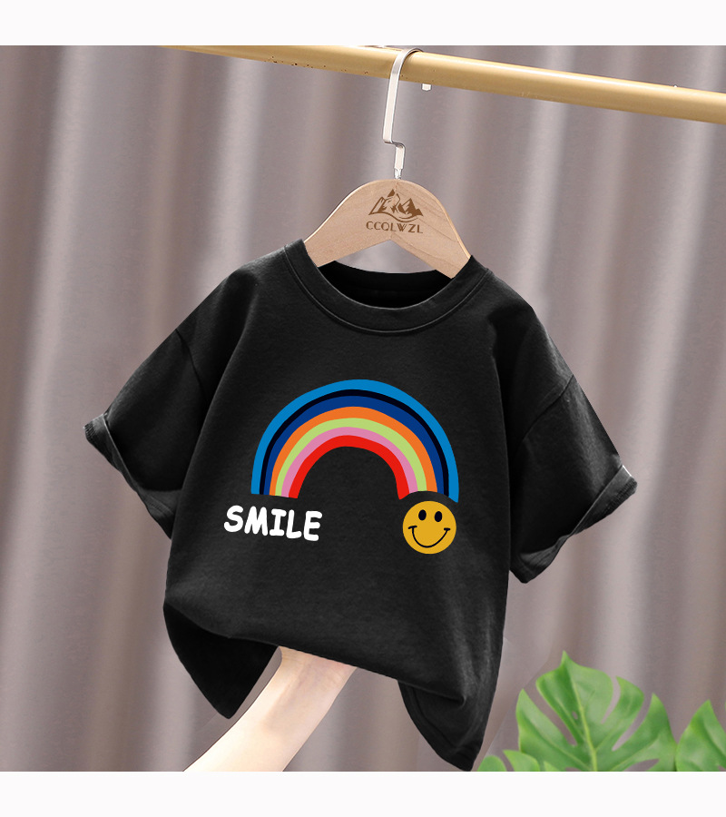 아동복 소년 여름 면화 반팔 2024 새로운 중대형 어린이 여름 얇은 무지개 티셔츠 소녀 반소매 티셔츠스토어 가기