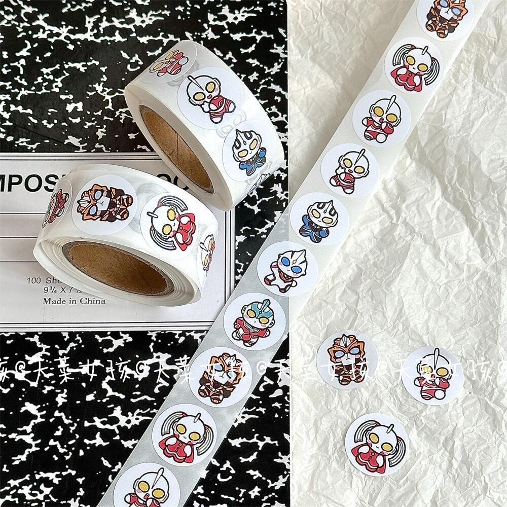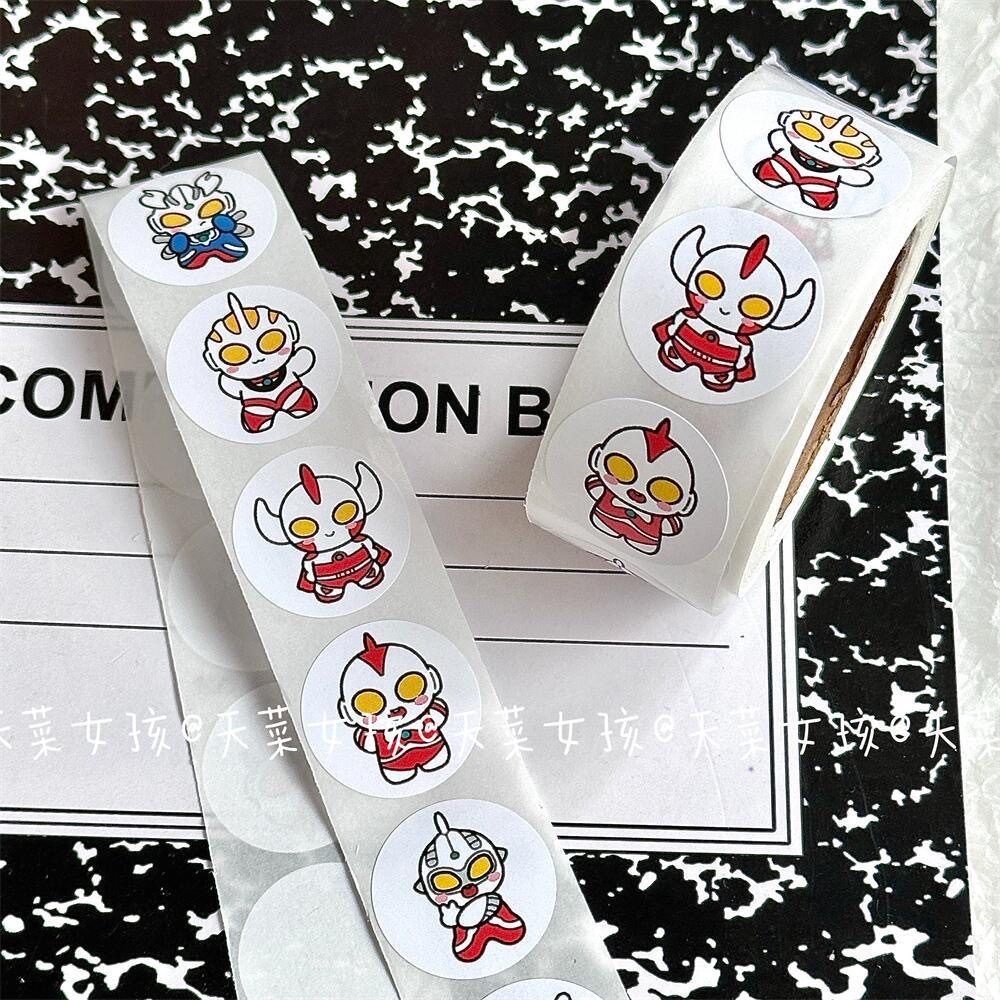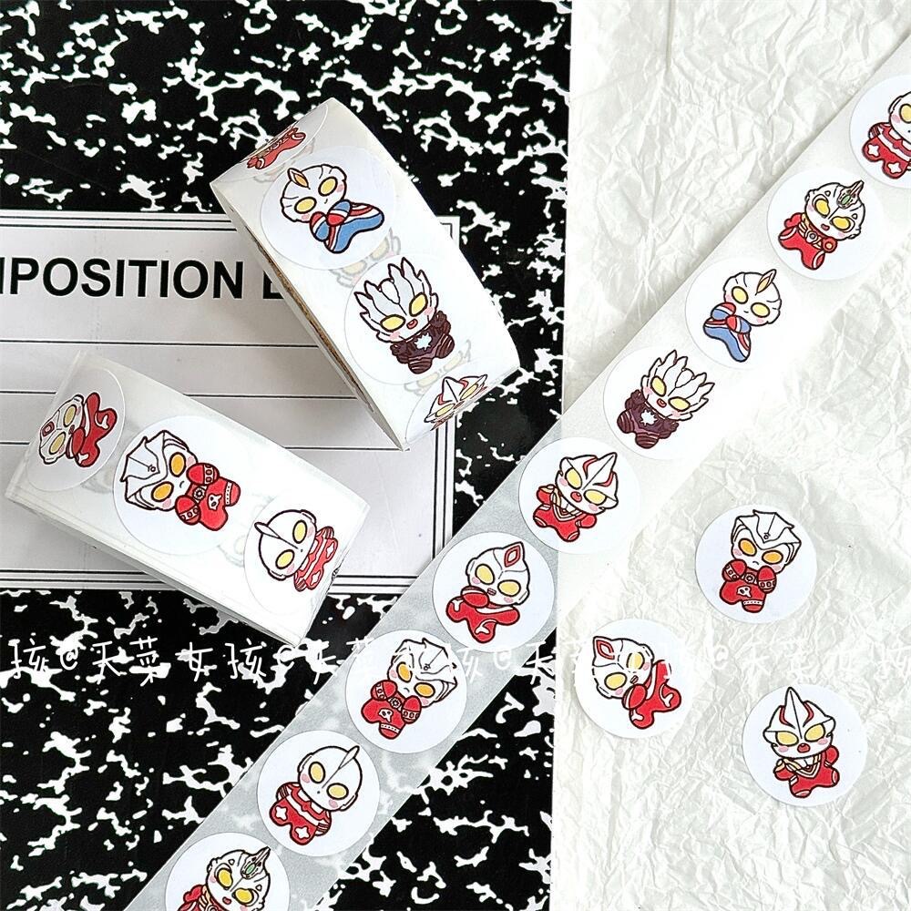 일본 작은 빨간 승마 책 새로운 울트라 맨 3 세대 롤 스티커 손 계정 재료 장식 봉투 씰 스티커 점 스티커스토어 가기
