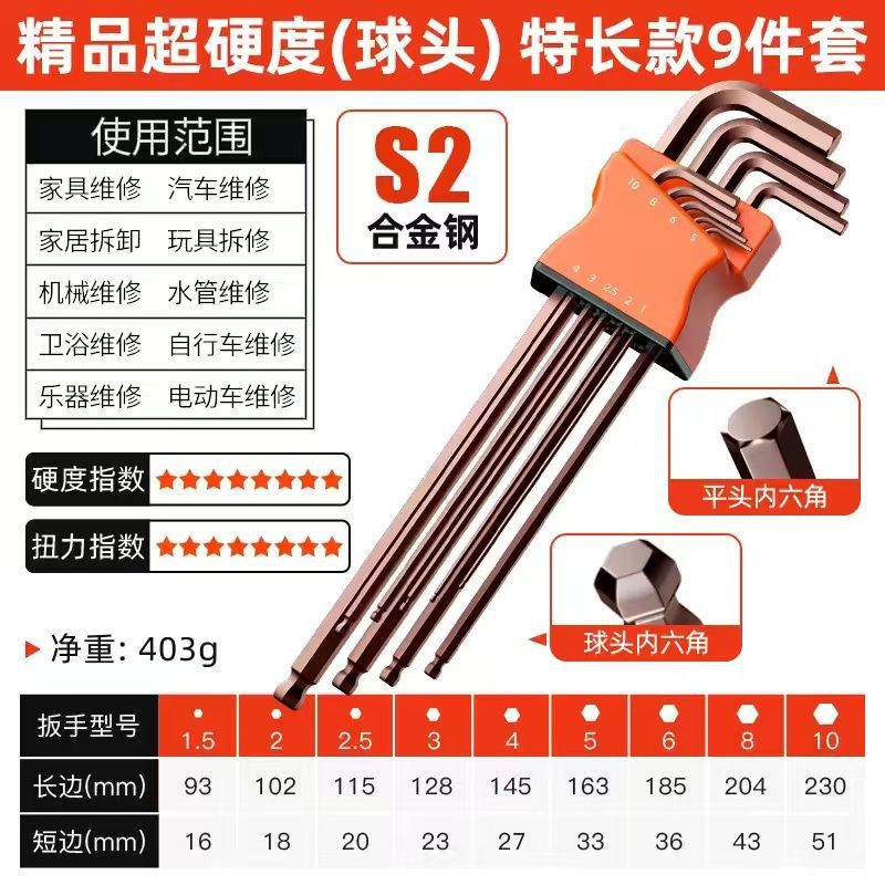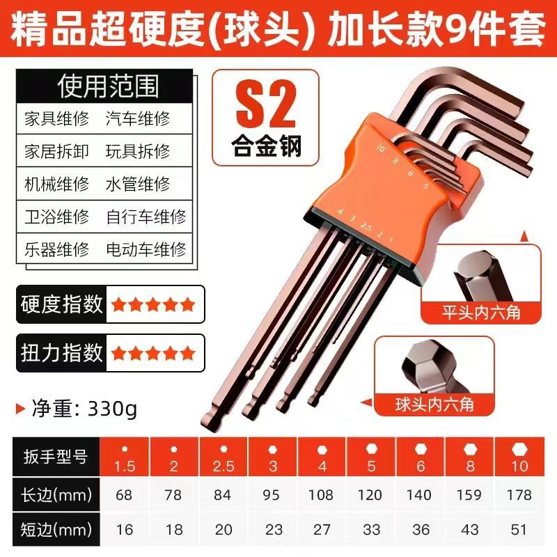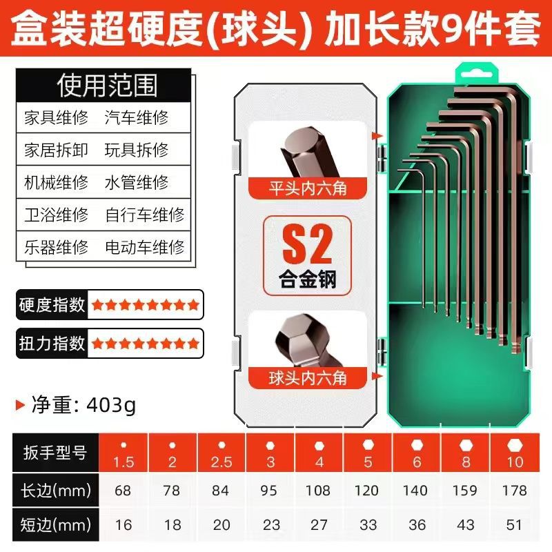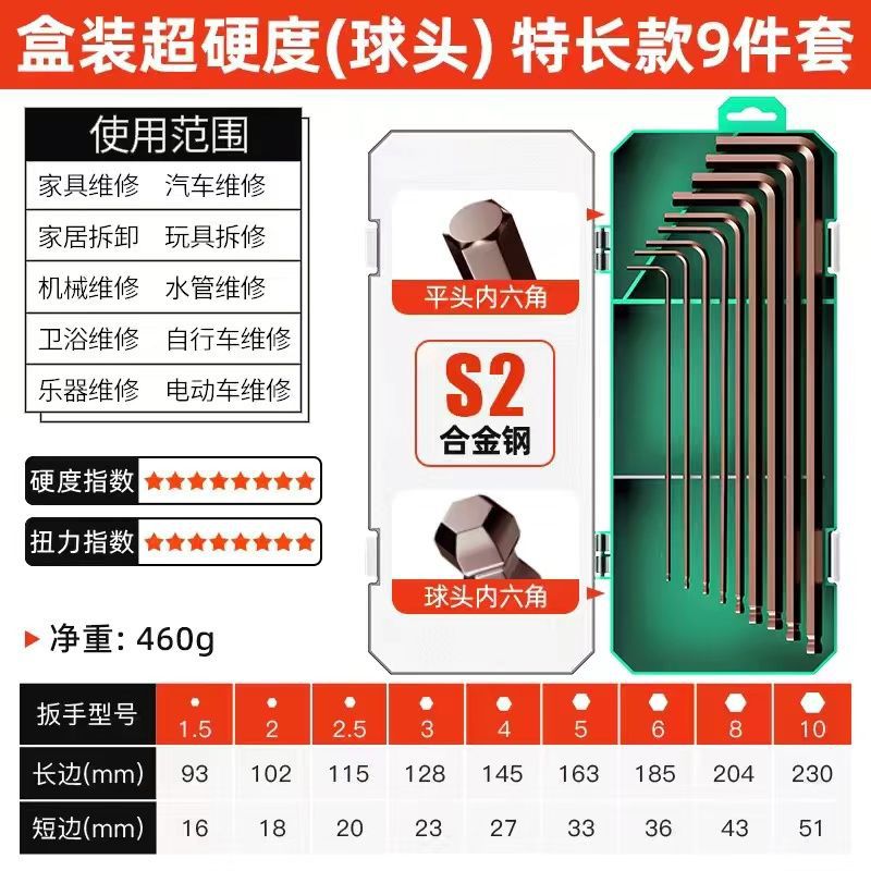 공장 직접 높은 경도 합금 S2 육각형 렌치 세트 6 면 매화 육각형 다기능 상자스토어 가기