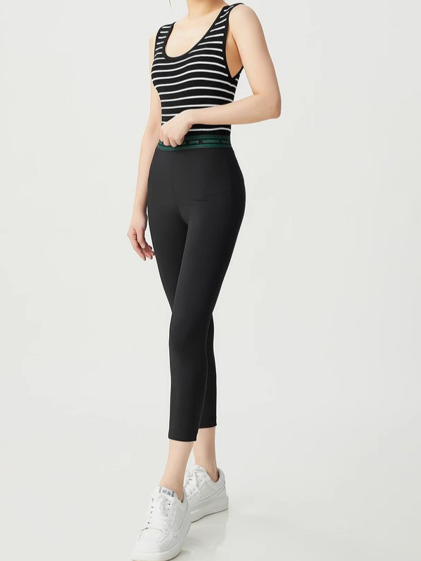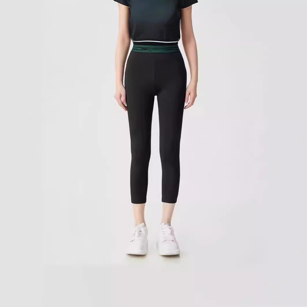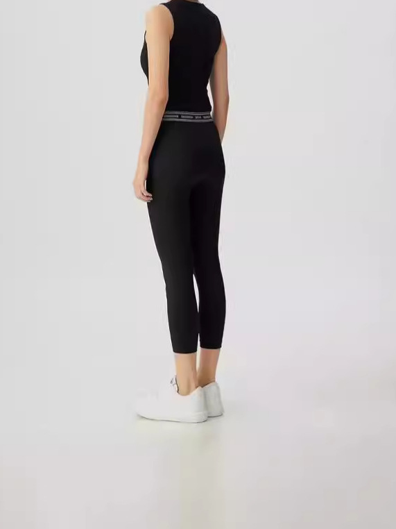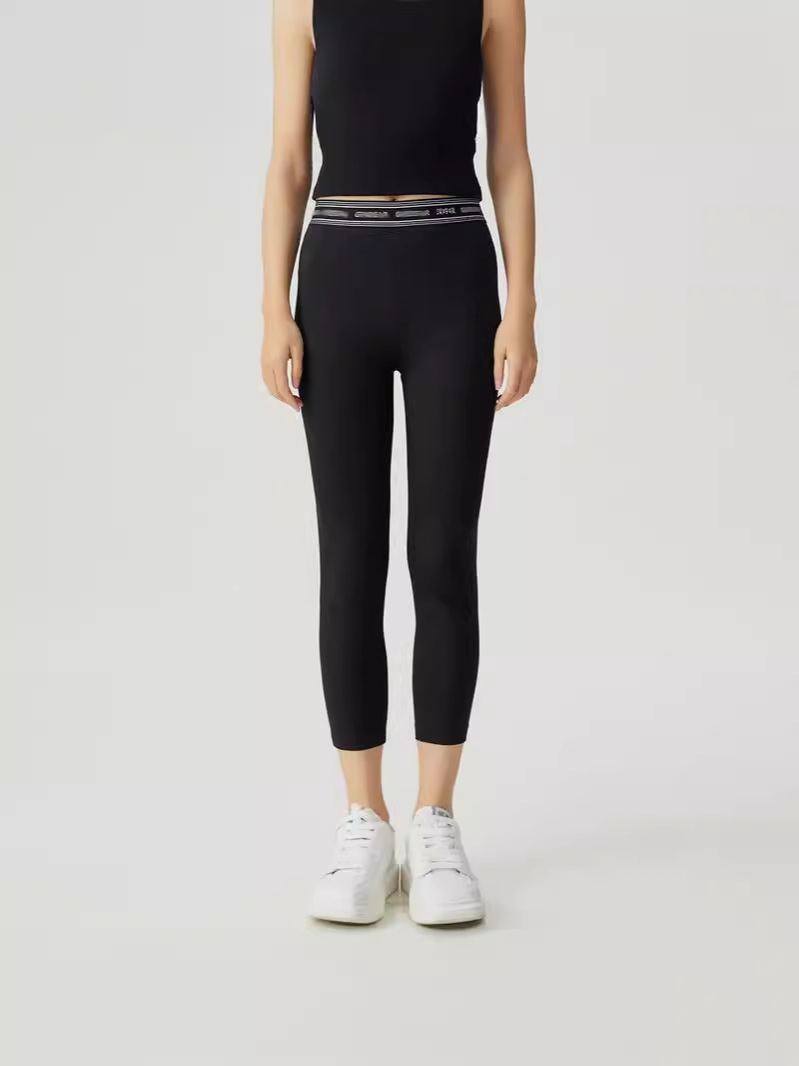 장로의 새로운 여성 의류 2024 여름 새로운 편지 짠 벨트 마름모 요가 높은 탄성 레깅스 레깅스 여성