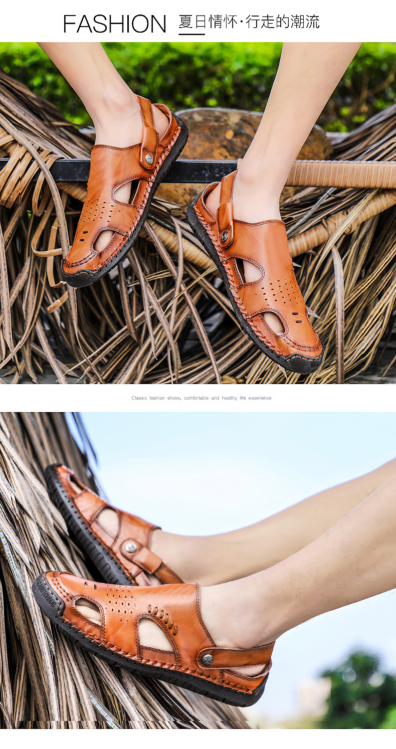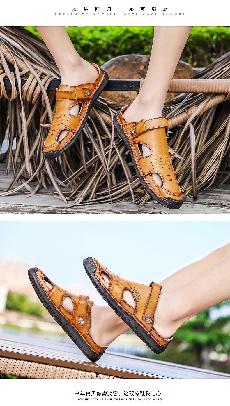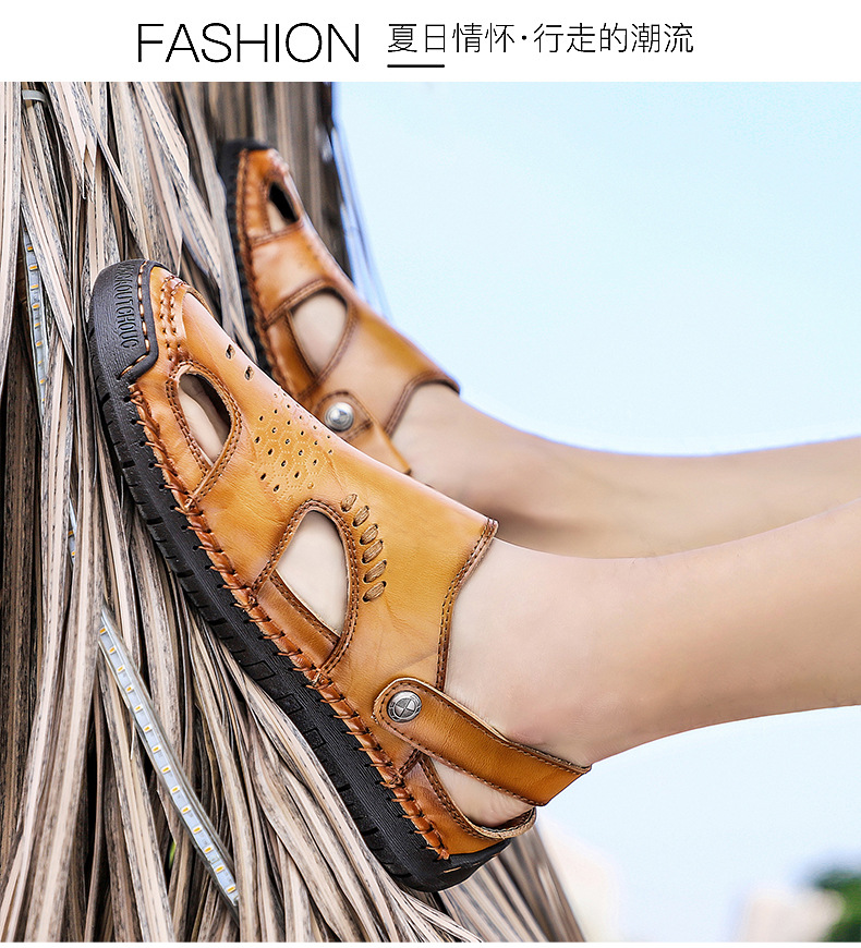 국경 간 남성 샌들 여름 남성 정품 가죽 남성 신발 비치 샌들 수제 대형 남성 야외 무역 샌들스토어 가기