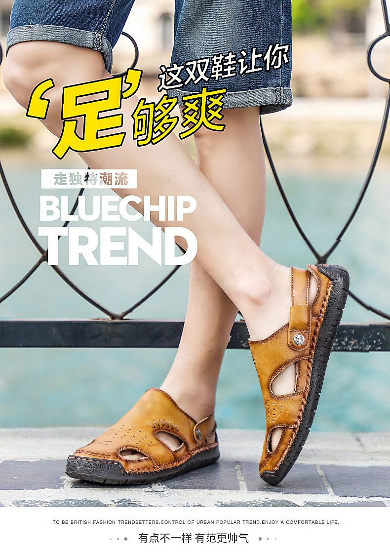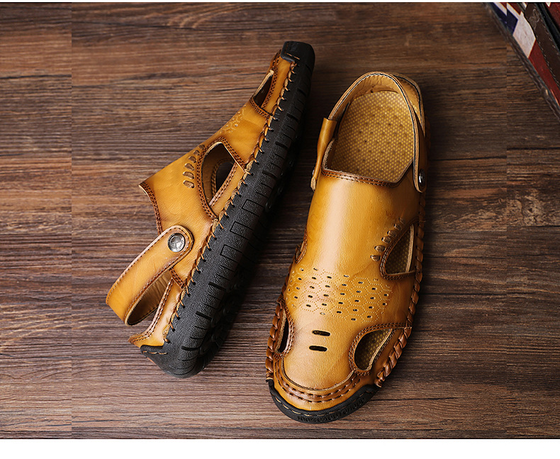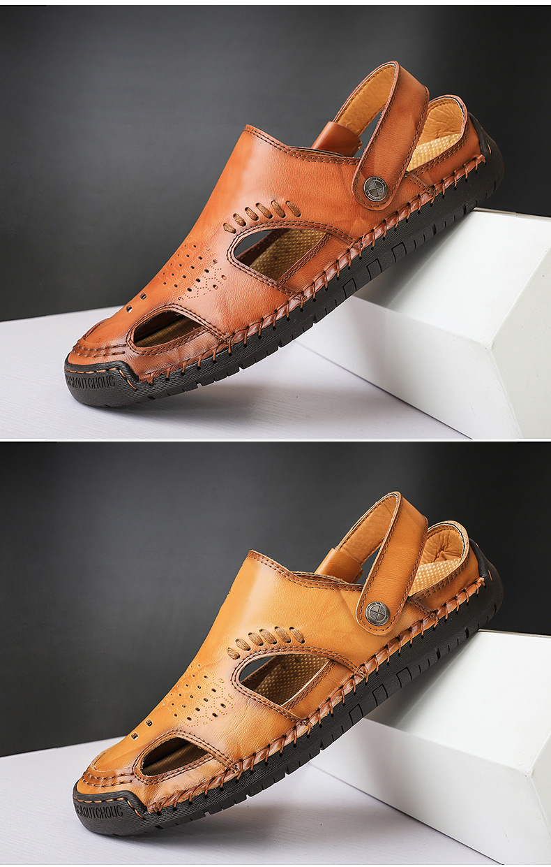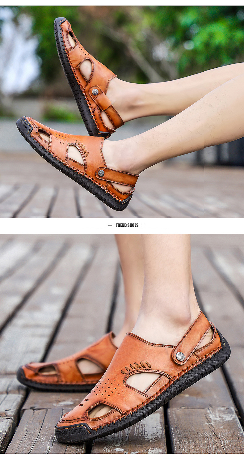 국경 간 남성 샌들 여름 남성 정품 가죽 남성 신발 비치 샌들 수제 대형 남성 야외 무역 샌들스토어 가기