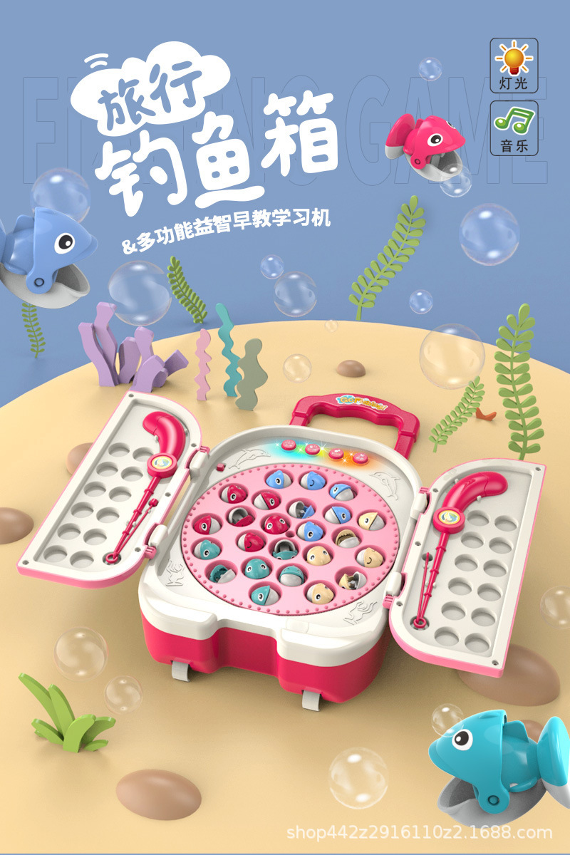 공장 도매 어린이 조기 교육 다기능 가방 전기 음악 자기 회전 낚시 플레이트 퍼즐 3 장난감스토어 가기