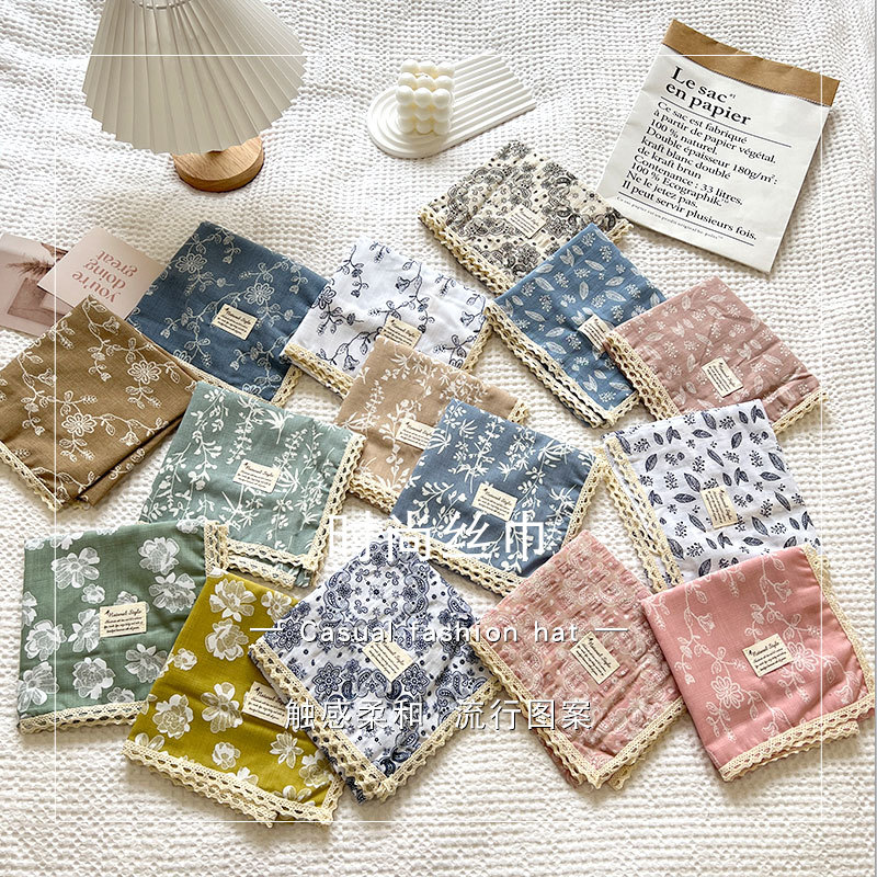 2024 새로운 인터넷 기념 하이 엔드 사진 헤어 밴드 헤드 스카프 일본 스타일 작은 광장 실크 스카프 여성 장식 목 보호 스카프