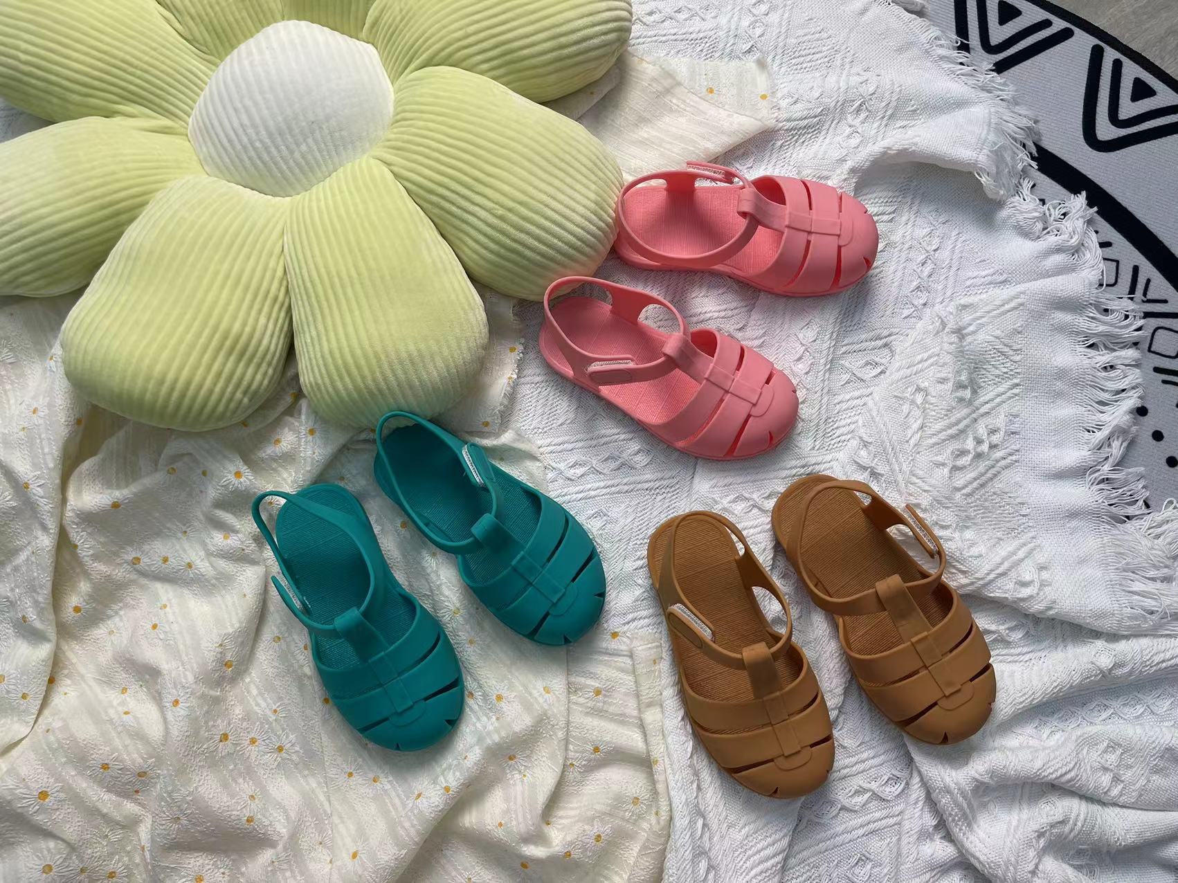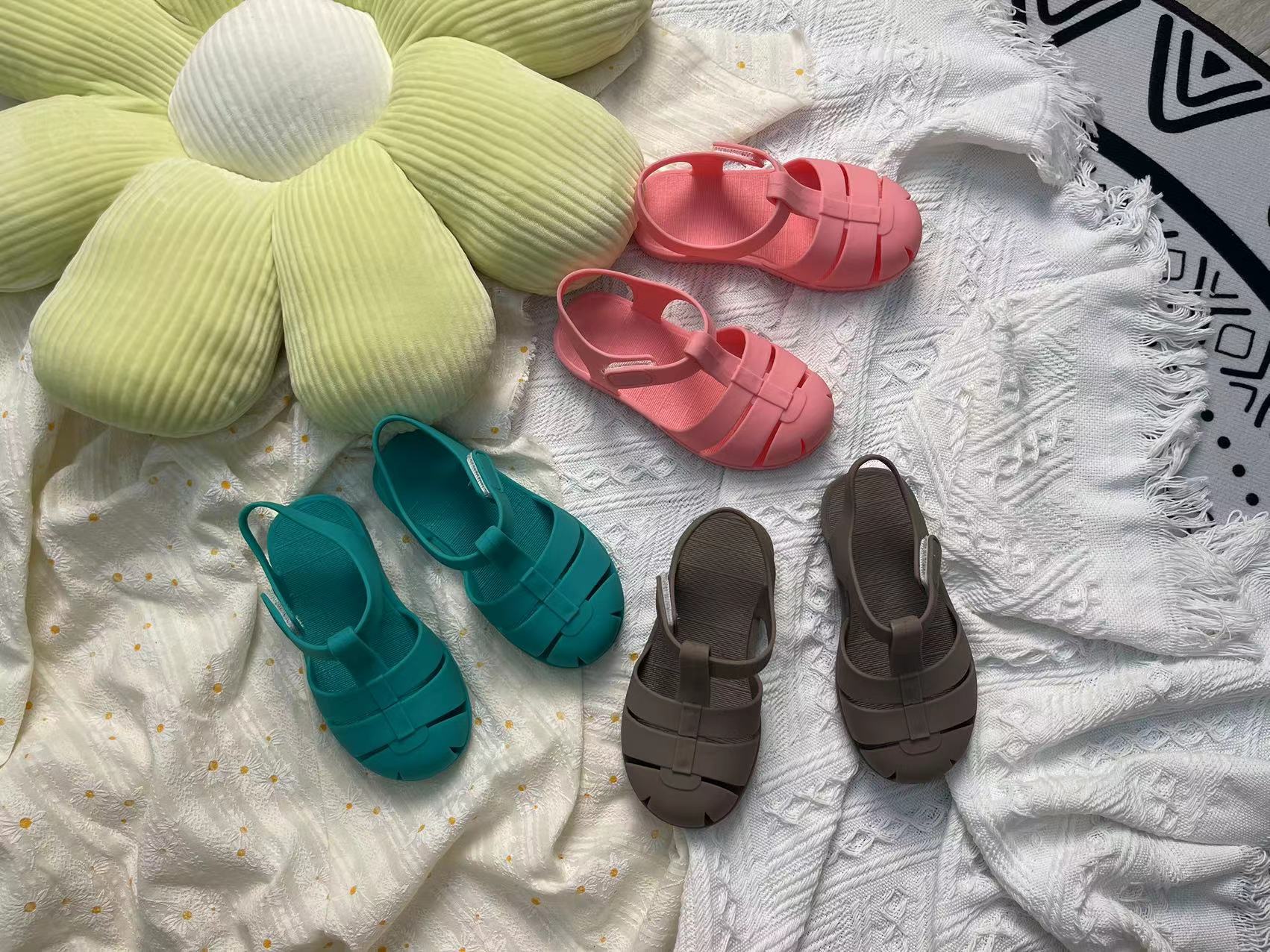 어린이 샌들 여성 여름 도매 마구간 공급 한국 아기 어린이 구멍 신발 2024 새 여자 신발