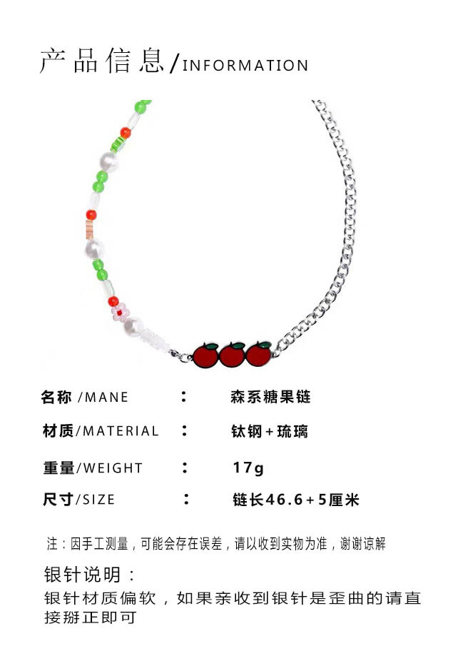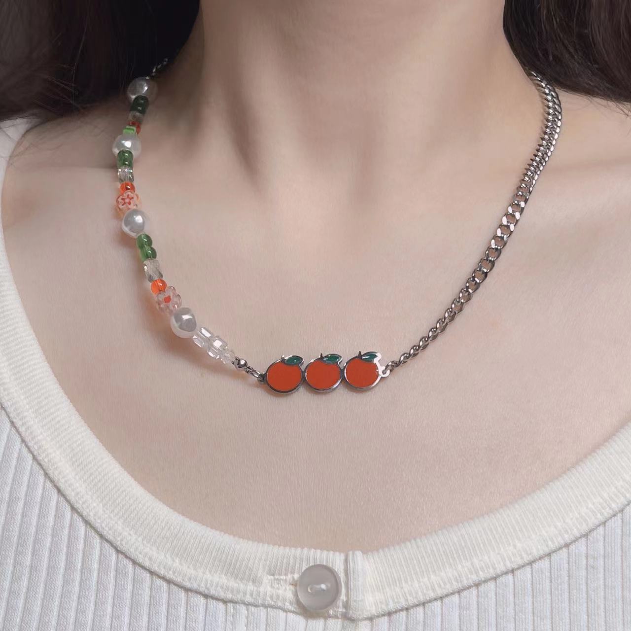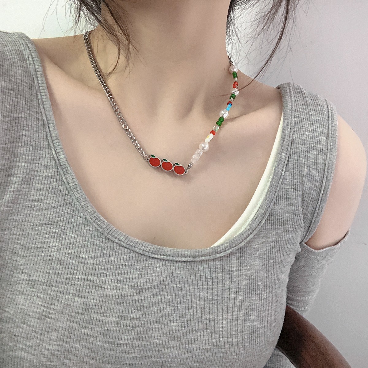 유리 크리스탈 진주 구슬 작은 애플 티타늄 스틸 목걸이 여성 틈새 디자인 달콤한 쿨 스타일 성격 올 매치 쇄골 체인