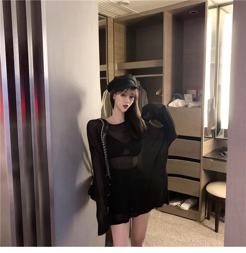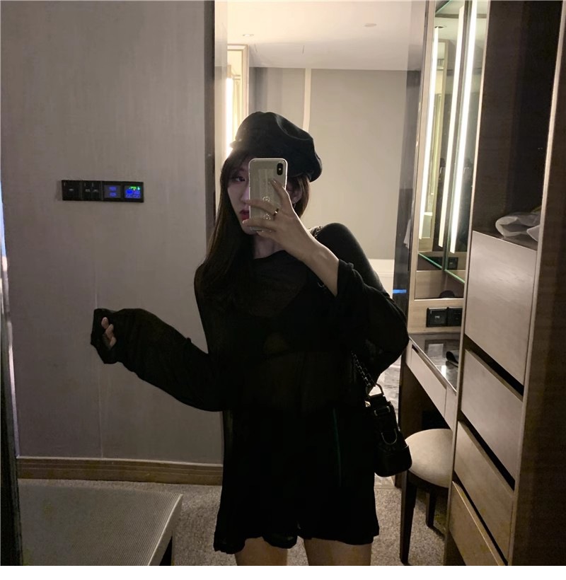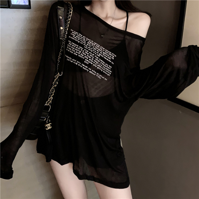 얇은 섹시한 원근감 선스크린 셔츠 최고 여성의 2024 년 여름 뉴 프론트 앤 백 웨어 느슨한 긴팔 티셔츠 블라우스
