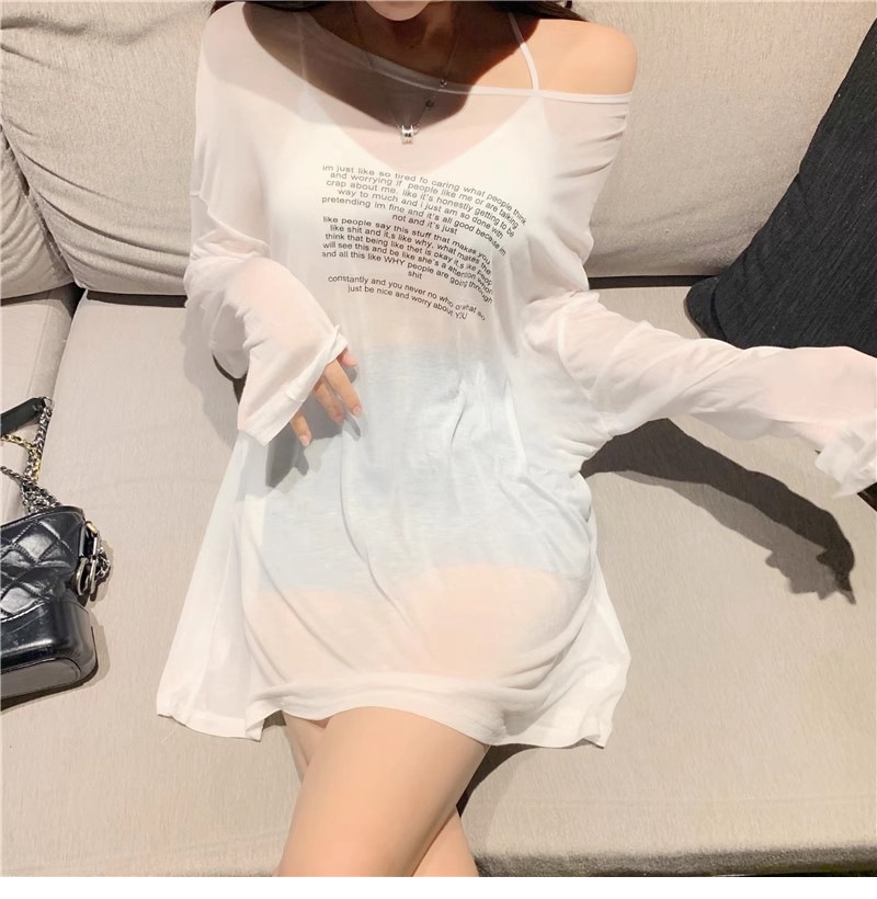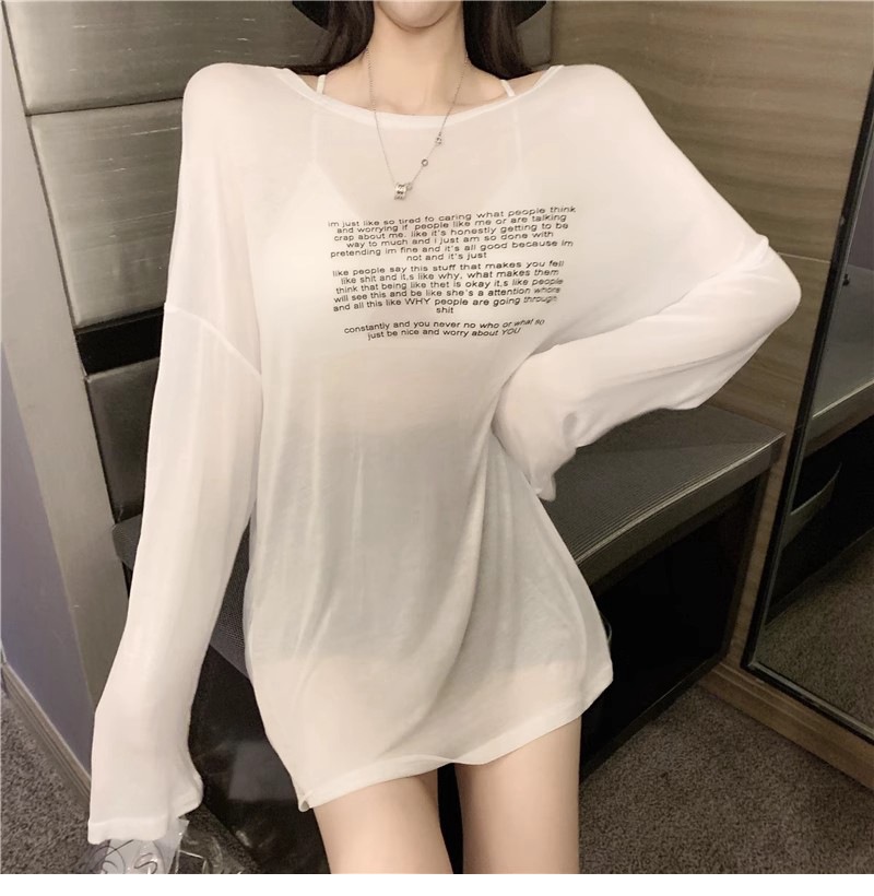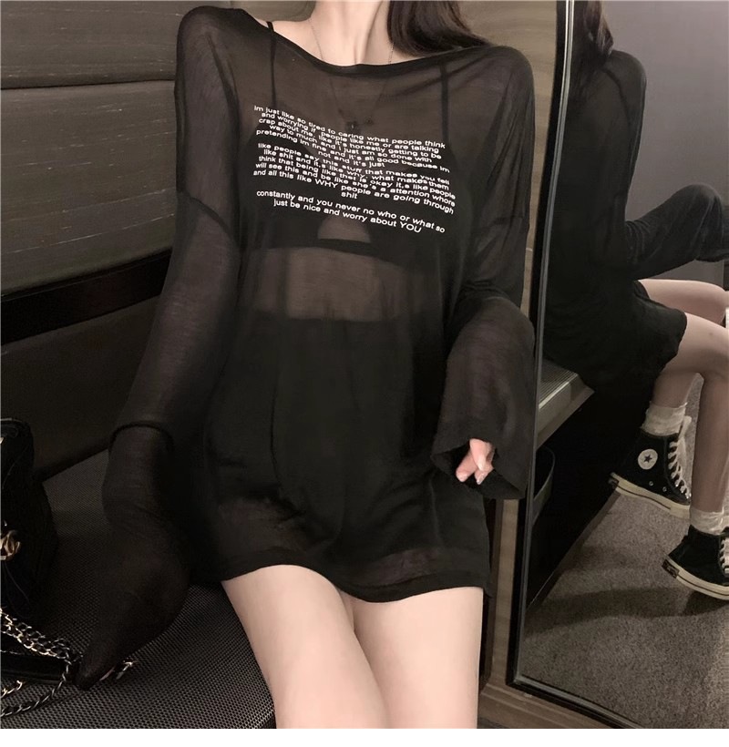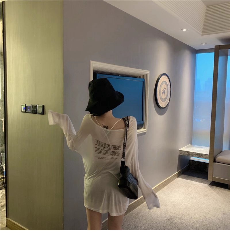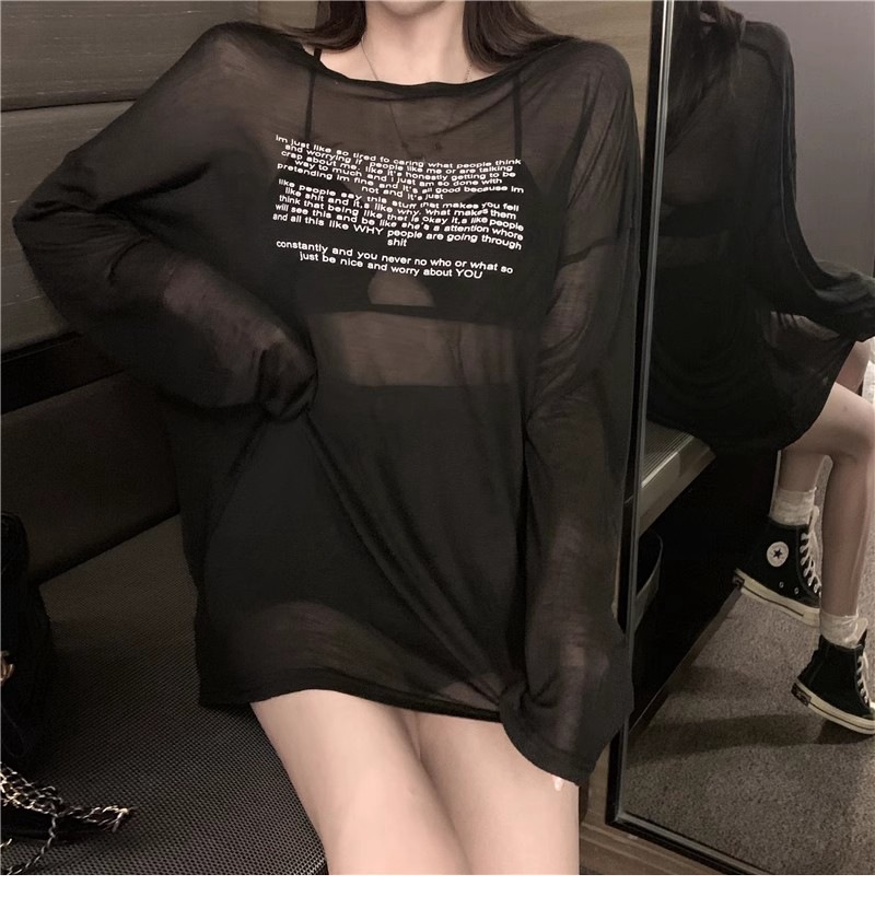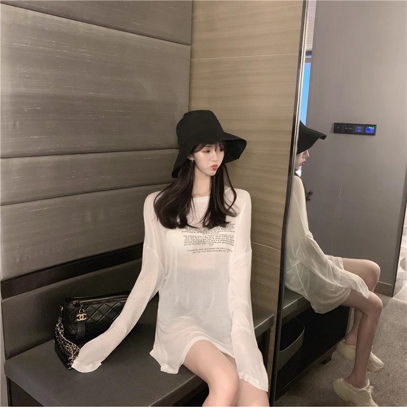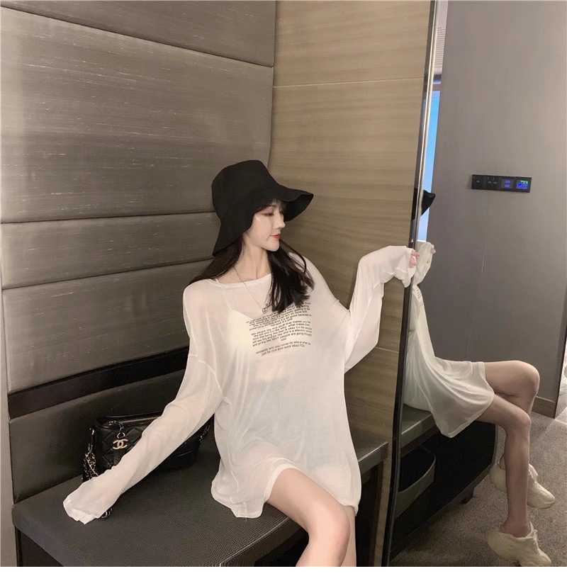 얇은 섹시한 원근감 선스크린 셔츠 최고 여성의 2024 년 여름 뉴 프론트 앤 백 웨어 느슨한 긴팔 티셔츠 블라우스스토어 가기
